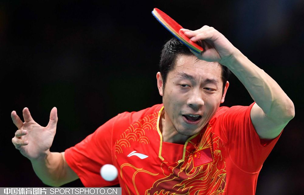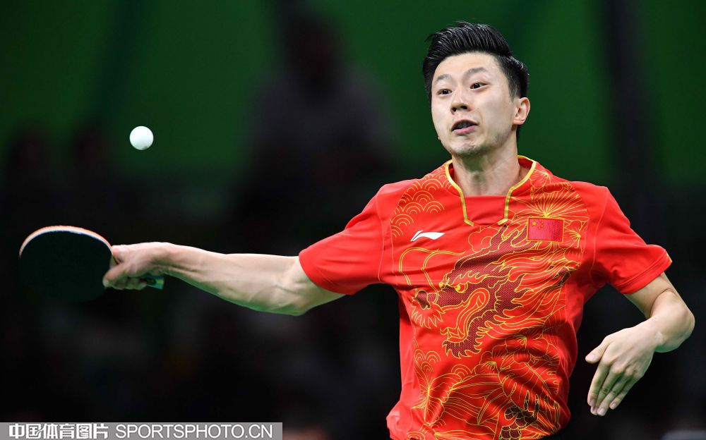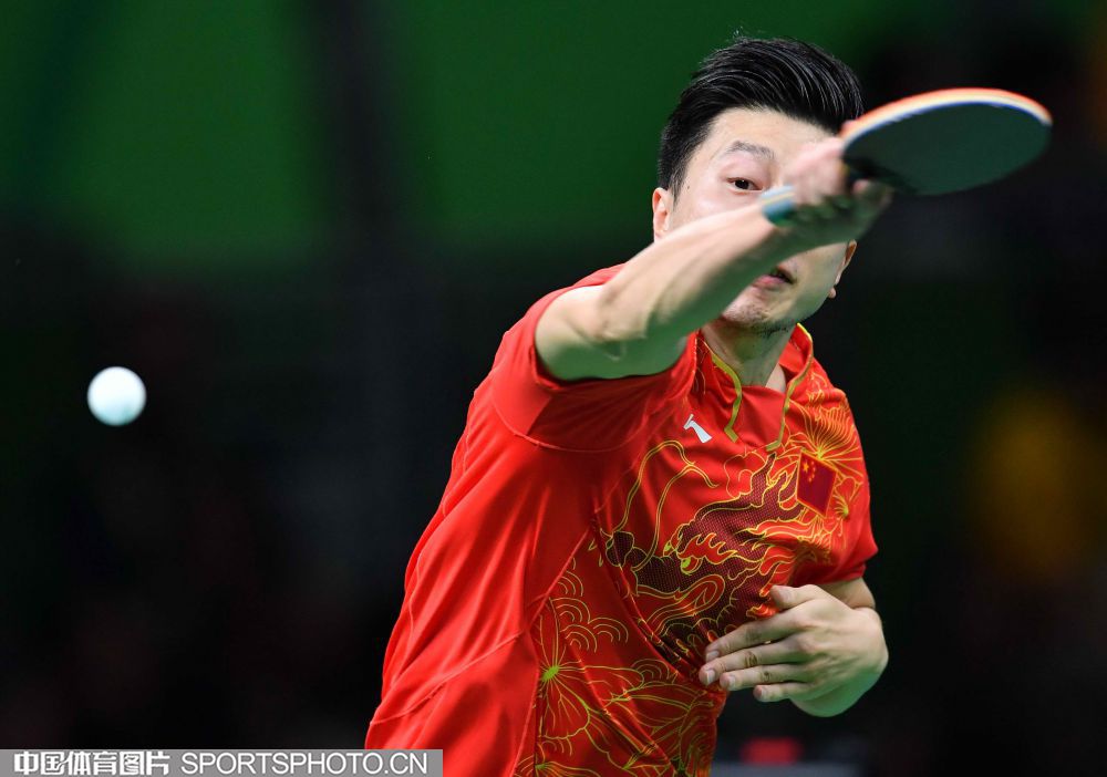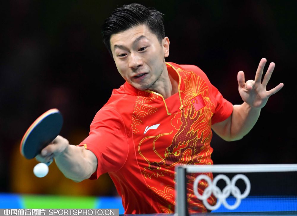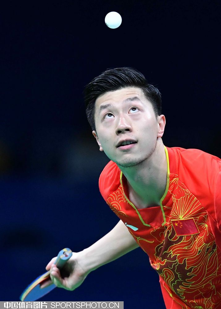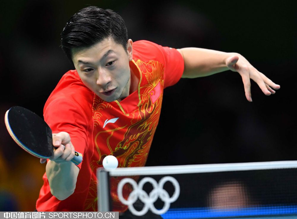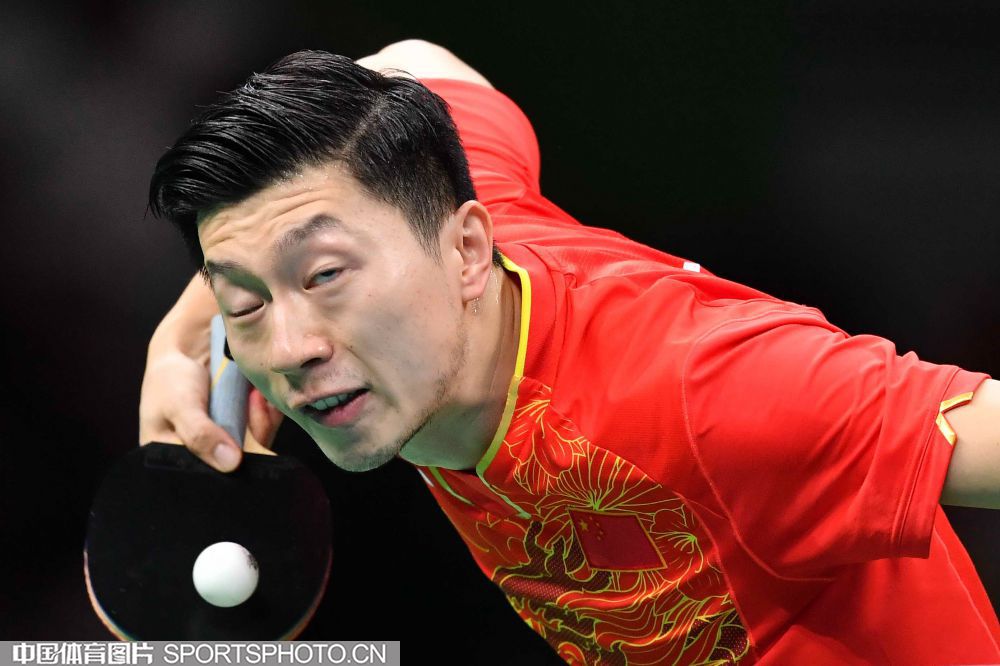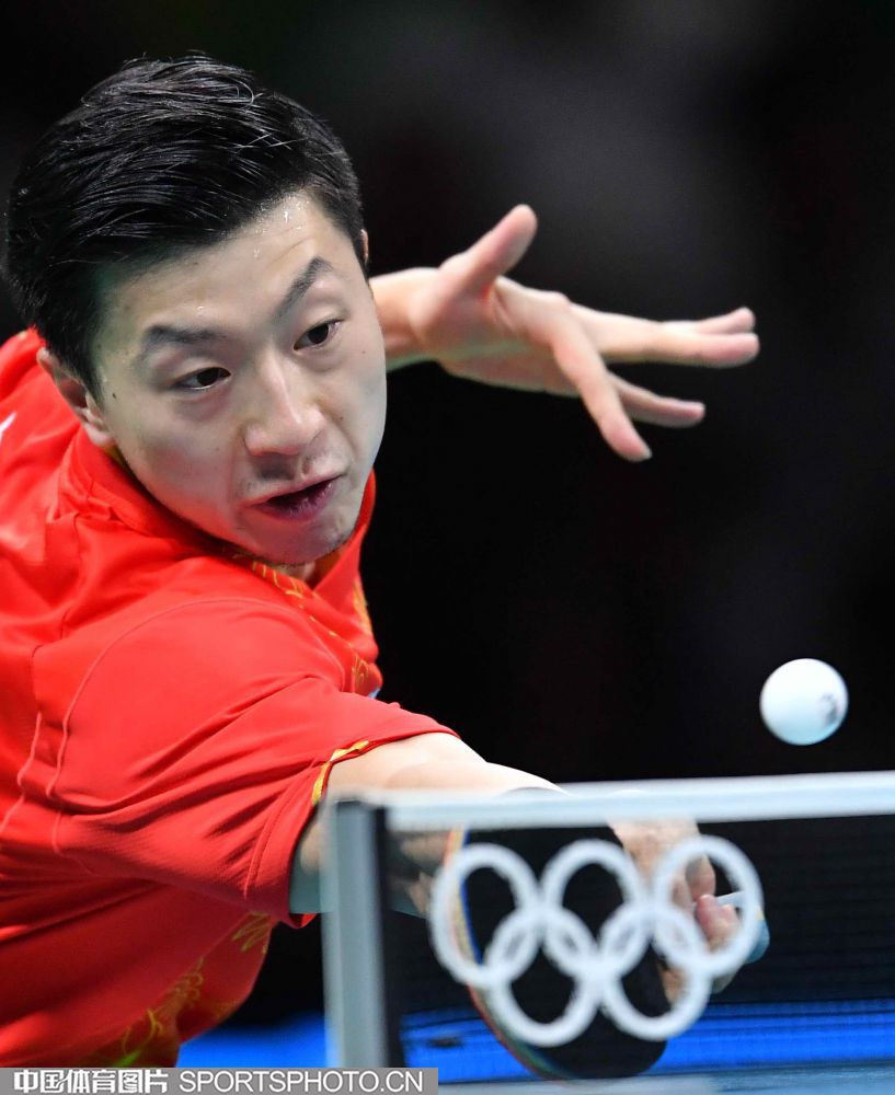 北京时间2016年8月18日,里约奥运乒乓球男团决赛展开争夺,中国队对阵日本队。图为马龙在比赛中。(中国体育图片 白宇 摄)