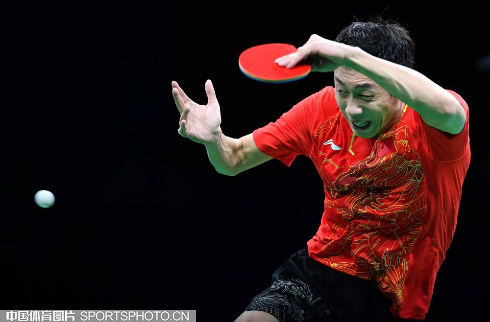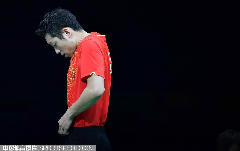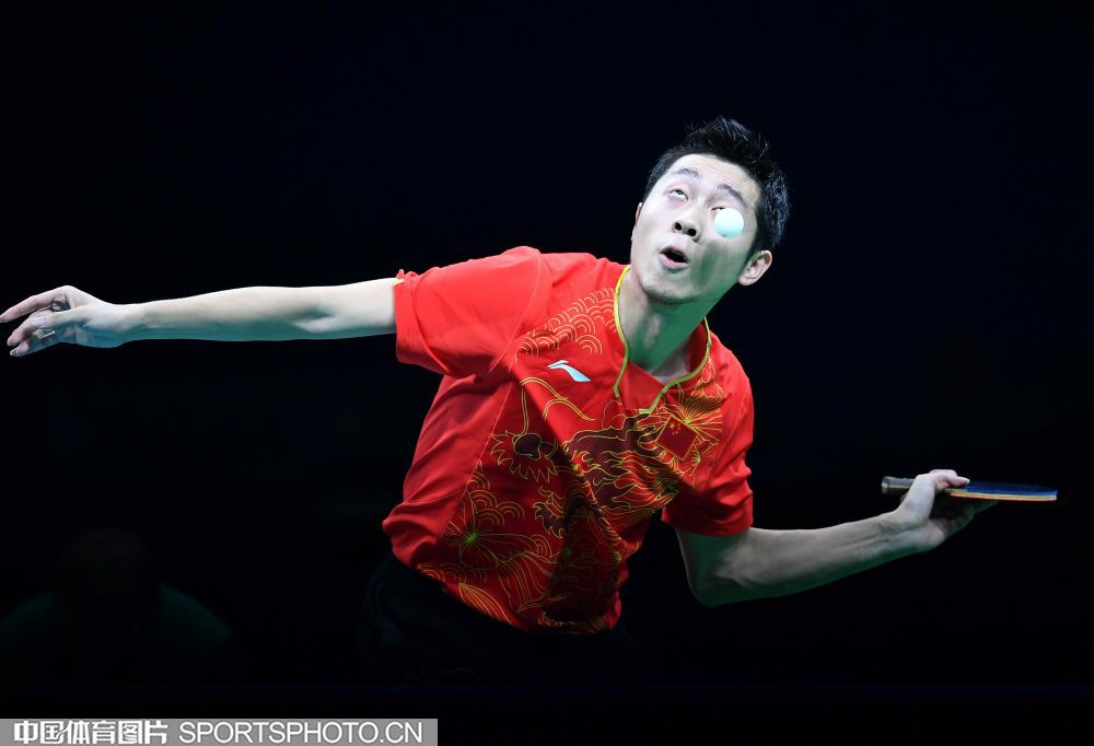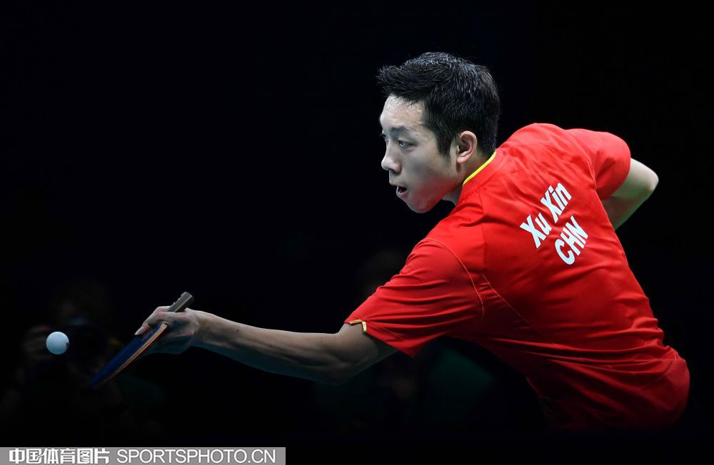 北京时间2016年8月18日,里约奥运乒乓球男团决赛展开争夺,中国队对阵日本队。图为许昕在比赛中。(中国体育图片 白宇 摄)