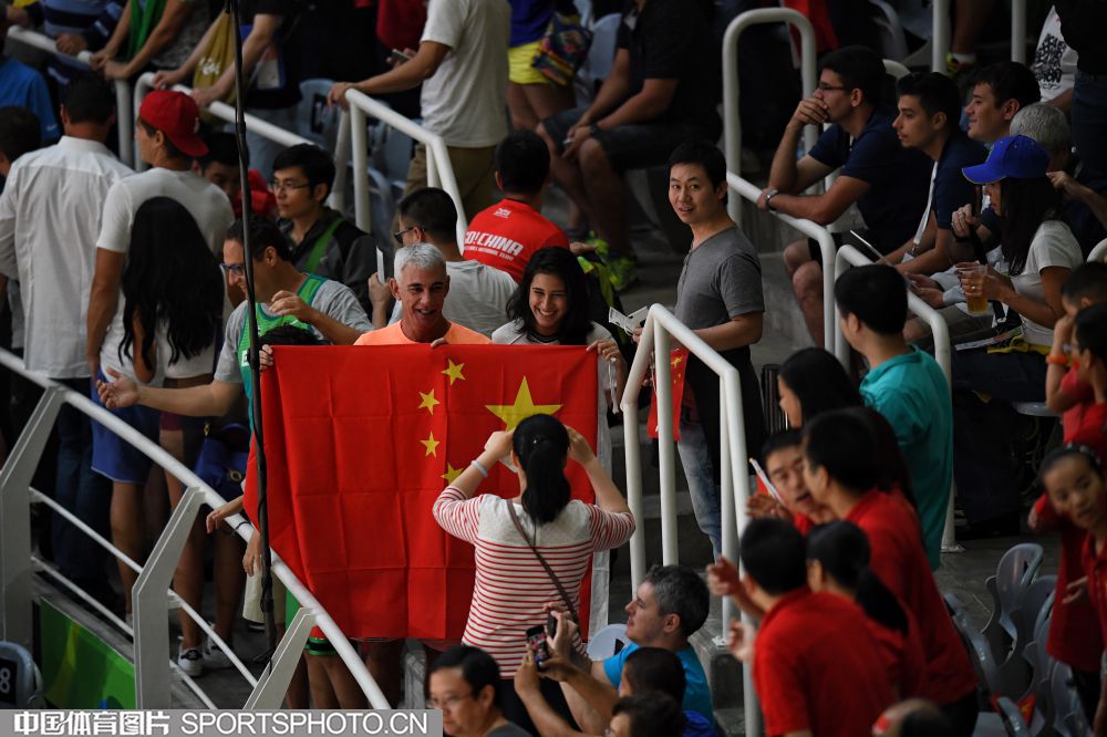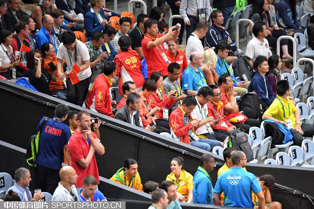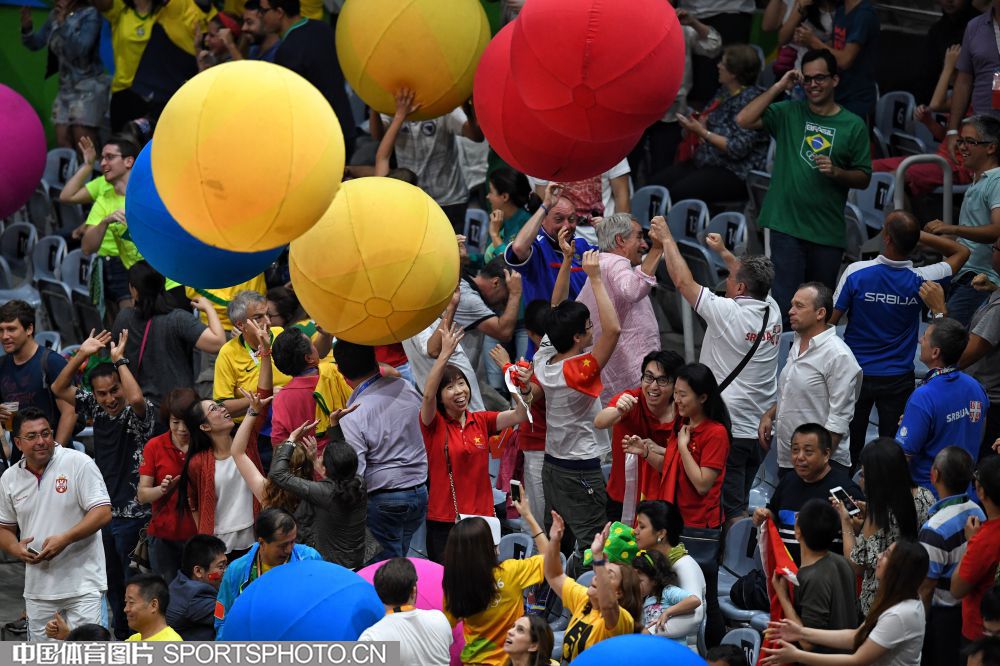里约当地时间2016年8月20日,第31届夏季奥运会女子排球决赛在里约热内卢马拉卡纳赛区马拉卡纳齐诺体育馆进行。中国队3比1力克塞尔维亚队,时隔12年再次夺得奥运会金牌。图为中国队庆祝。(中国体育图片 王宪民 摄)