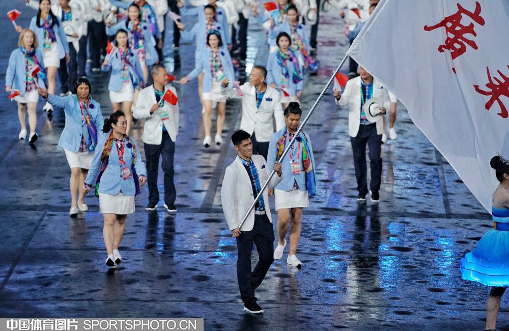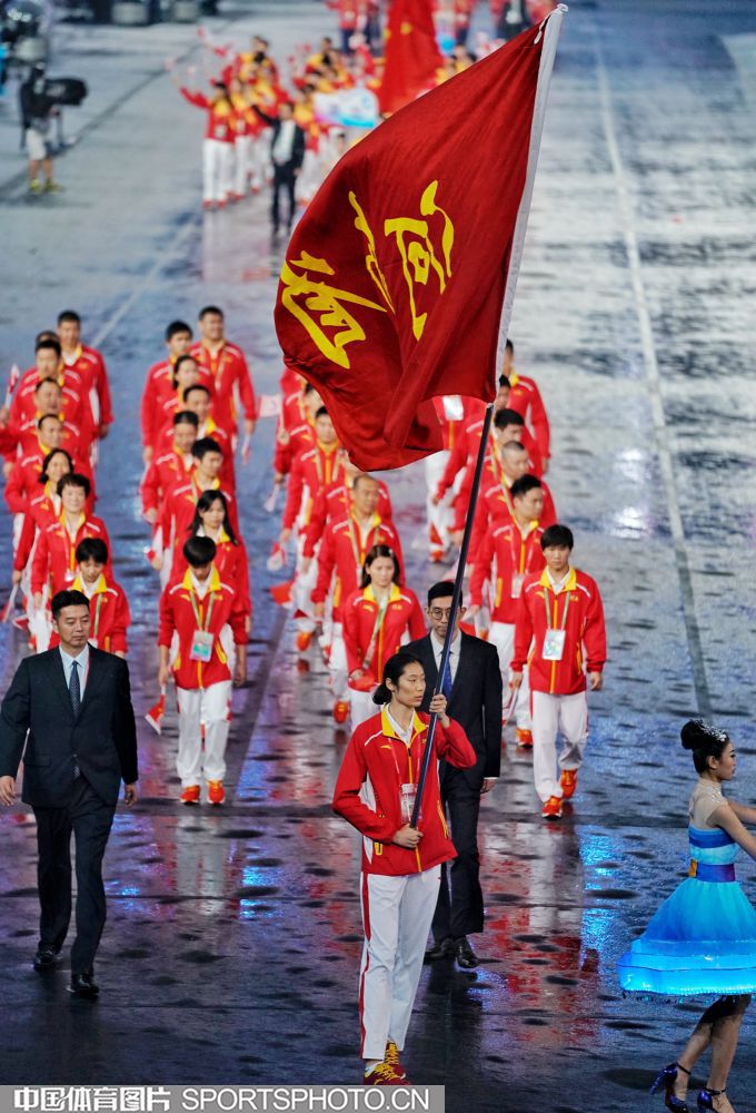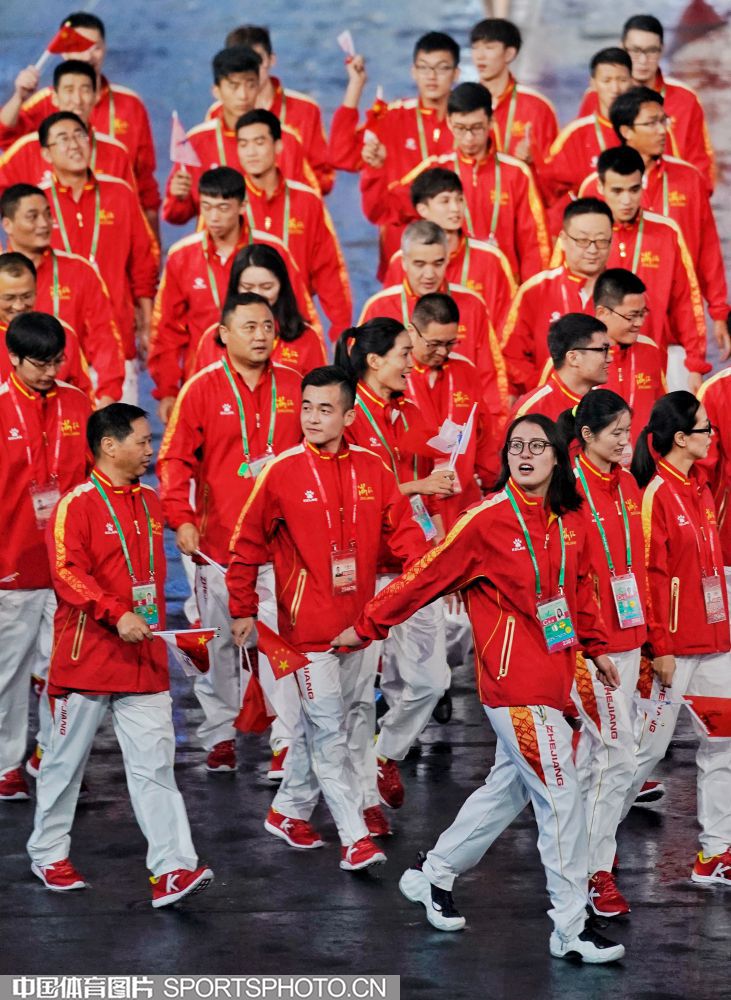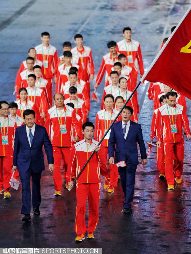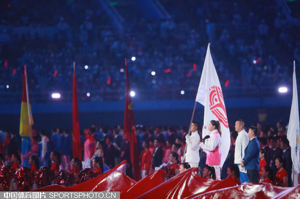2017年8月27日晚,中华人民共和国第十三届运动会开幕式在天津奥林匹克中心体育场隆重举行。图为西藏自治区代表团入场。 (中国体育图片 魏征 摄)