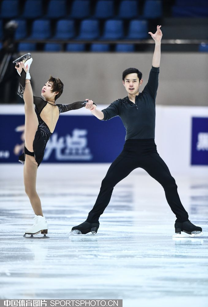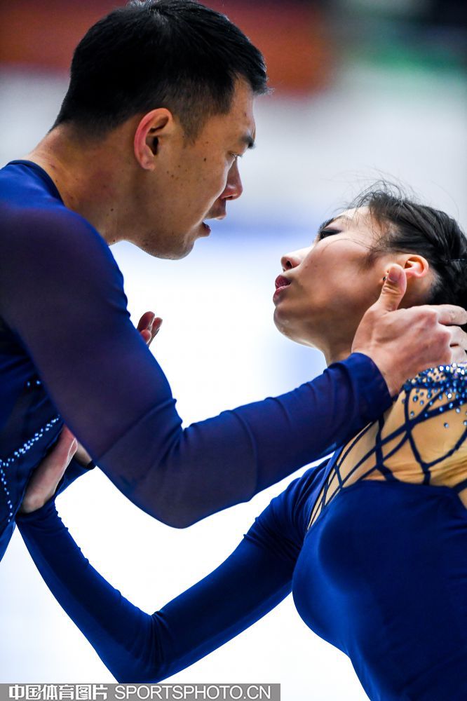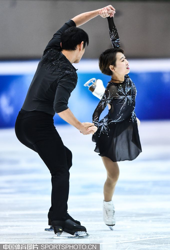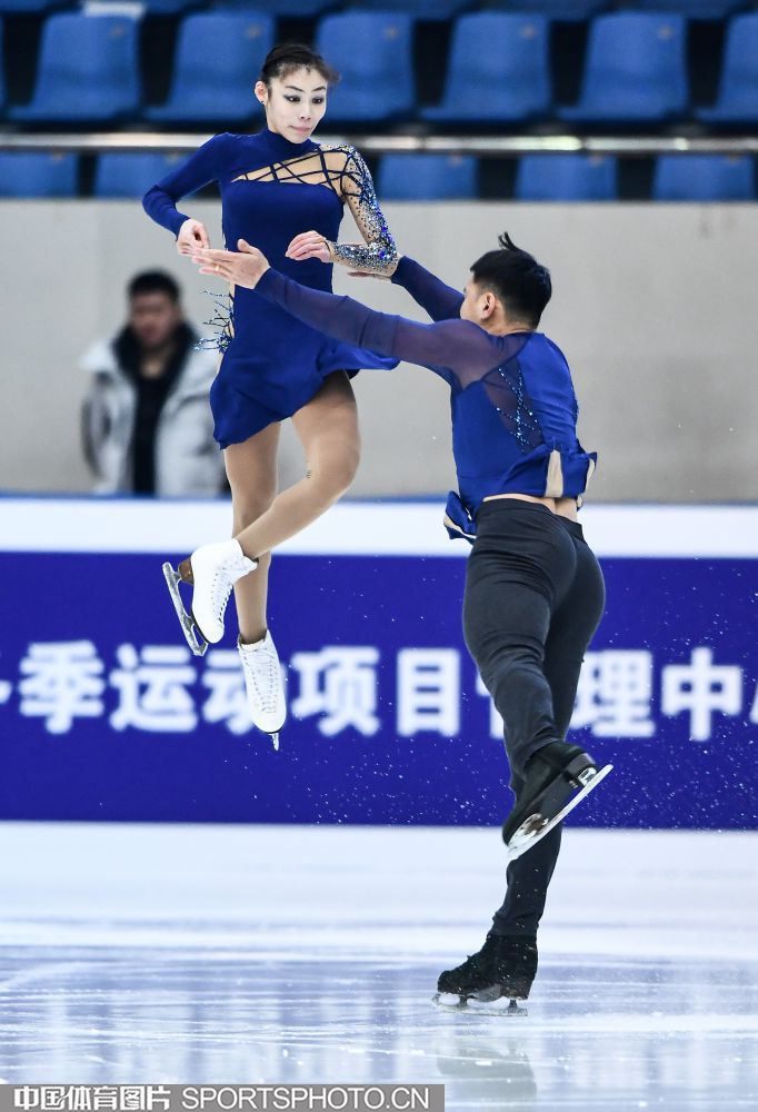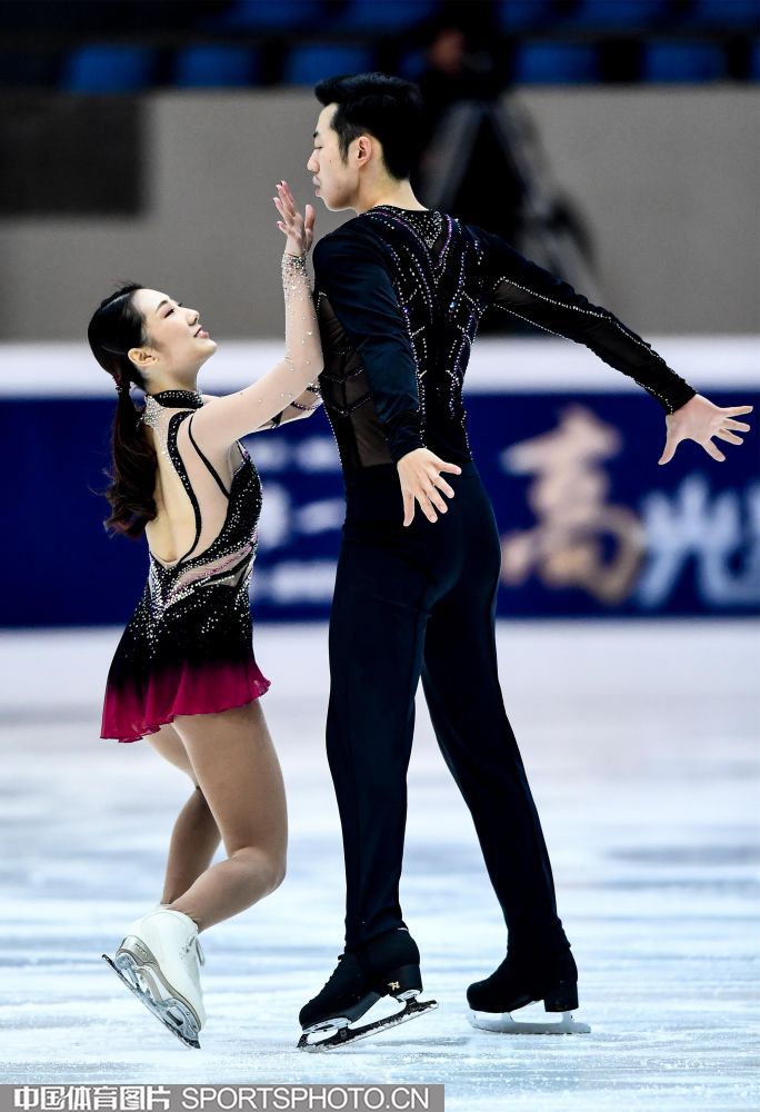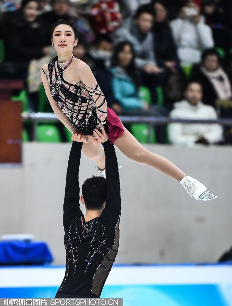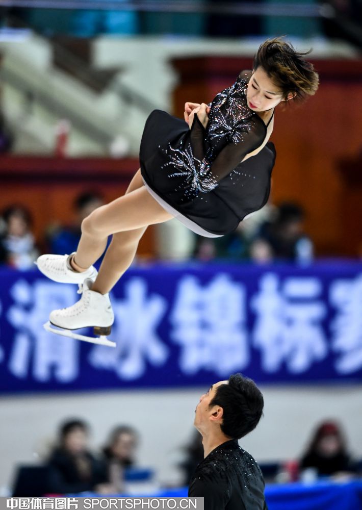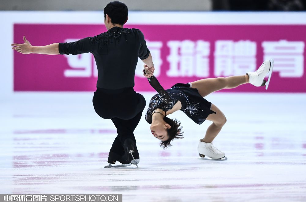 2018年12月29日,2018-2019全国花样滑冰锦标赛在哈尔滨黑龙江省滑冰馆举行,两天的比赛中选手们将争夺男子单人滑、女子单人滑、双人滑和冰上舞蹈的各项名次。隋文静/韩聪、彭程/金杨、王雪涵/王磊分别获得双人滑短节目的前三名。图为王雪涵/王磊在双人滑短节目比赛中。(中国体育图片 安灵均 摄)
