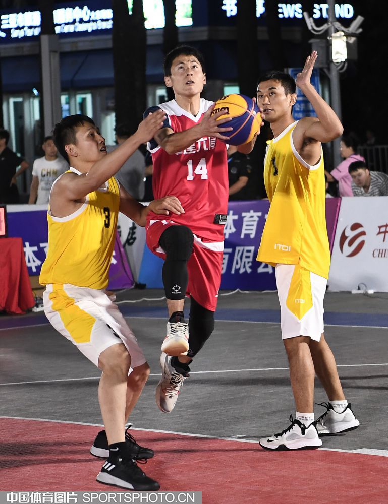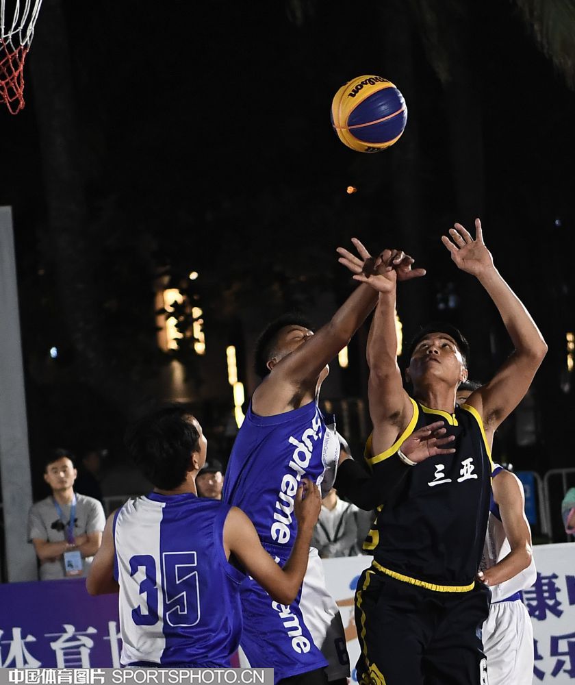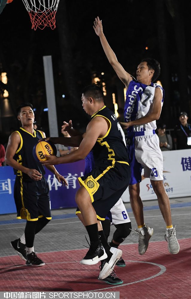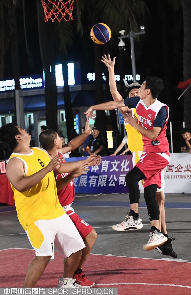 2019年11月29日,2019中国职工沙滩运动会在海南三亚大东海沙滩进入第二天。来自全国17个行业,79家大型企业单位,176支的1200余名职工运动员参与其中。图为3X3篮球比赛。(中国体育图片 刘亚茹 摄)