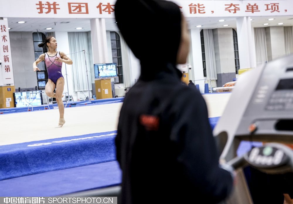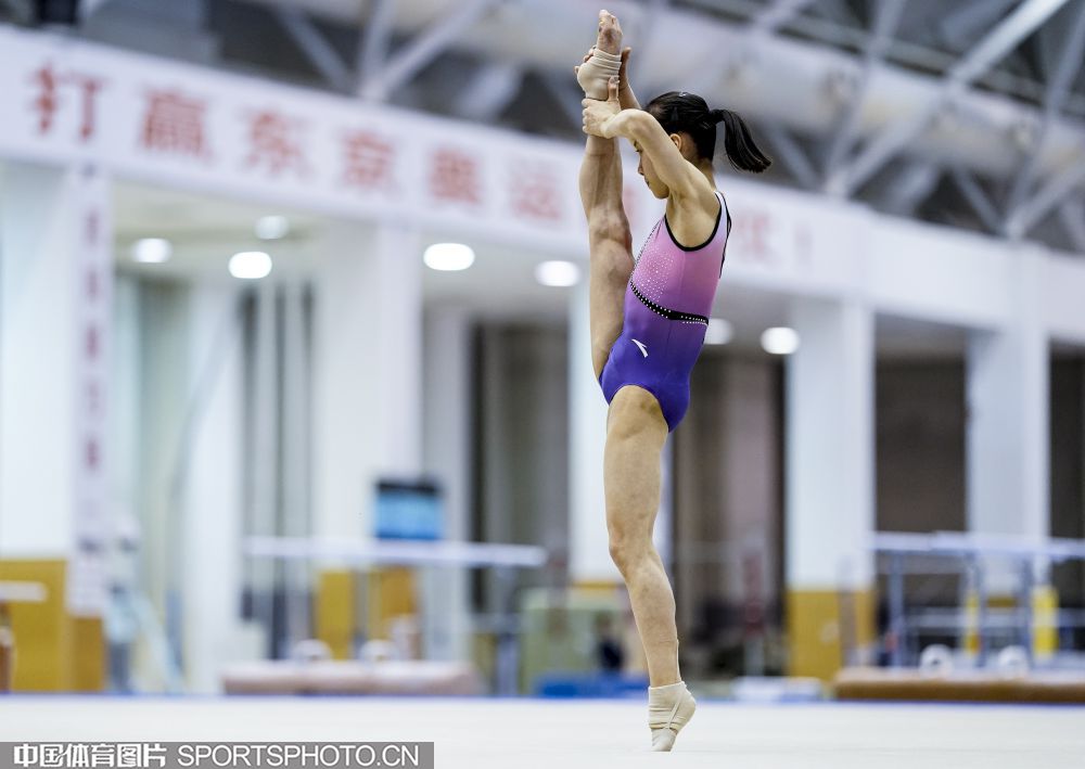 2019年12月26日,中国体操队女队员章瑾在国家体育总局训练局体操馆刻苦训练。图为章瑾在进行自由操训练。 (中国体育图片 魏征 摄)