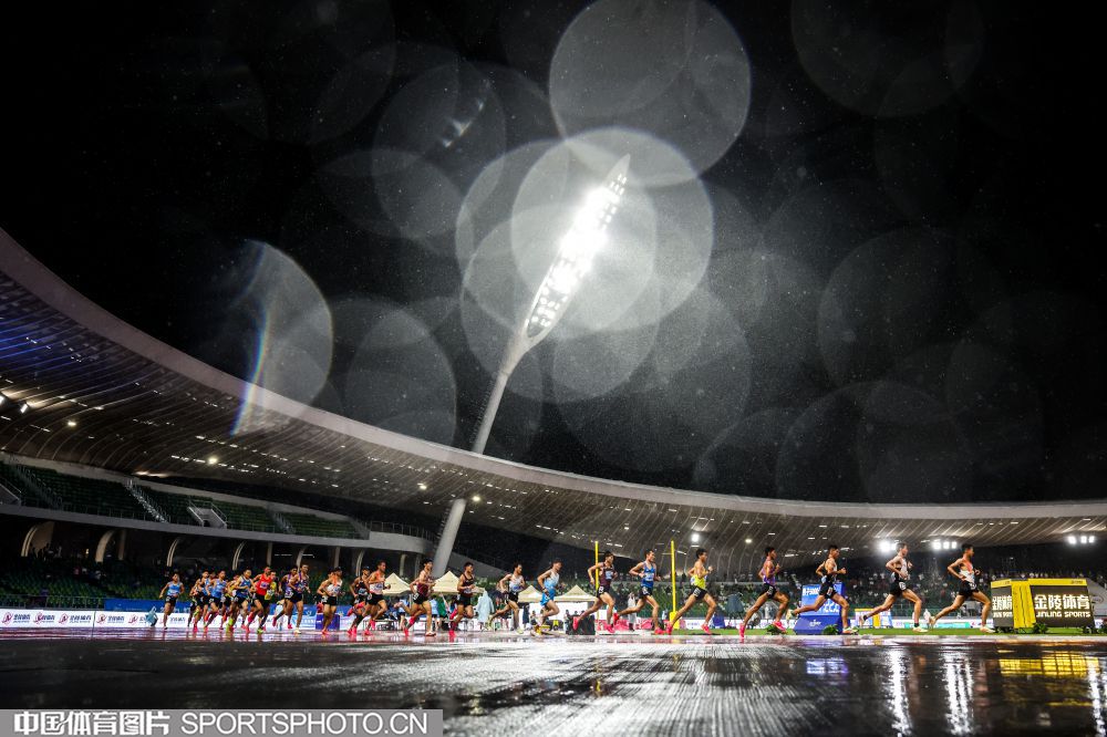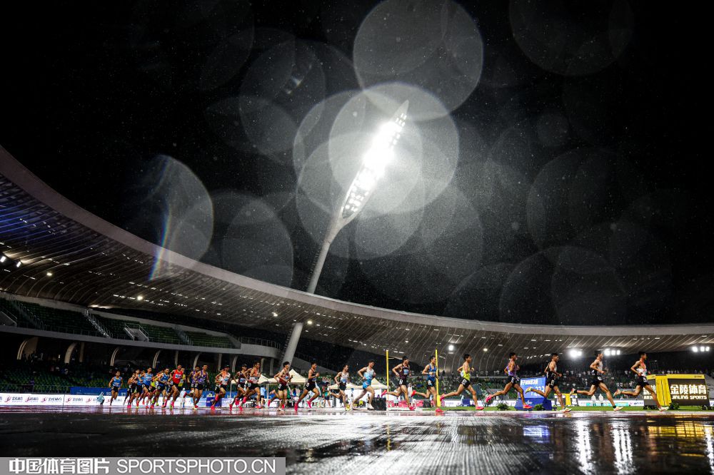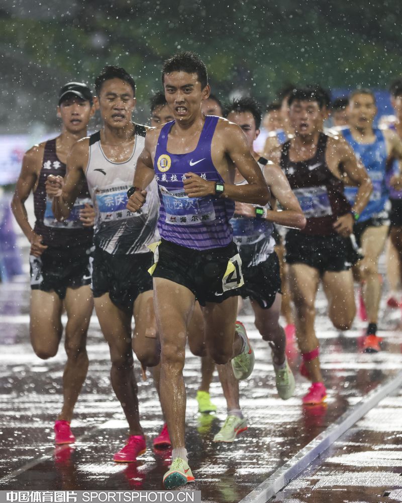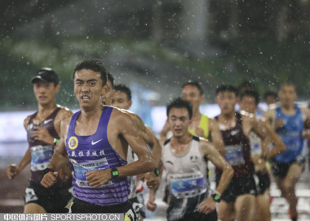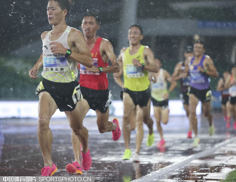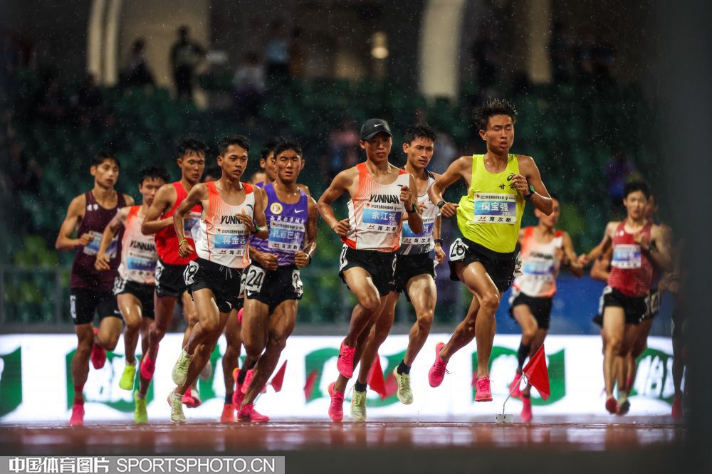2023年7月21日,2023年全国田径锦标赛在浙江衢州水亭门拉开帷幕。在男子5000米决赛中,贵州选手毛金虎以14分00秒17的成绩,获得冠军。图为比赛场景。(中国体育图片 安灵均 摄)