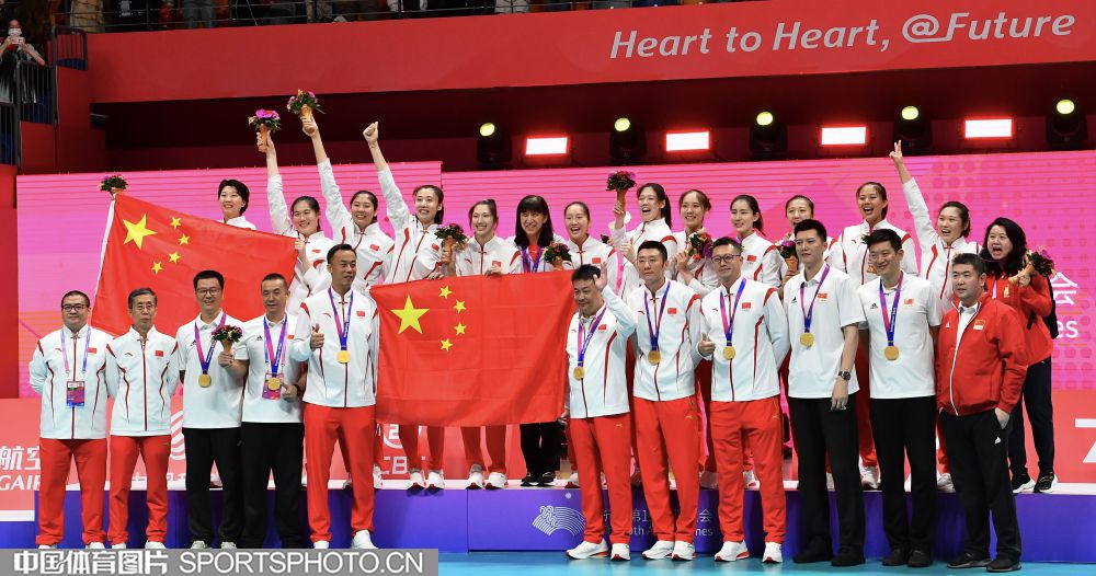 图组名称:杭州亚运会女子排球决赛 中国队夺得金牌