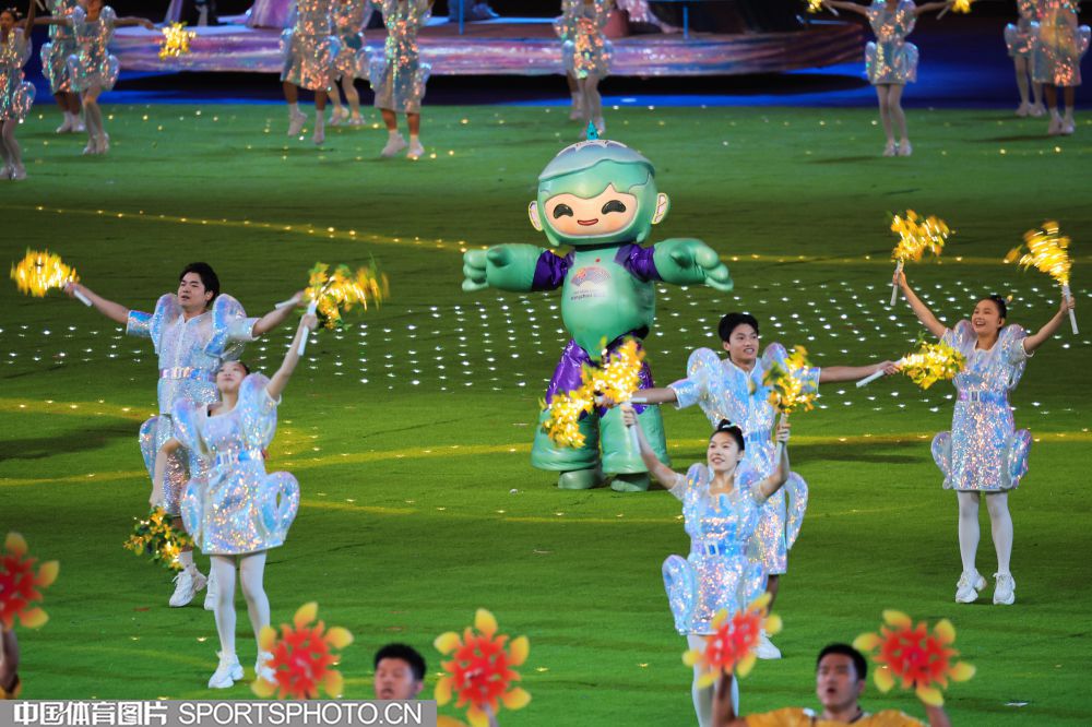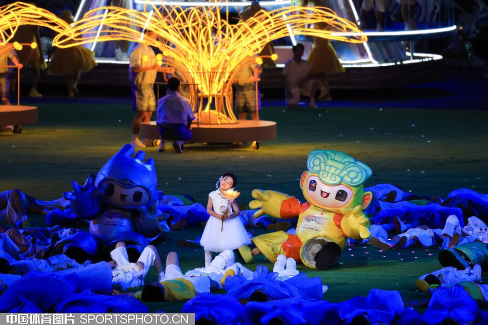 2023年10月8日,第19届亚洲运动会闭幕式在杭州奥体中心(大莲花)主体育场举行。图为闭幕式现场文艺表演。(中国体育图片 鹿麟 摄)