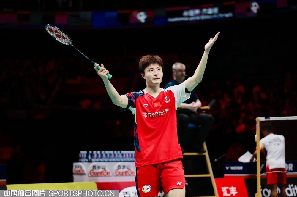 2024年5月5日,2024年汤尤杯在成都高新体育中心体育馆进入最后一个比赛日。在男子团体决赛中,中国队3比0击败印尼队,第十一次捧起汤姆斯杯。图为石宇奇在男子单打比赛中。(中国体育图片 鹿麟 摄)