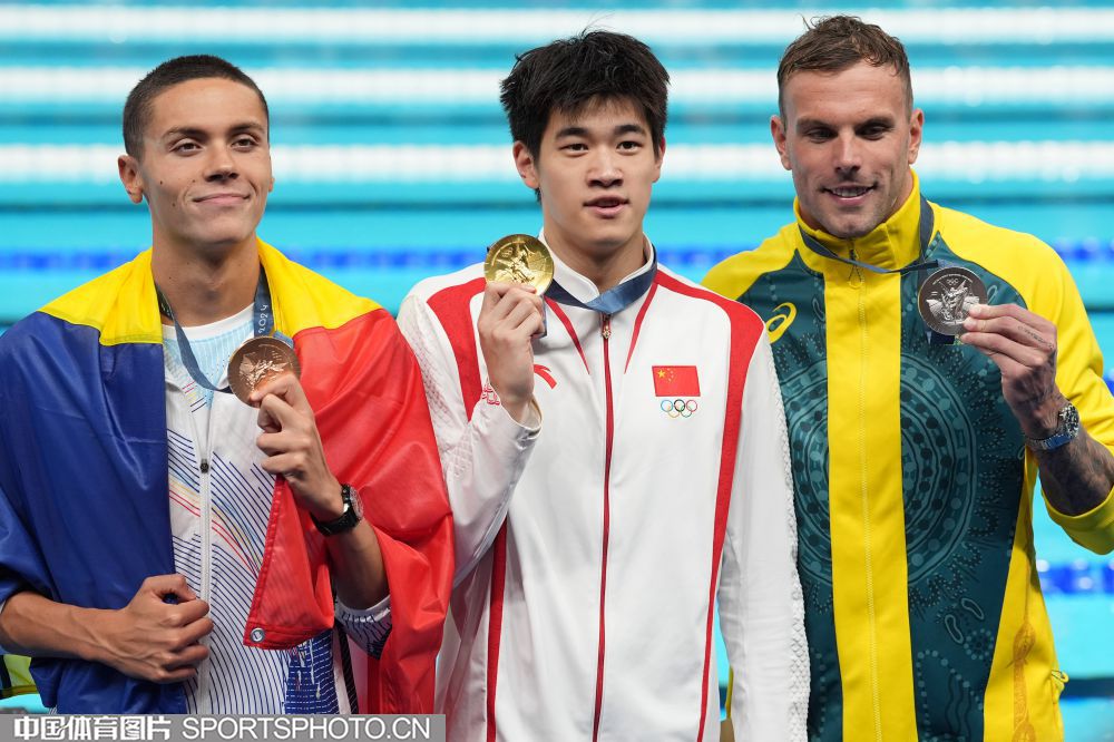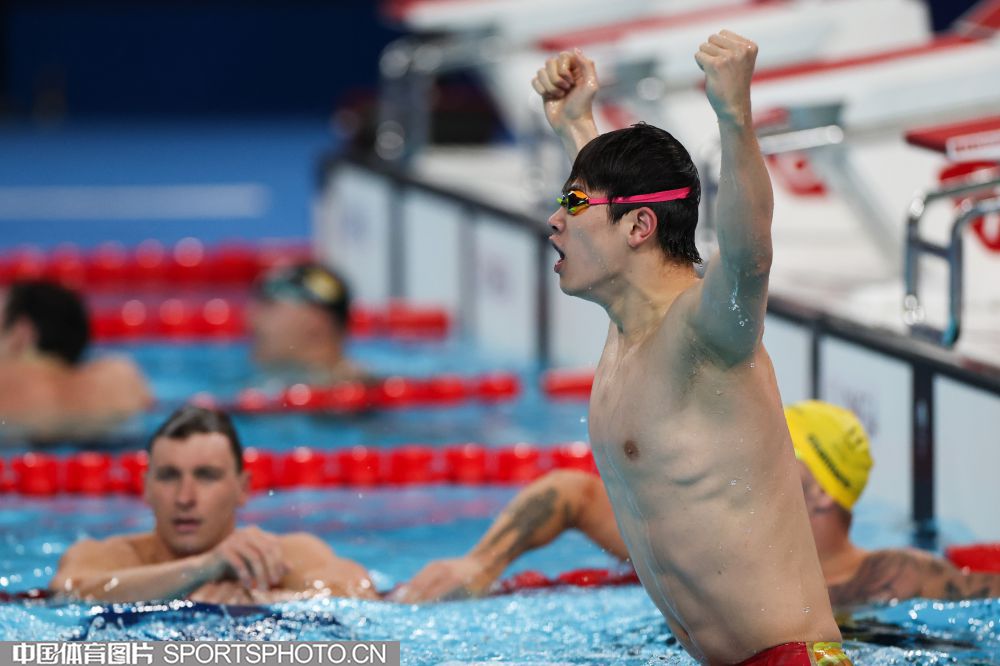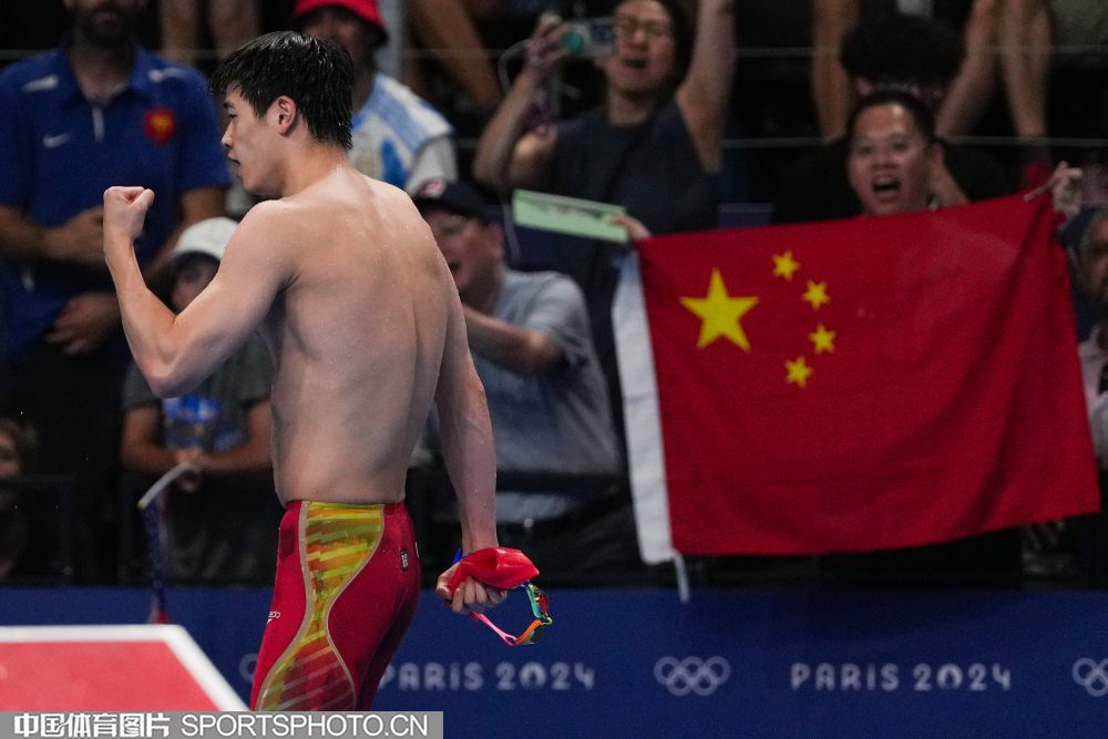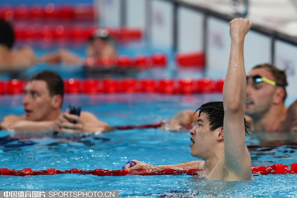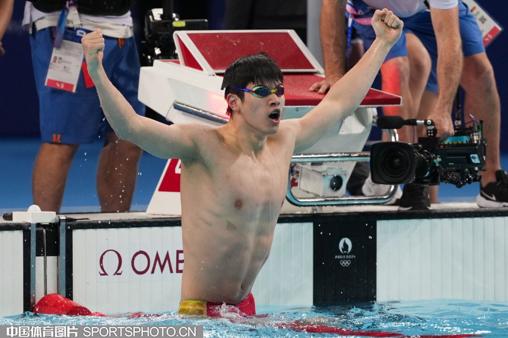 图组名称:巴黎奥运会男子100米自由泳决赛 潘展乐破世界纪录夺冠