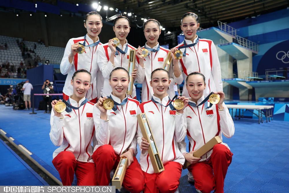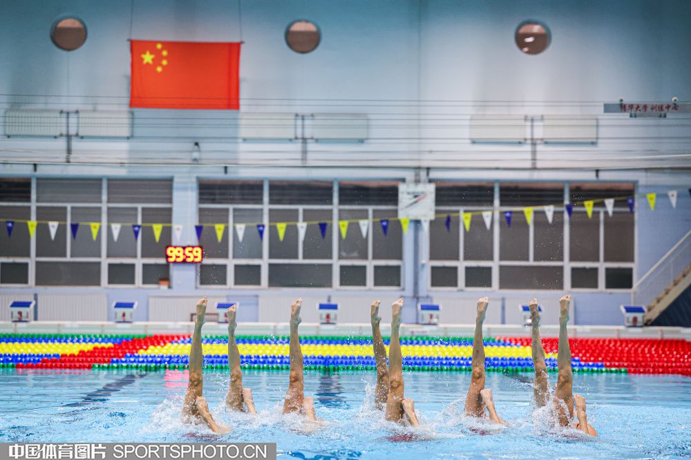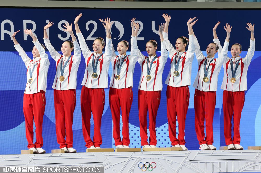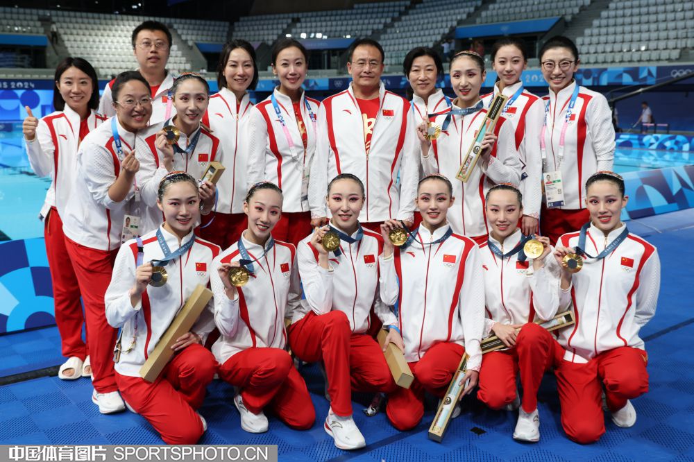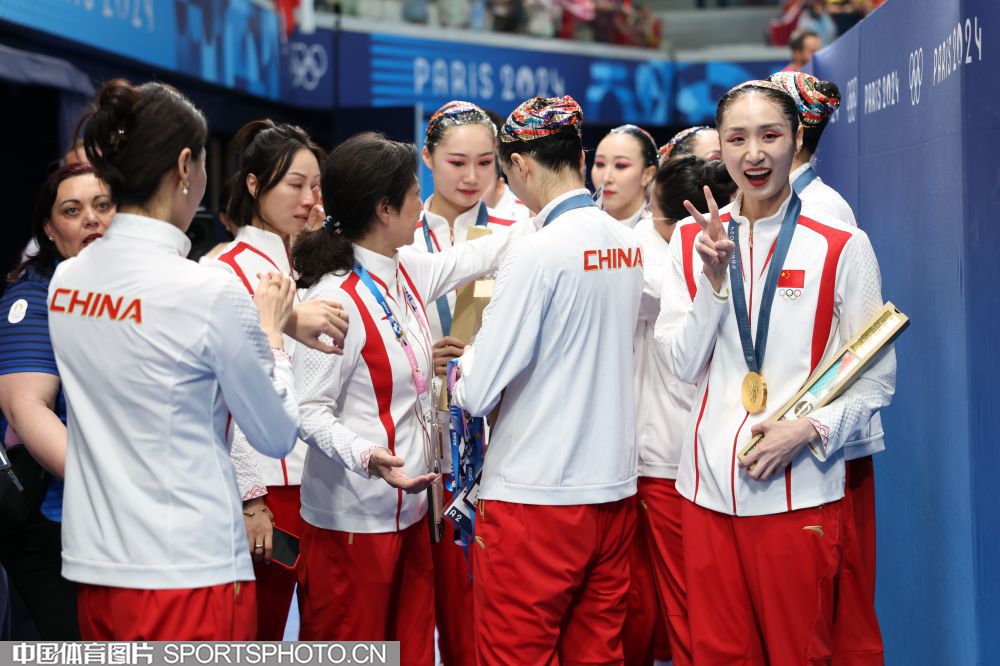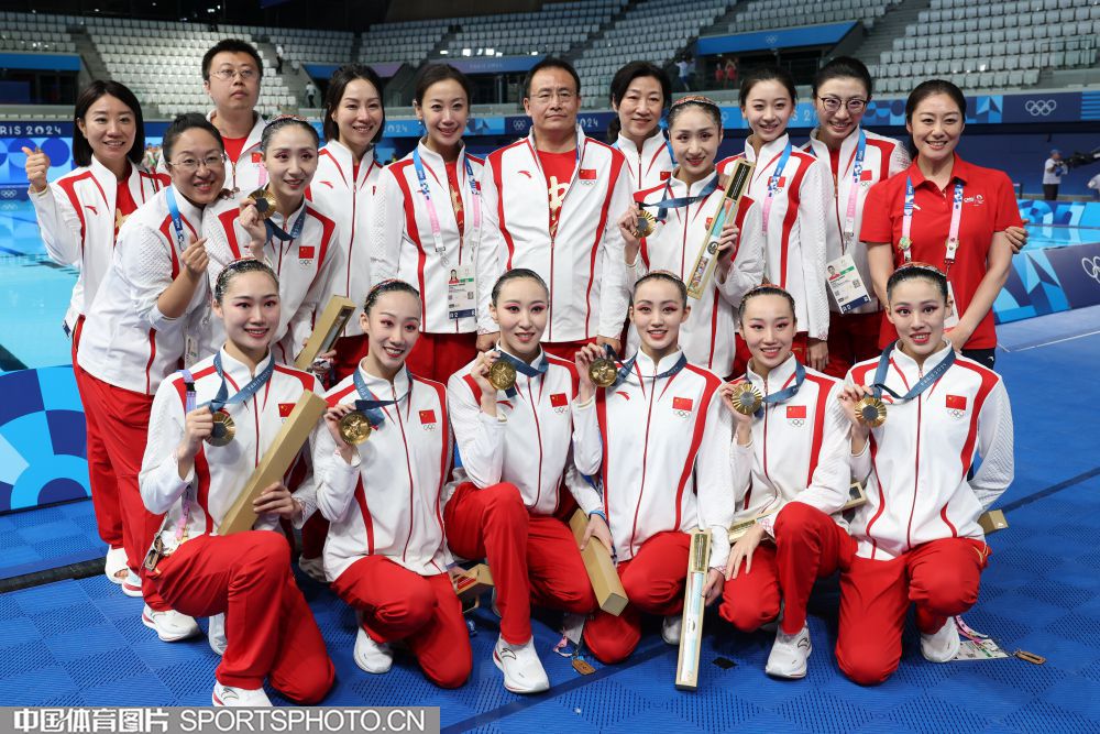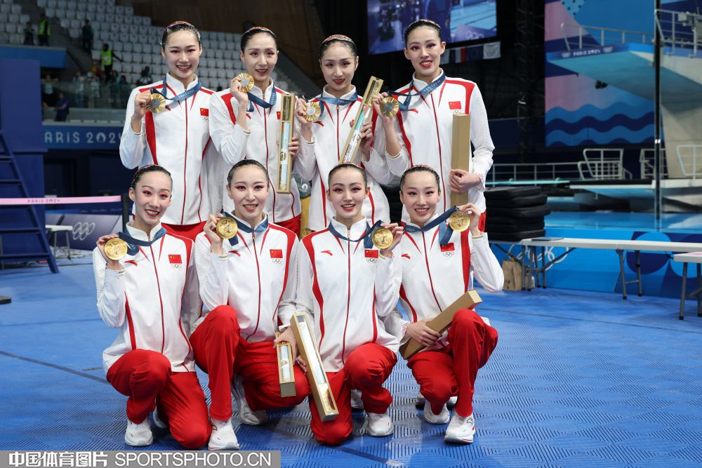 法国当地时间2024年8月7日,巴黎奥运会花样游泳集体技巧自选在巴黎水上运动中心举行,中国队常昊,冯雨、王赐月、王柳懿、王芊懿、向玢璇、肖雁宁、张雅怡以996.1389的总成绩,夺得金牌,实现了中国花游在奥运金牌史上“零的突破”。这是几代花游人努力奋斗的结果。图为2024年6月24日,中国花样游泳队队员教练在北京木樨园体校游泳馆内观看视频,精雕细琢每一个动作备战即将到来的巴黎奥运会。 (中国体育图片 安灵均 摄)