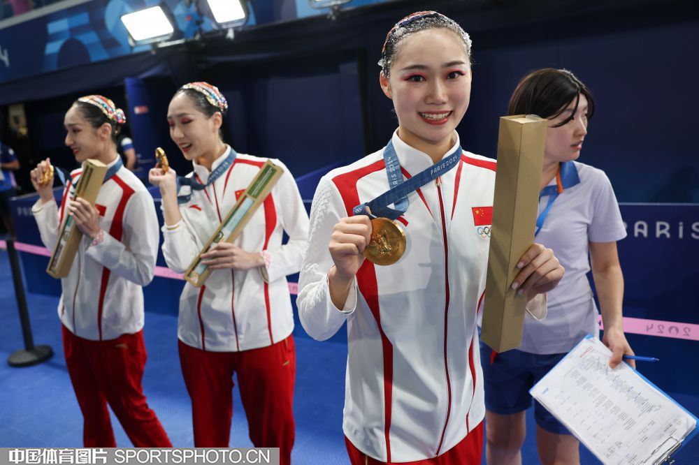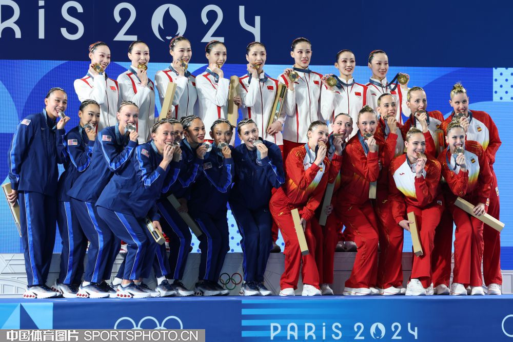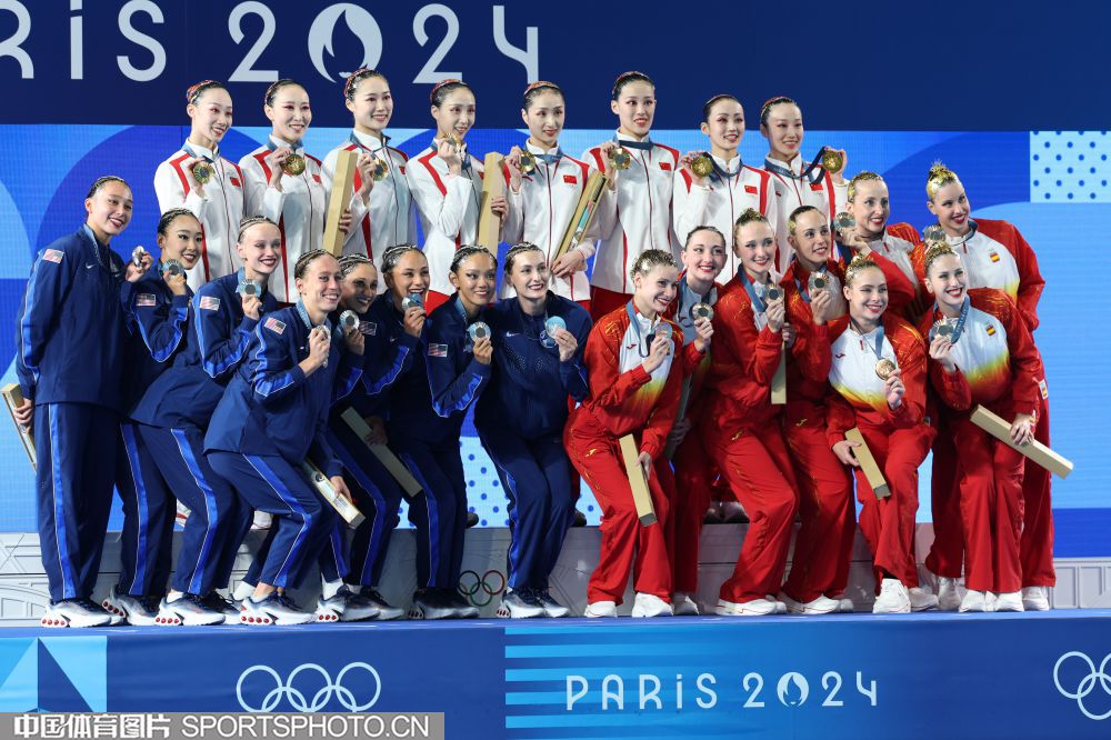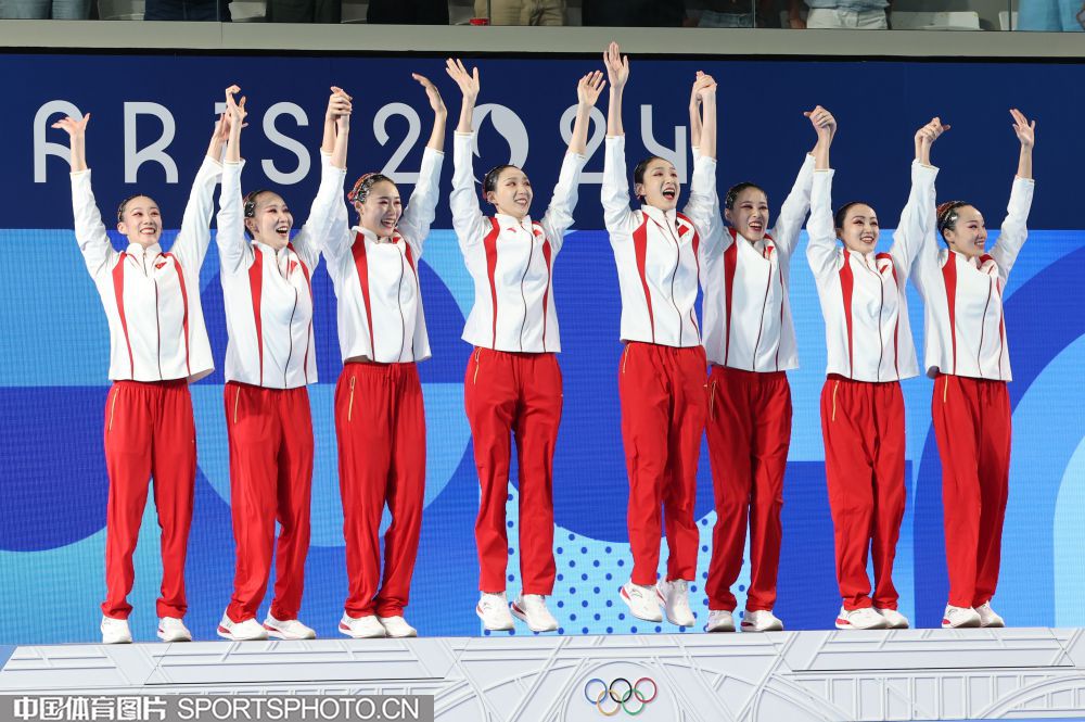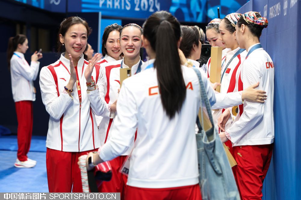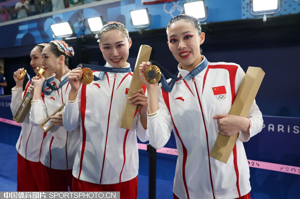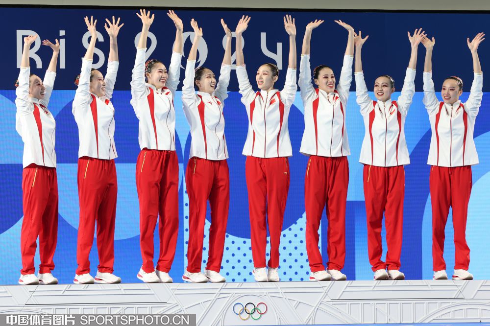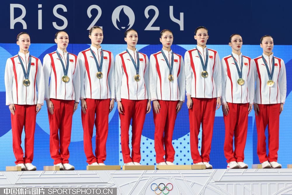 法国当地时间2024年8月7日,巴黎奥运会花样游泳集体技巧自选在巴黎水上运动中心举行,中国队常昊,冯雨、王赐月、王柳懿、王芊懿、向玢璇、肖雁宁、张雅怡以996.1389的总成绩,夺得金牌,实现了中国花游在奥运金牌史上“零的突破”。这是几代花游人努力奋斗的结果。图为2024年6月24日,中国花样游泳队队员教练在北京木樨园体校游泳馆内观看视频,精雕细琢每一个动作备战即将到来的巴黎奥运会。 (中国体育图片 安灵均 摄)