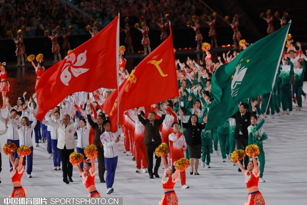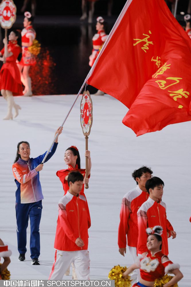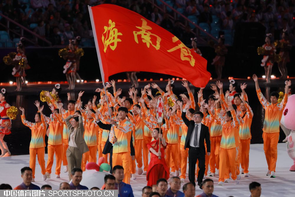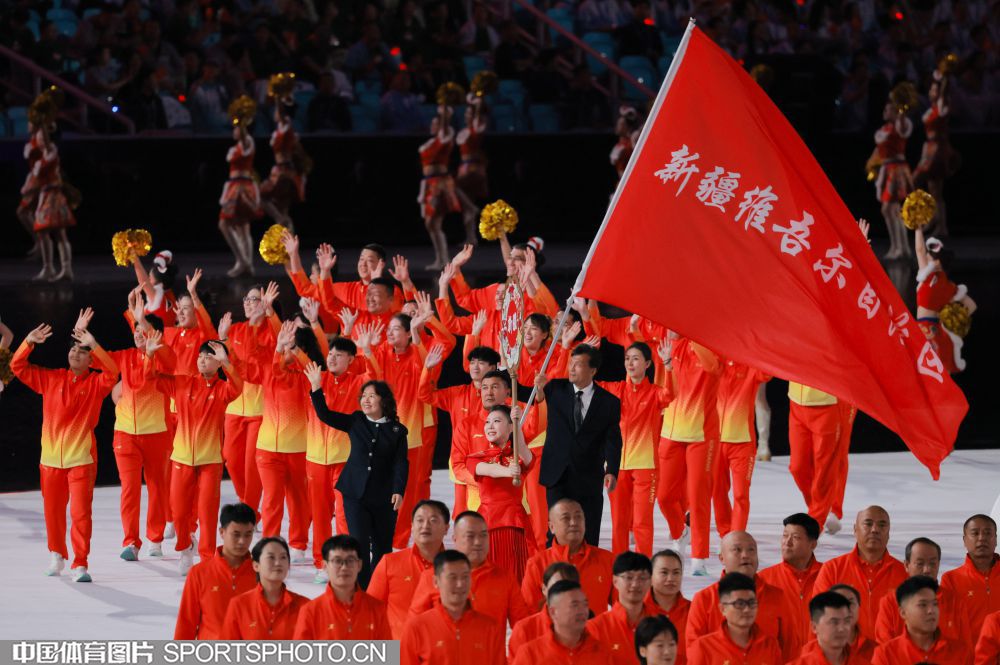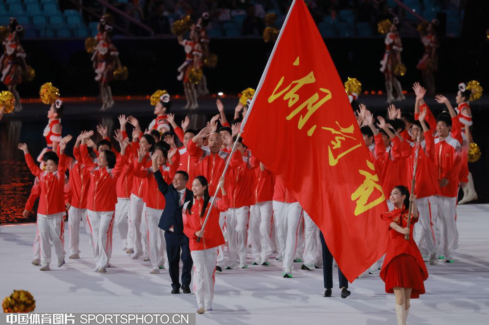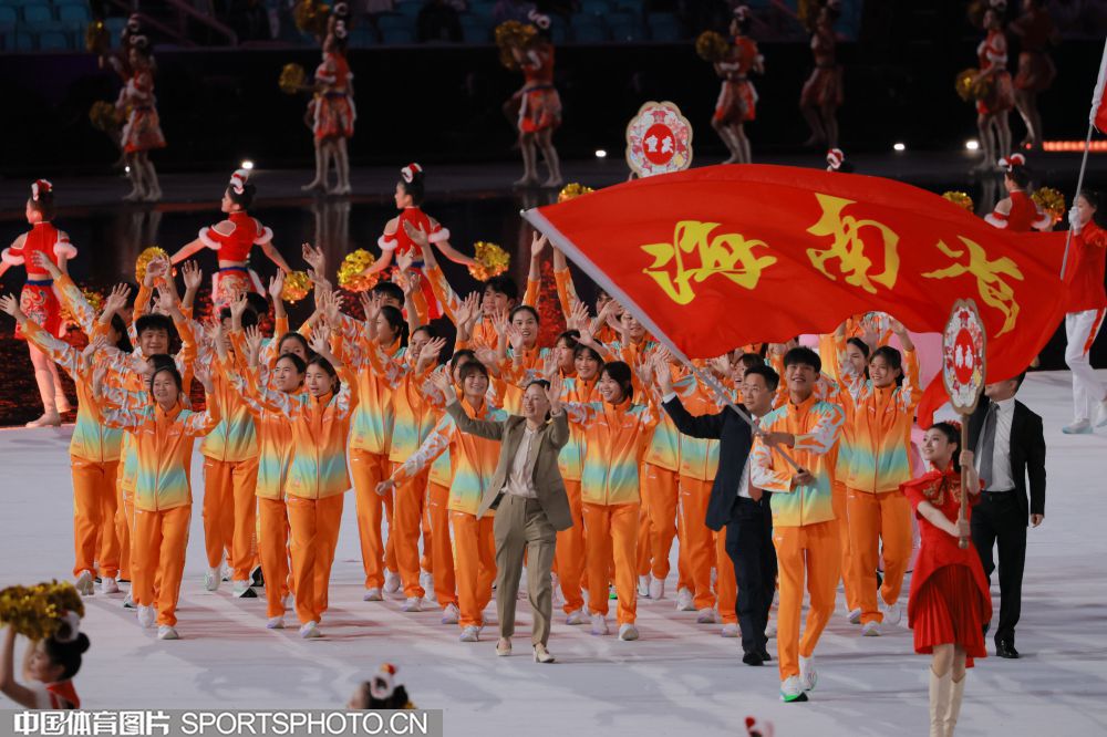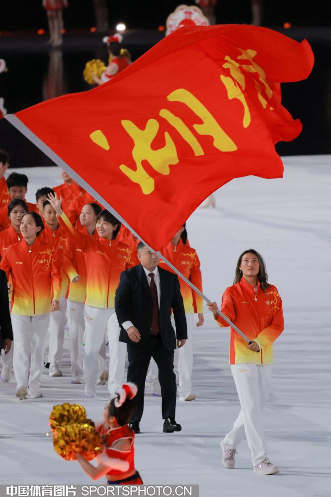 2025年11月9日,中华人民共和国第十五届运动会开幕式在广东奥林匹克体育中心举行。图为广西壮族自治区体育代表团入场。 (中国体育图片 鹿麟 摄)