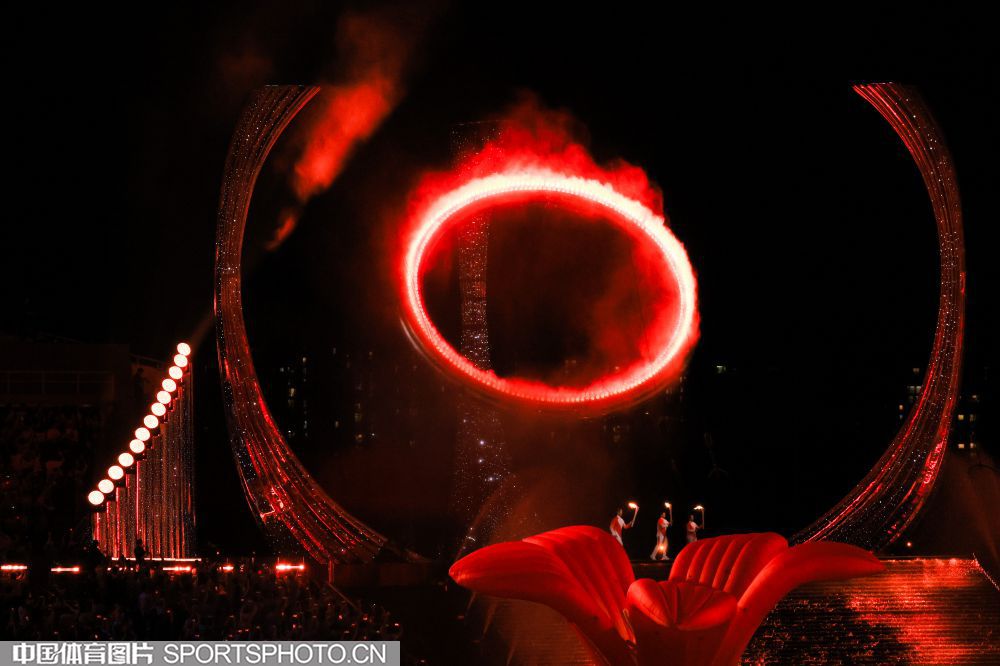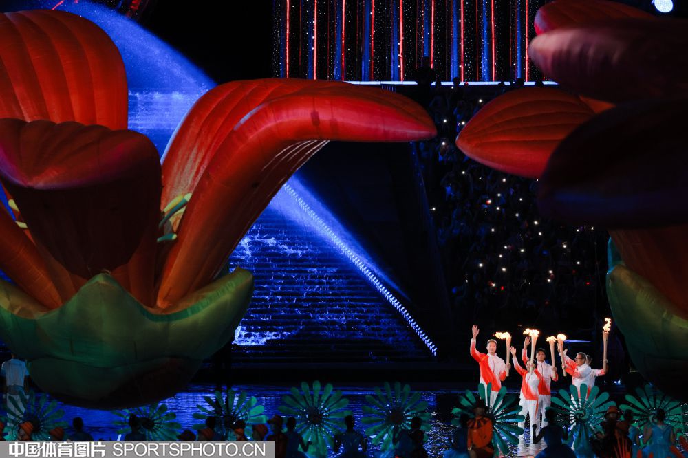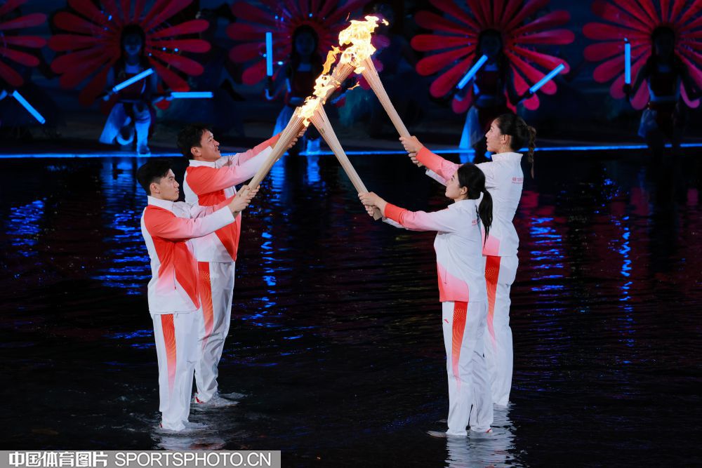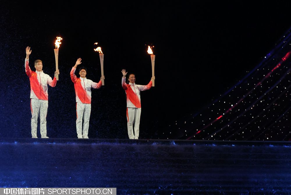 图组名称:第十五届全国运动会开幕 粤港澳运动员共同点燃主火炬