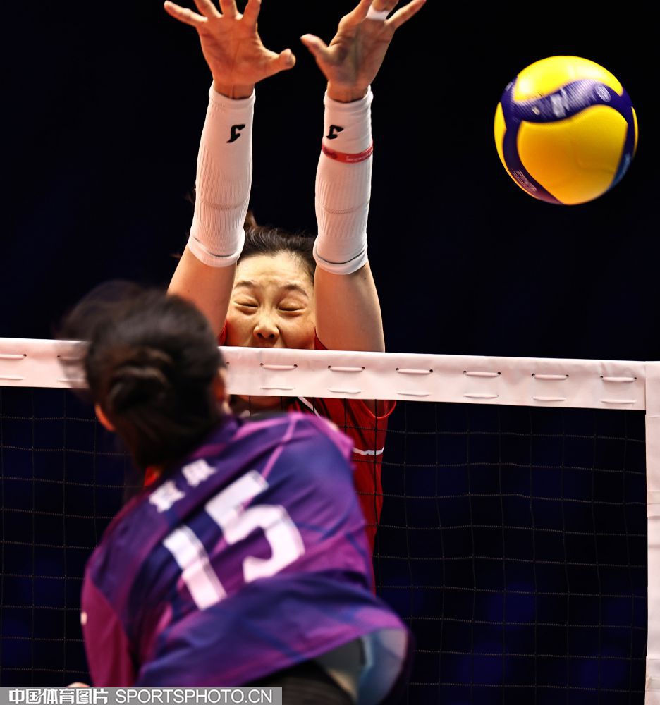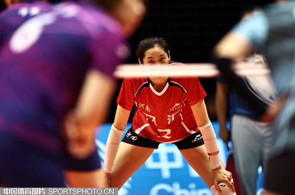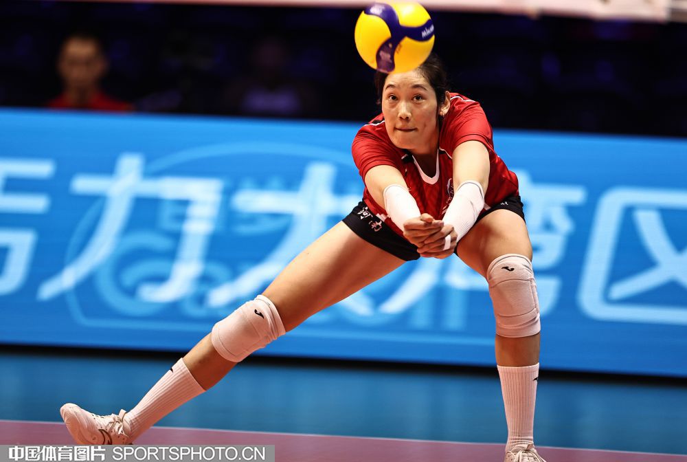 2025年11月10日,中华人民共和国第十五届运动会女子排球小组赛的比赛继续在澳门威尼斯人综艺馆进行。在A组的一场比赛中,河南队3比0击败四川队。图为河南队朱婷防守。(中国体育图片 王宪民 摄)