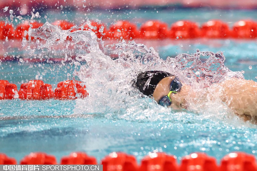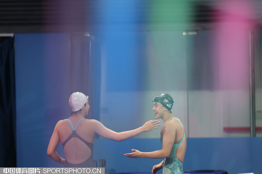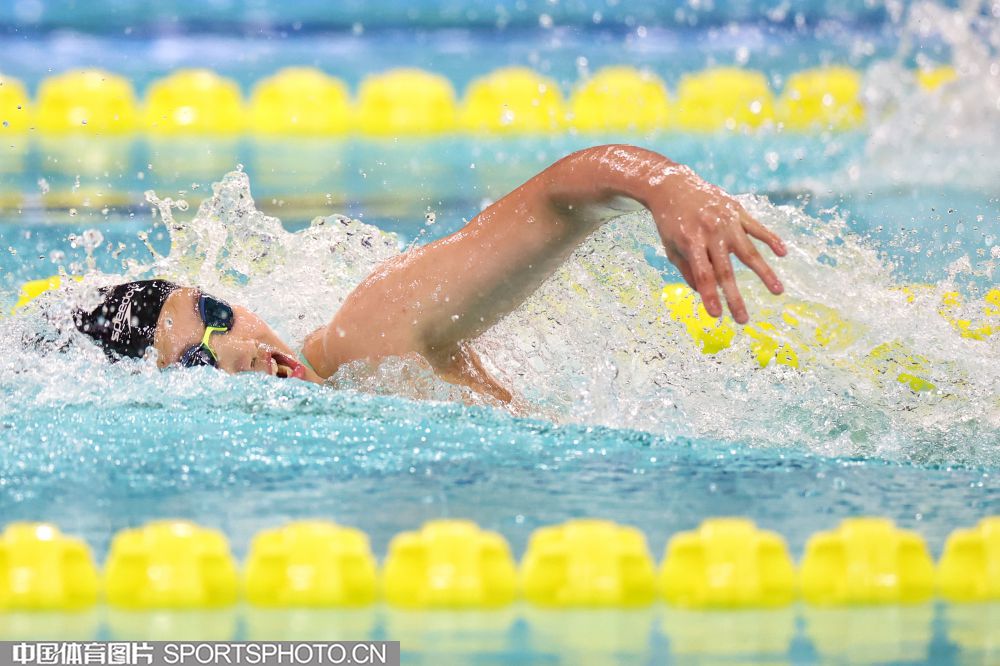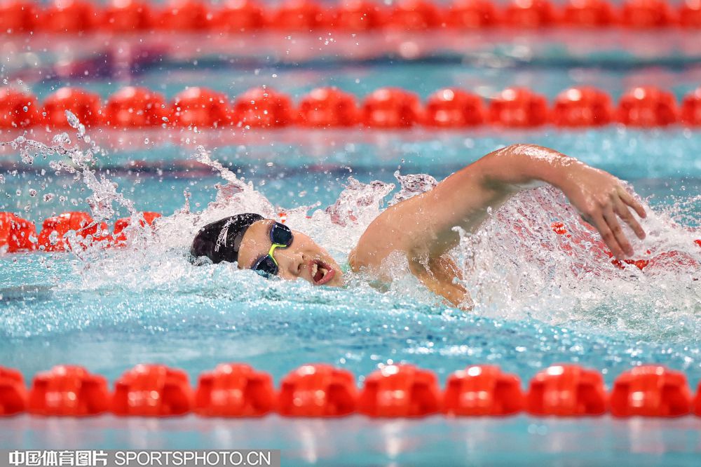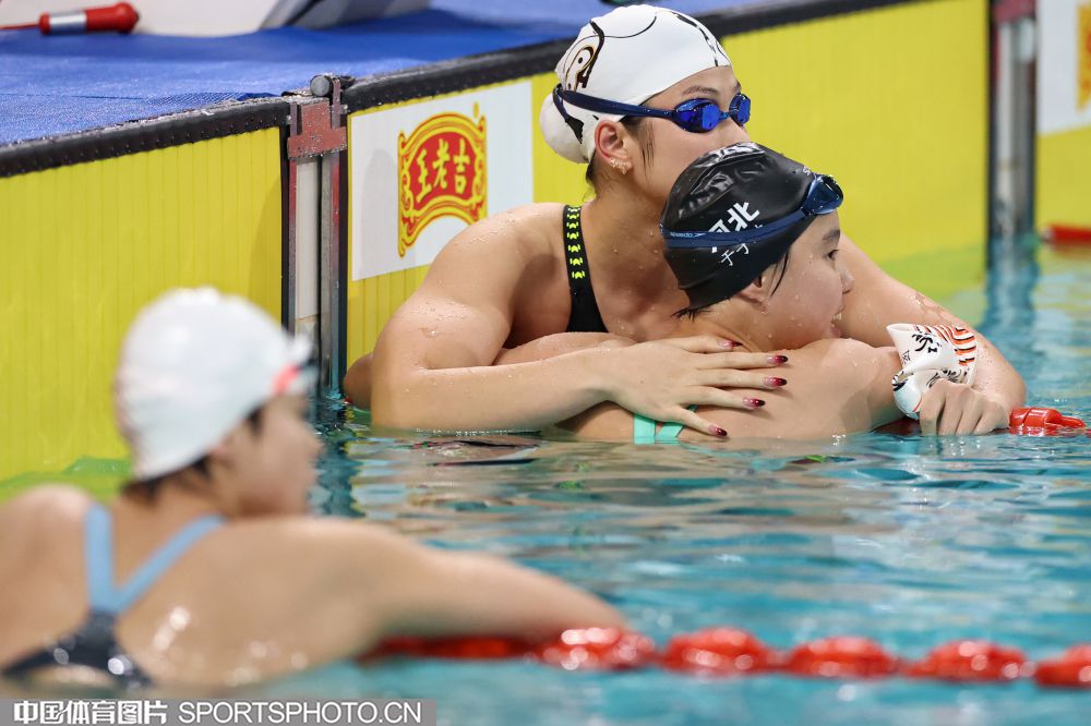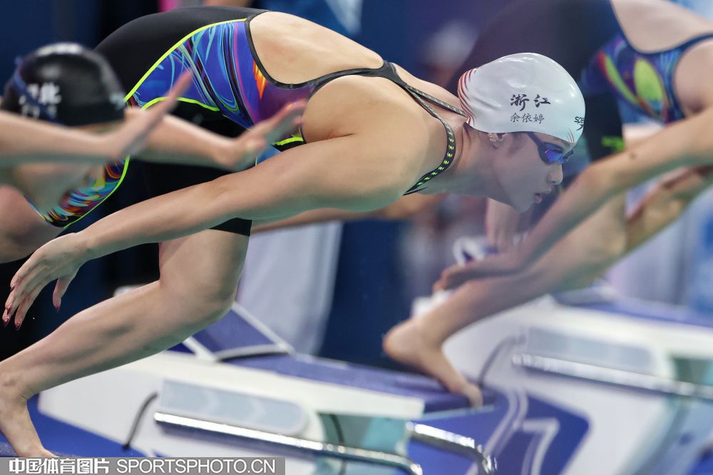 2025年11月11日,中华人民共和国第十五届运动会游泳比赛继续在深圳大运中心游泳馆进行。在女子200米混合泳决赛中,河北队于子迪以2分07秒41获得金牌,并打破了亚洲纪录和国家纪录,浙江队余依婷获得亚军。图为余依婷在比赛中。(中国体育图片 安灵均 摄)