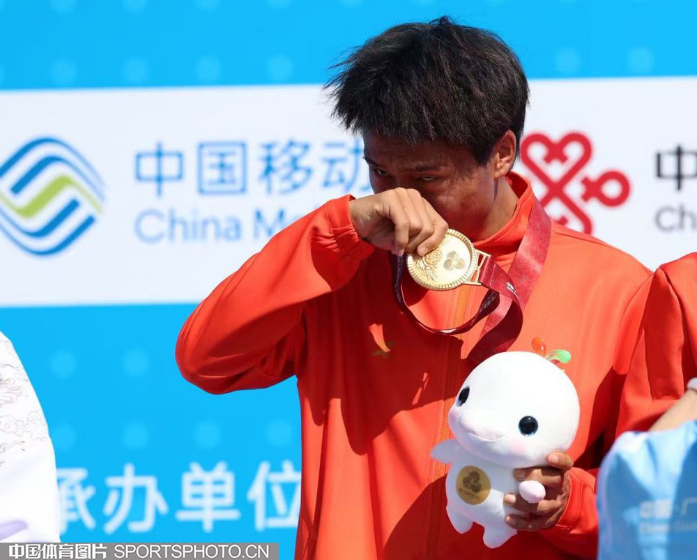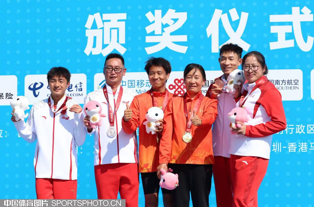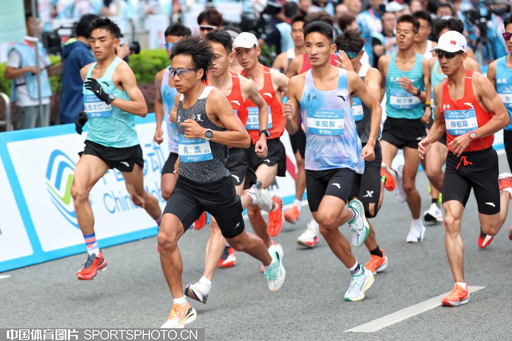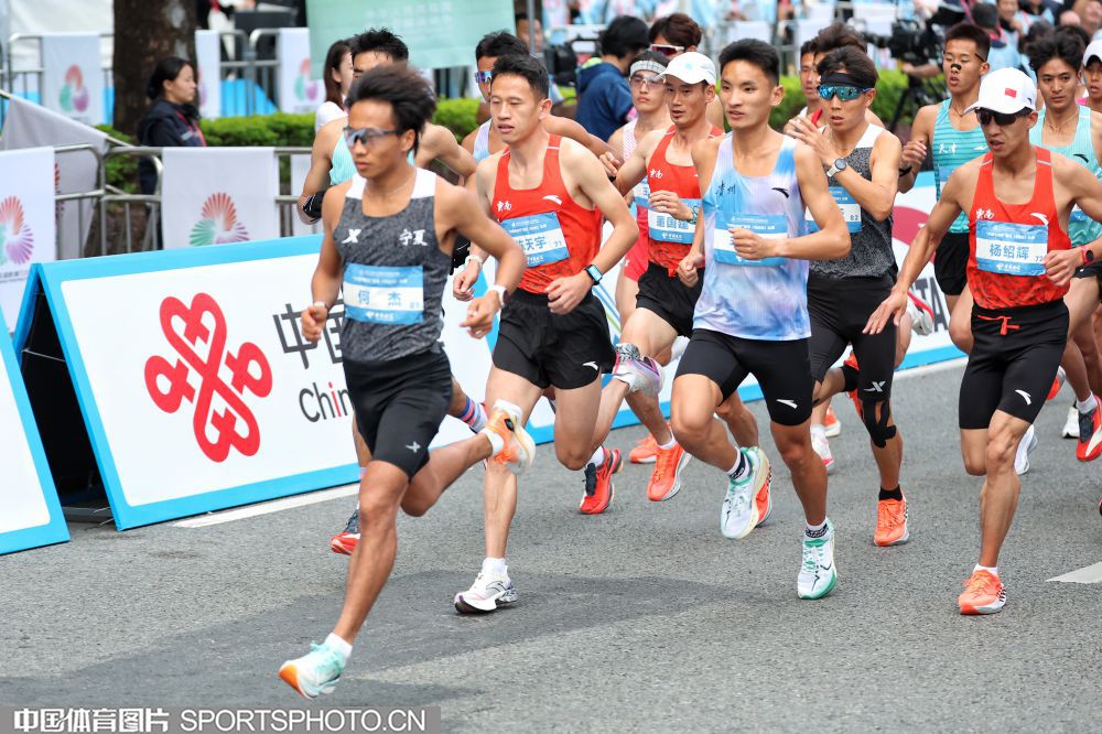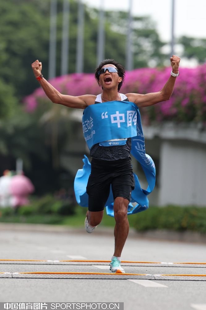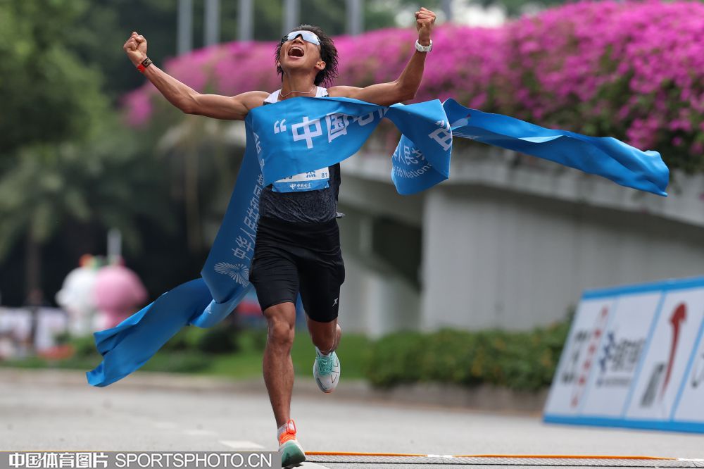 2025年11月15日,十五运会男子马拉松比赛在深圳湾体育中心旁海德三道开赛,这是全运会历史上首个跨境马拉松赛事,选手们需经过深圳湾口岸进入香港赛段。图为宁夏选手何杰夺得冠军。(中国体育图片 安灵均 摄)