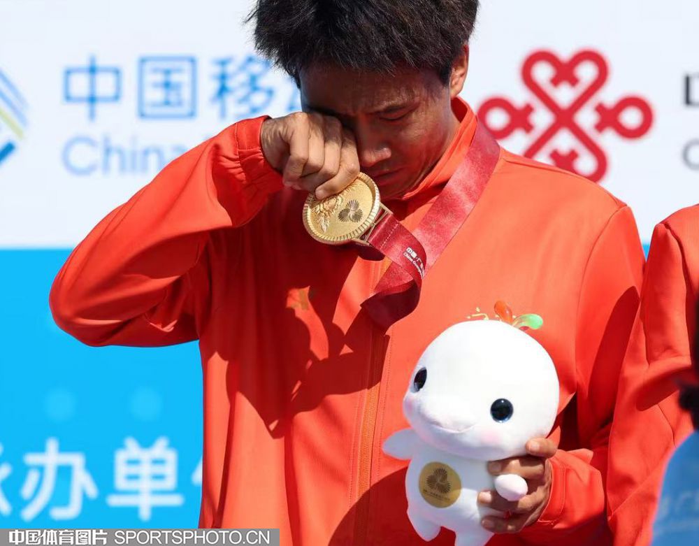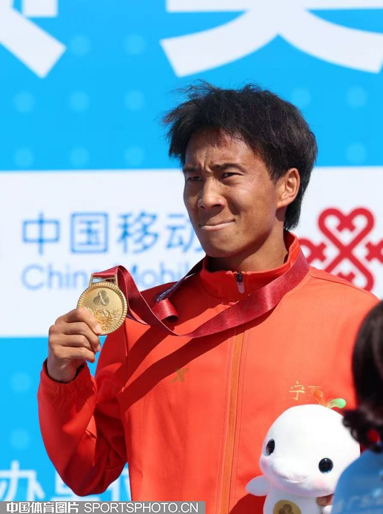 图组名称:十五运会男子马拉松决赛 宁夏选手何杰夺冠