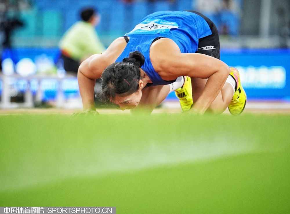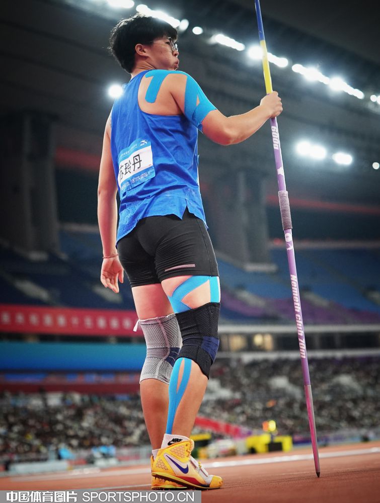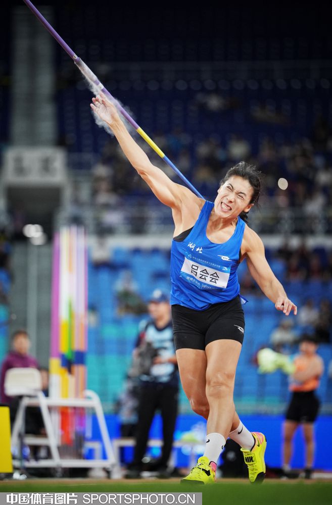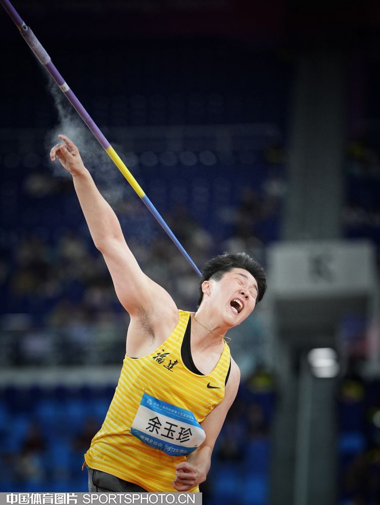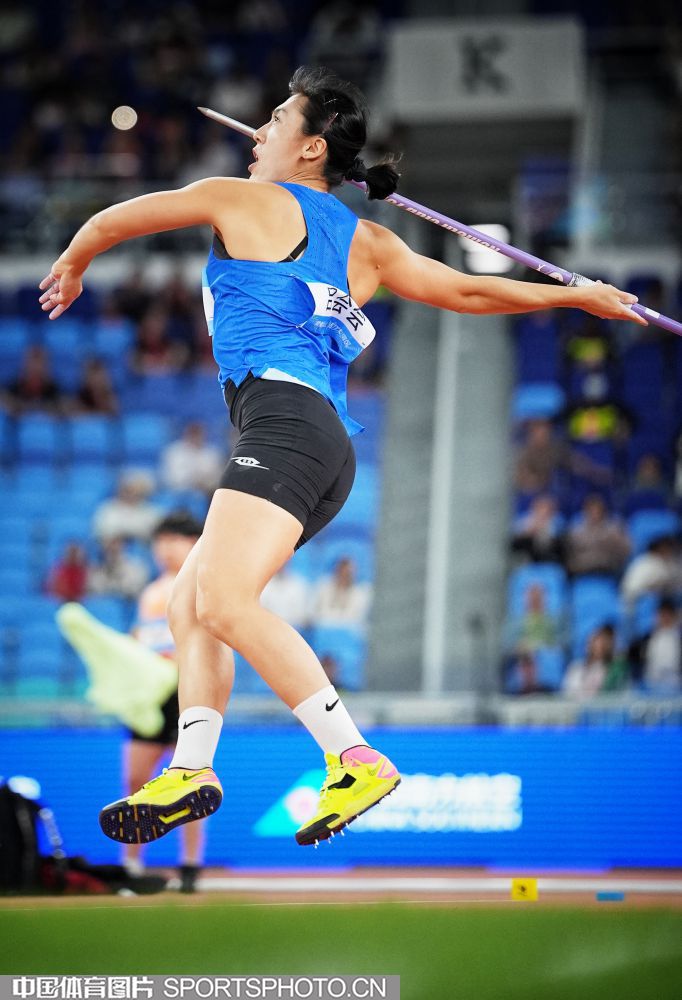 2025年11月17日,第十五届全国运动会田径女子标枪决赛在广东省奥体中心体育场进行,湖北队苏玲丹、吕会会包揽冠亚军。图为福建队余玉珍在比赛中。(中国体育图片 魏征 摄)