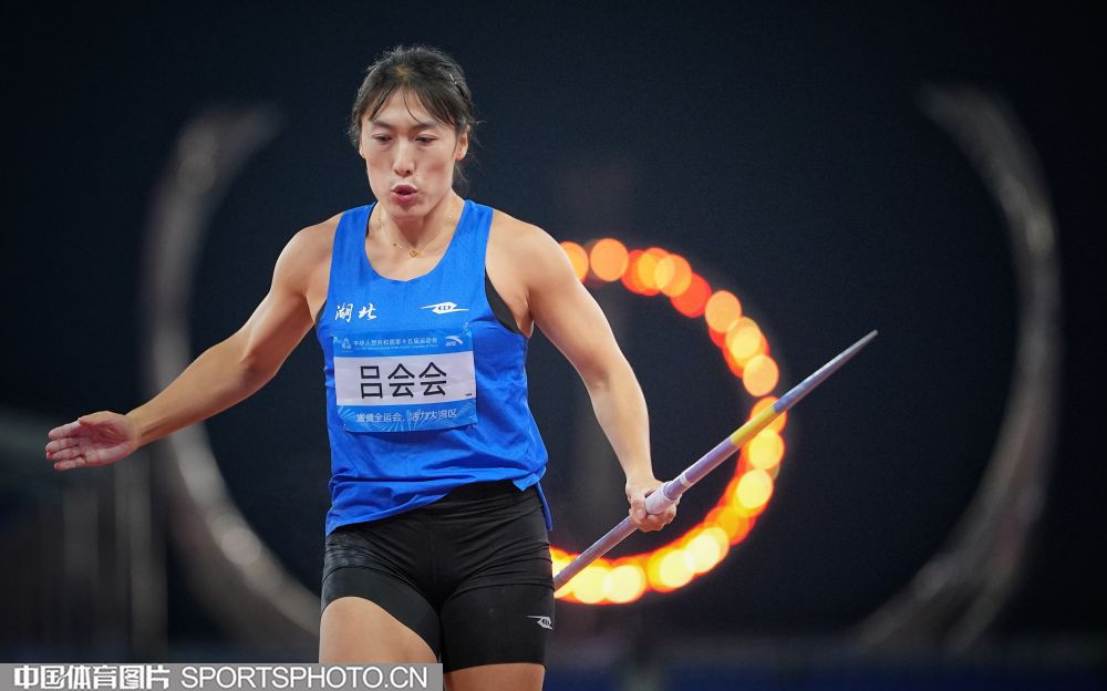 图组名称:十五运会田径女子标枪决赛 湖北队苏玲丹、吕会会包揽冠亚军