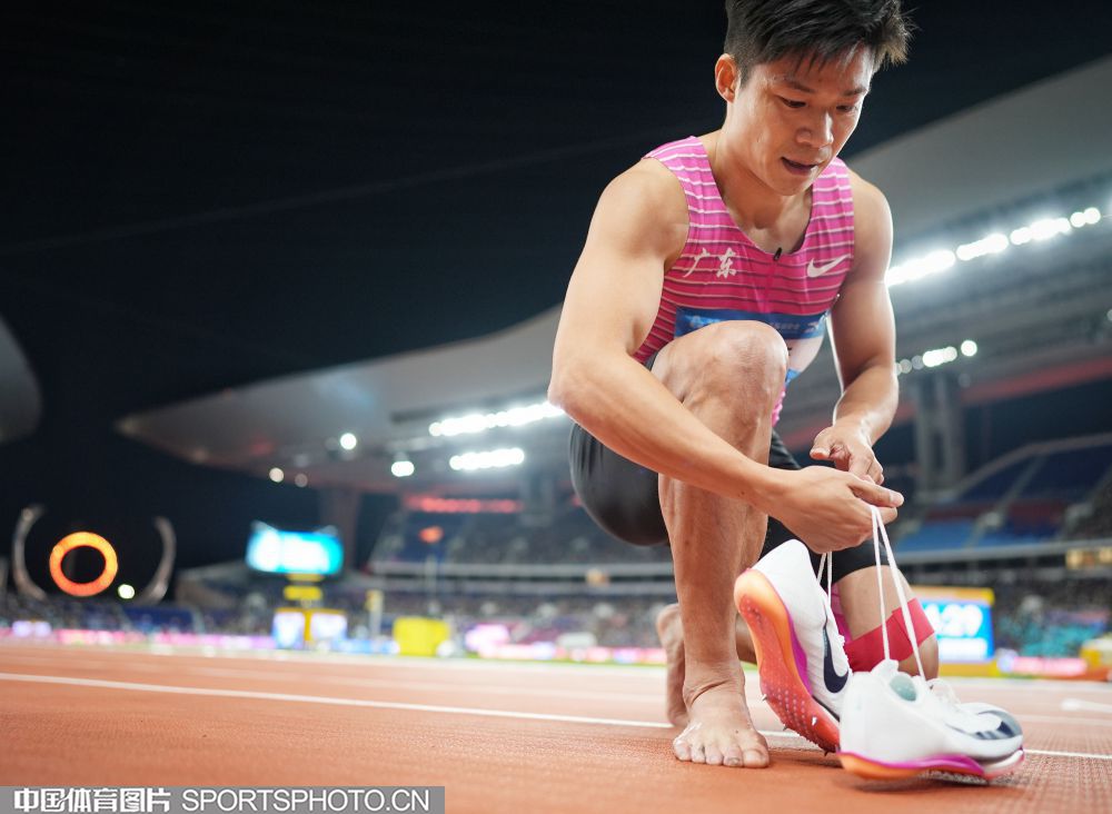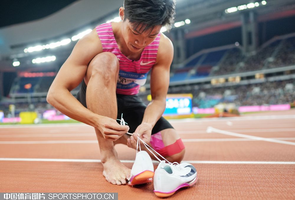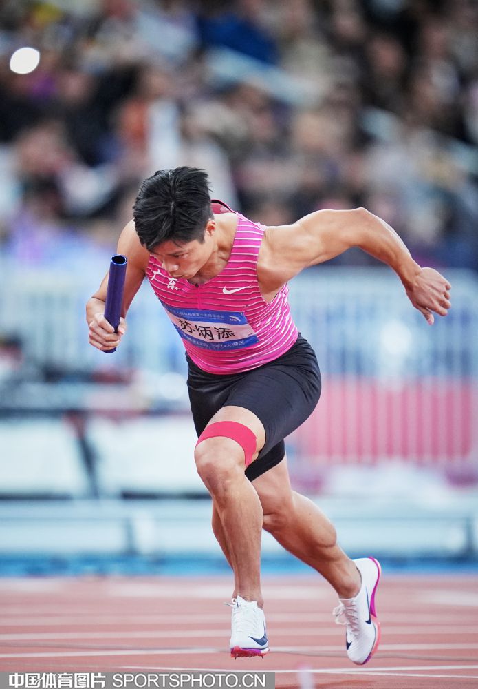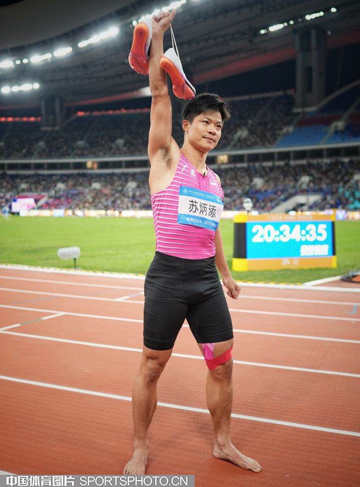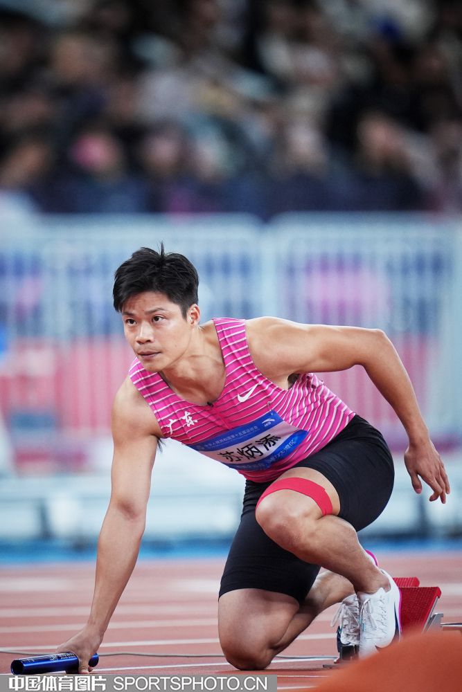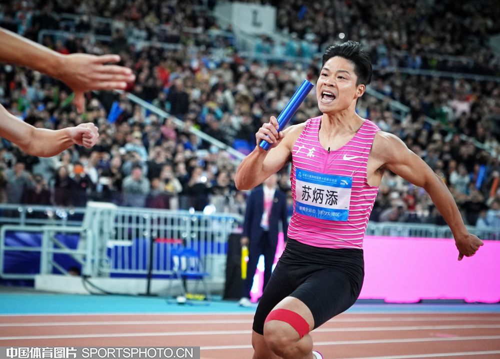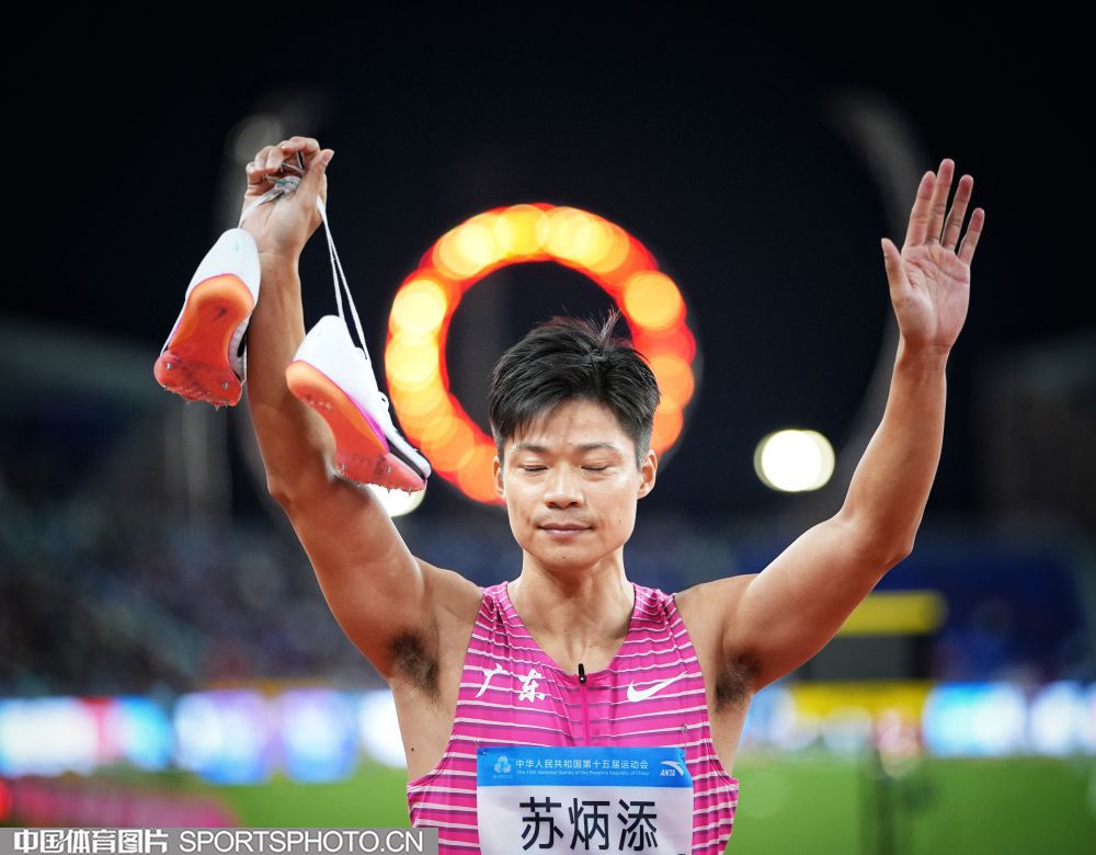 2025年11月20日,第十五届全国运动会田径男子4x100米接力决赛在广东省奥体中心体育场举行,湖北队、江西队和江苏队获得前三名,广东队获得第四名。图为苏炳添向观众致意。(中国体育图片 张昕 摄)