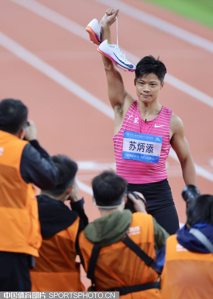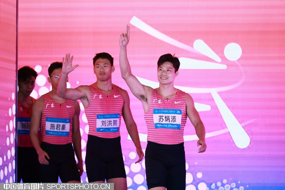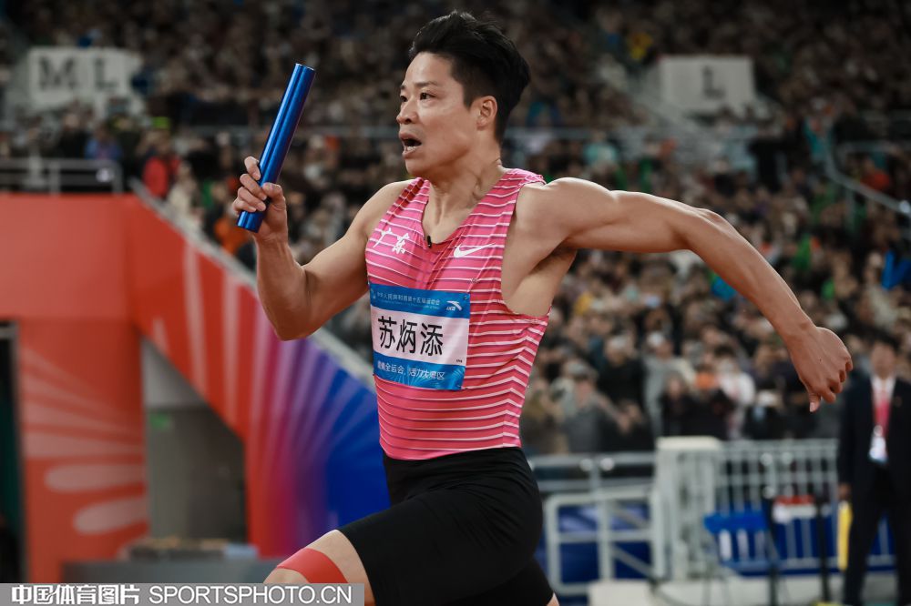 2025年11月20日,第十五届全国运动会田径男子4x100米接力决赛在广东省奥体中心体育场举行,湖北队、江西队和江苏队获得前三名,广东队获得第四名。图为苏炳添。(中国体育图片 魏征 摄)