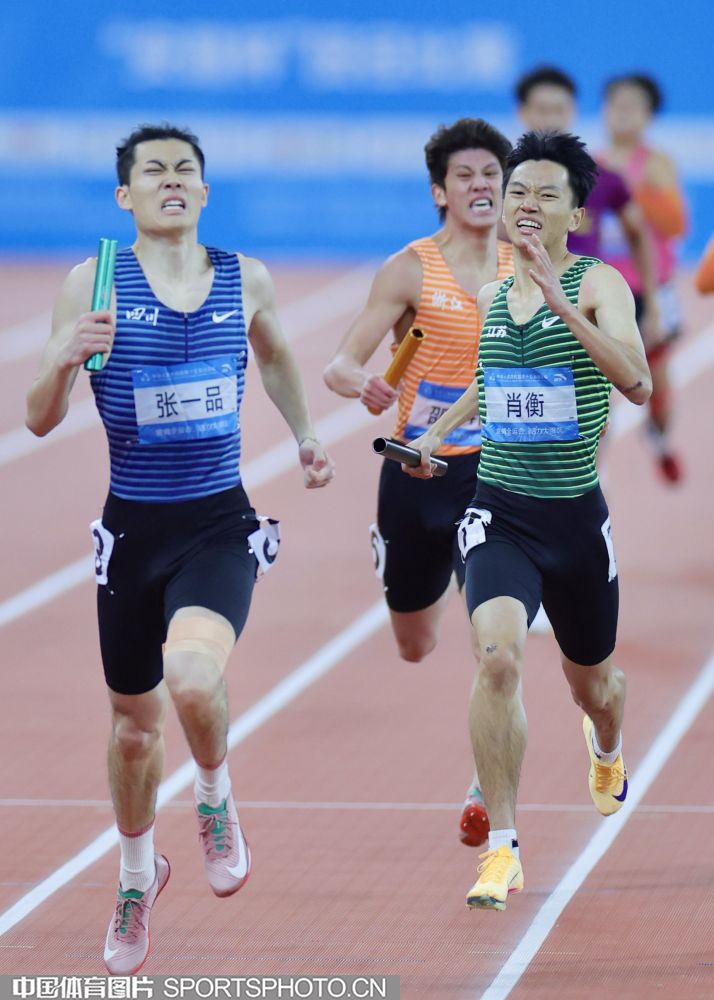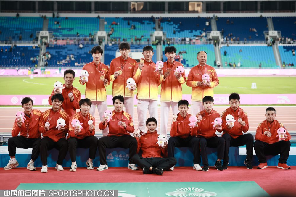 图组名称:十五运会田径男子4x100米接力决赛 广东队获得第四名