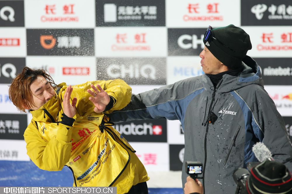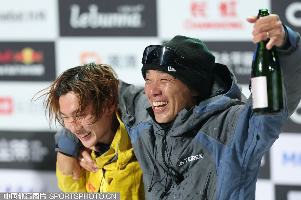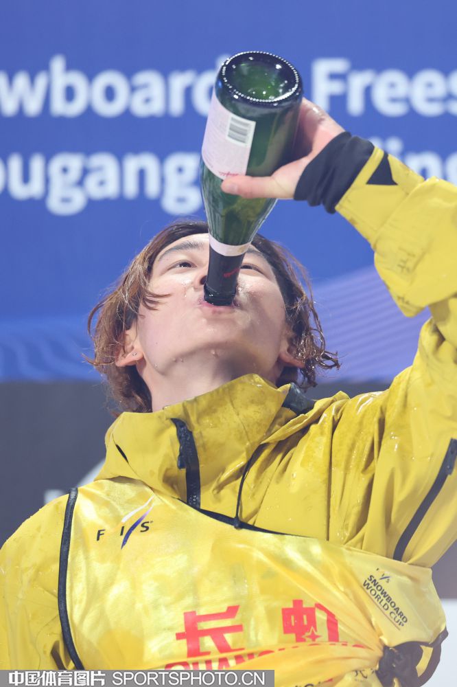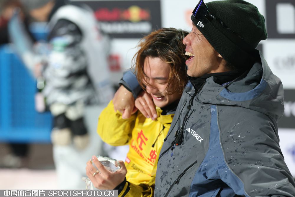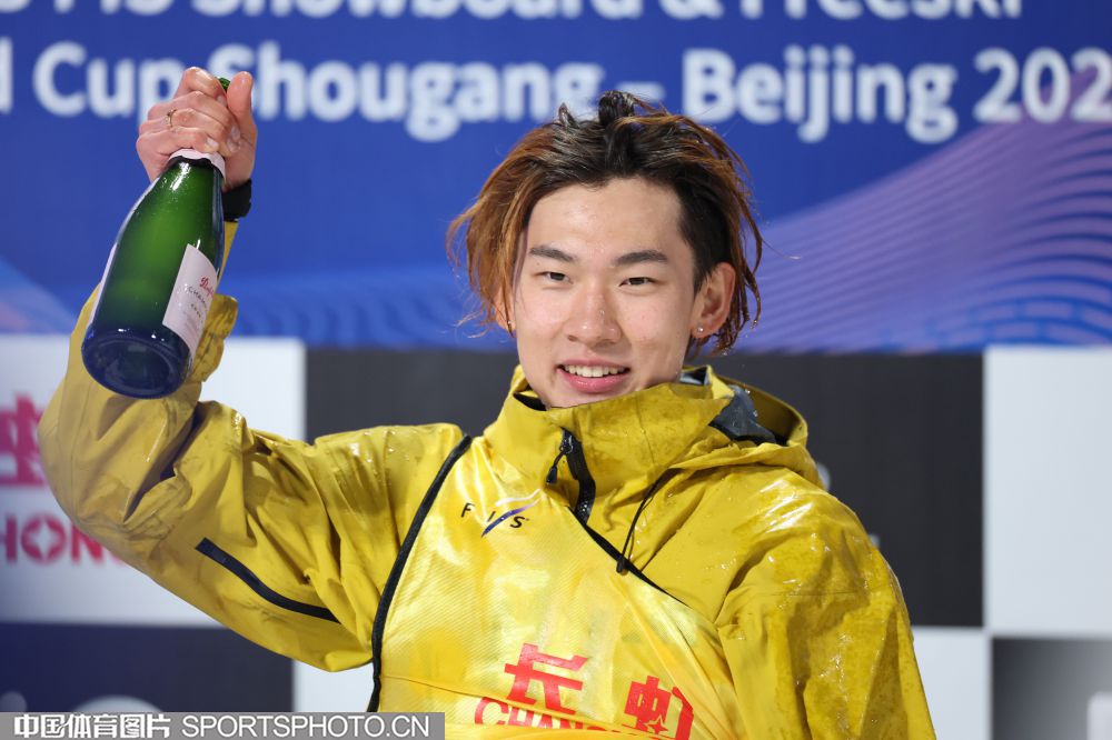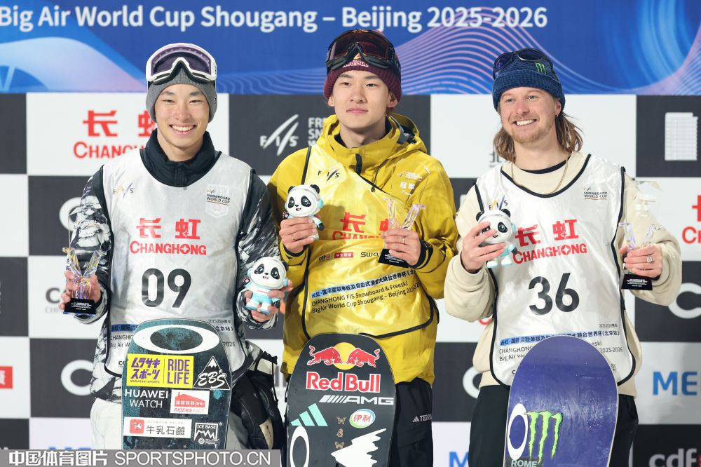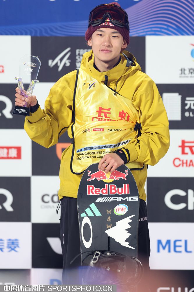 图组名称:国际雪联单板滑雪大跳台世界杯男子组决赛 苏翊鸣获得金牌
