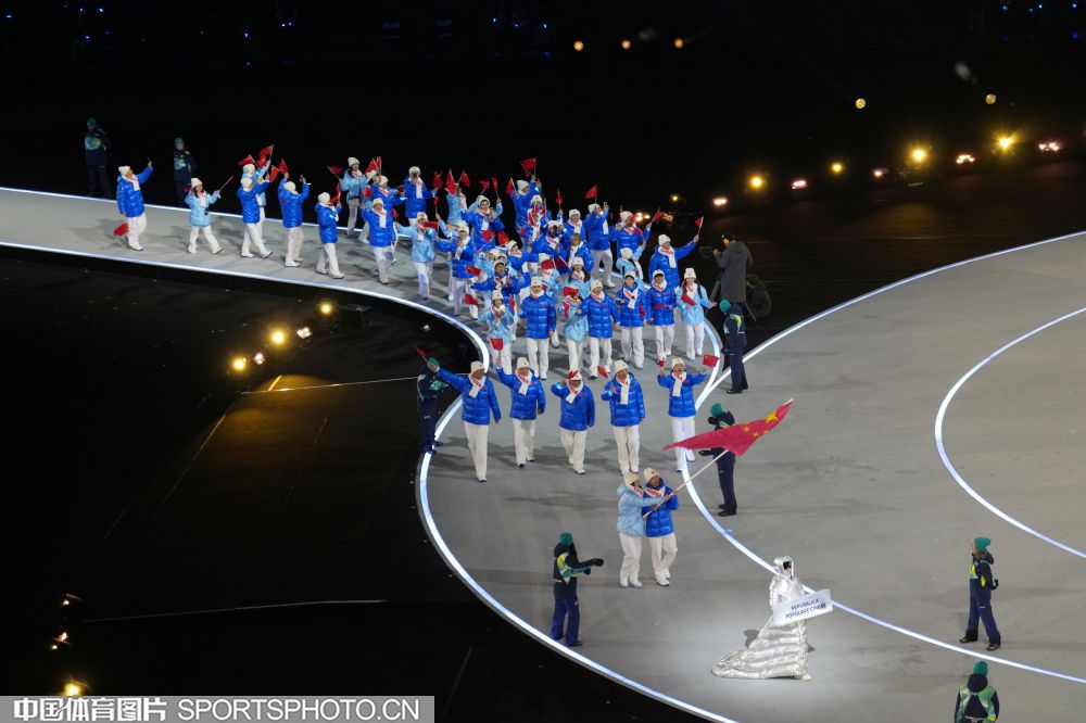 图组名称:第25届冬季奥运会开幕 中国体育代表团入场