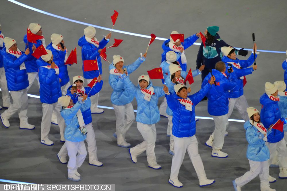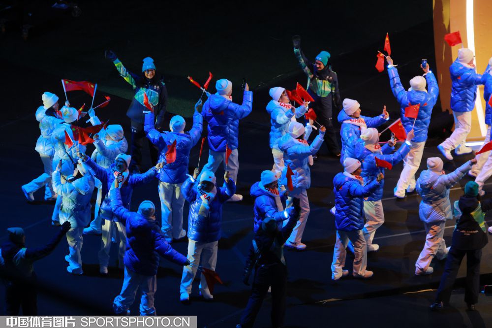 图组名称:第25届冬季奥运会开幕 中国体育代表团入场