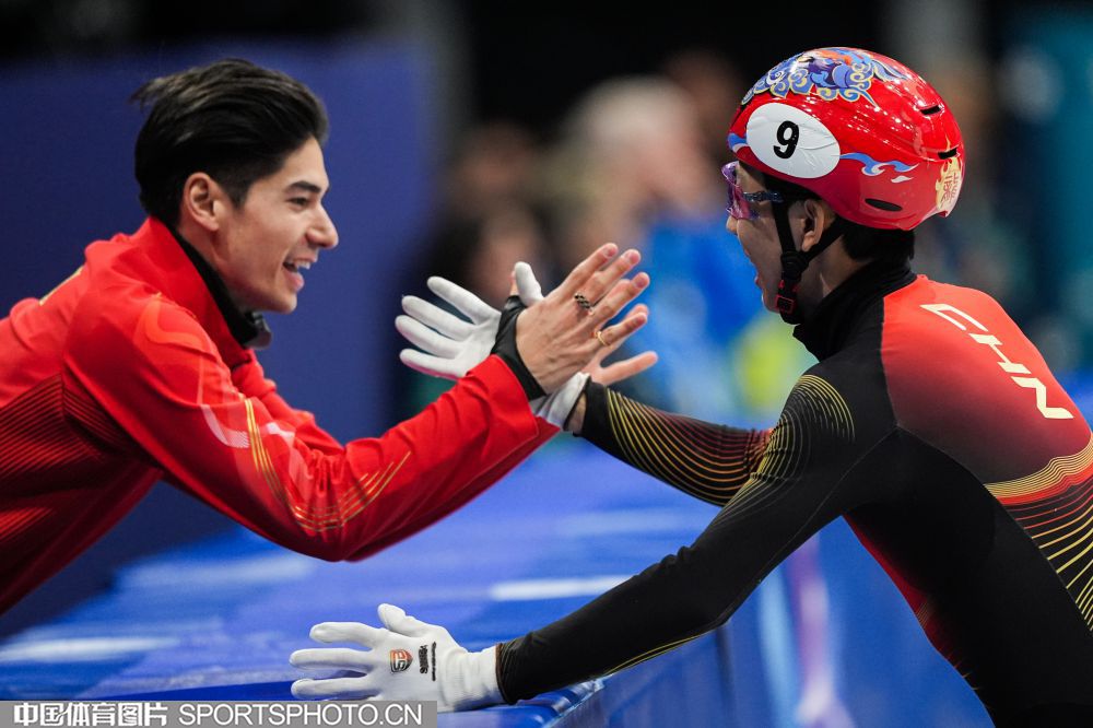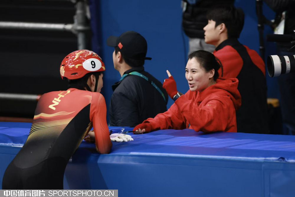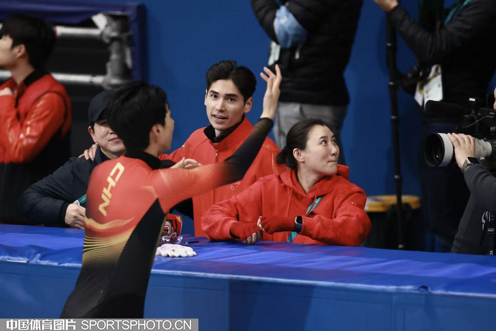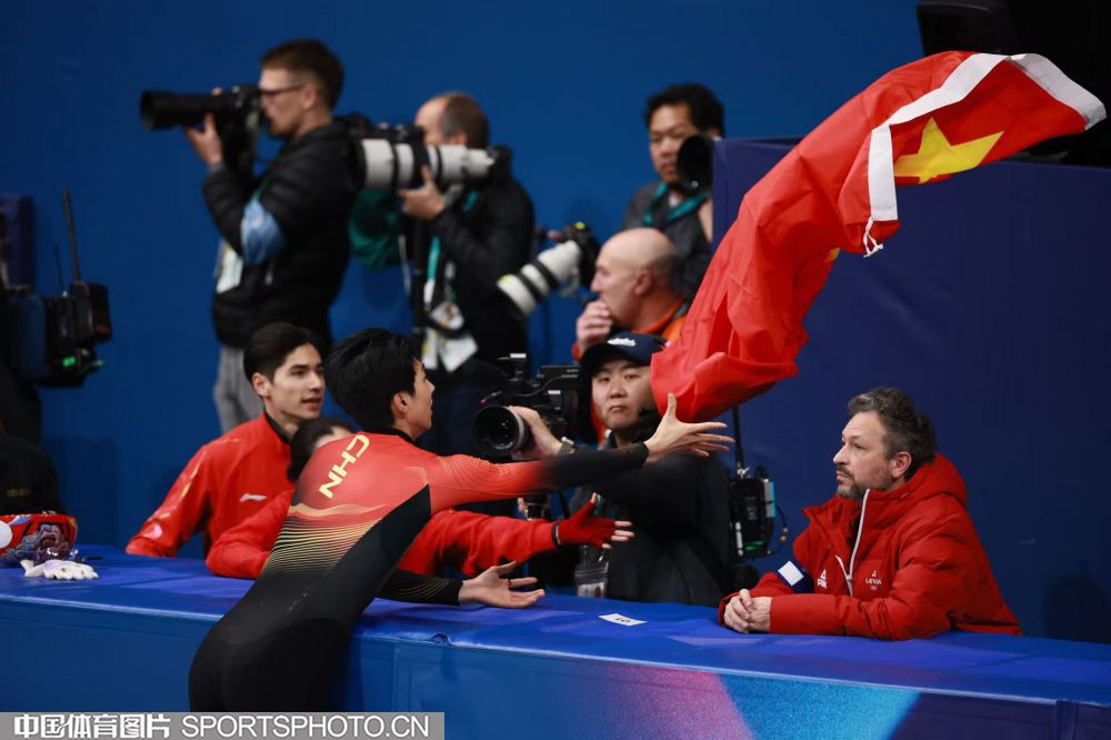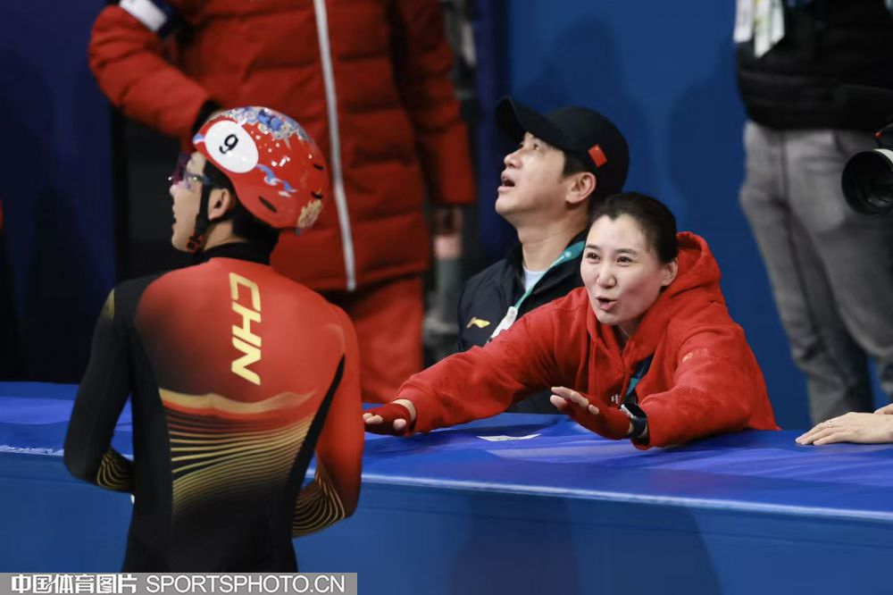 当地时间2月12日,米兰冬奥会短道速滑男子1000米决赛在米兰速度滑冰馆进行。中国选手孙龙以1分24秒565的成绩,获得银牌。图为孙龙和教练张晶。(中国体育图片 鹿麟 摄)