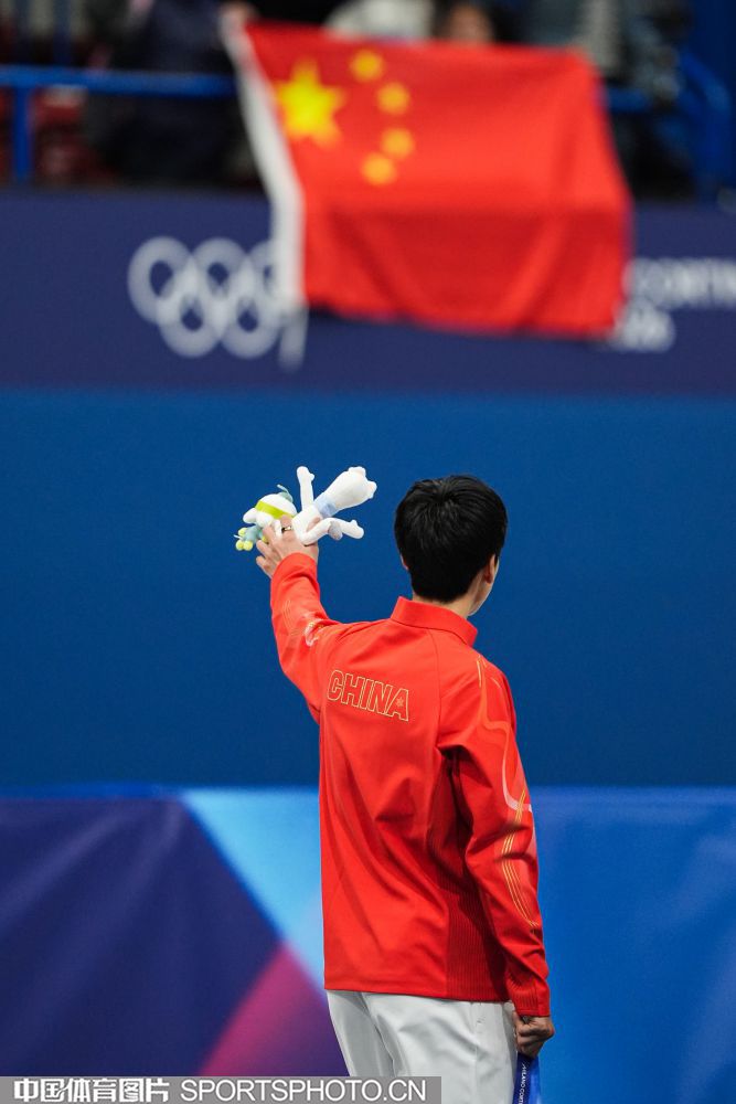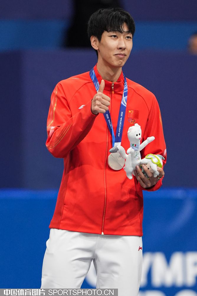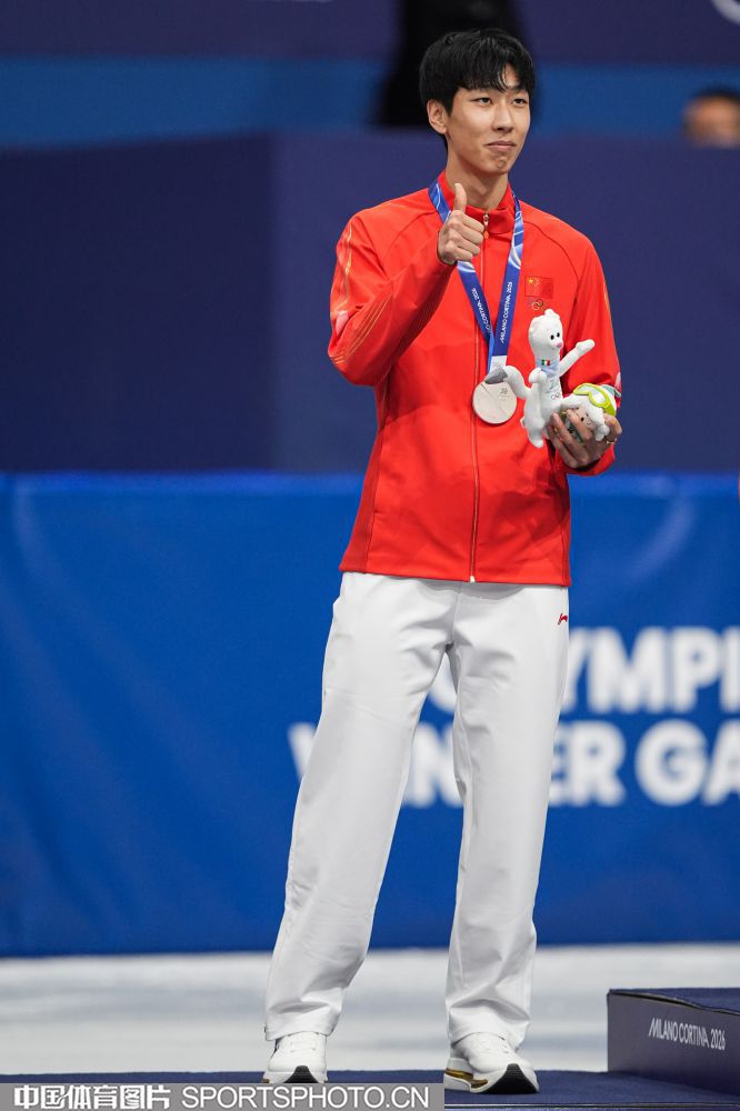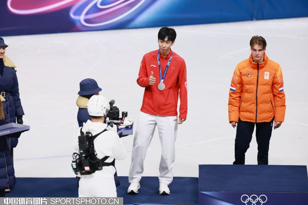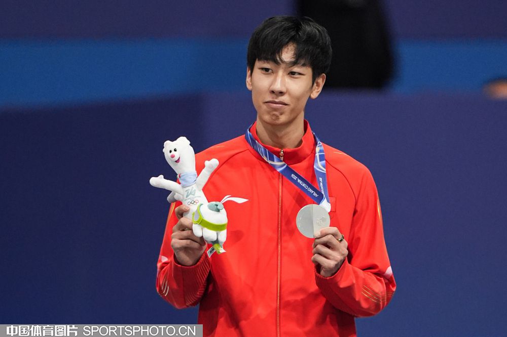 当地时间2月12日,米兰冬奥会短道速滑男子1000米决赛在米兰速度滑冰馆进行。中国选手孙龙以1分24秒565的成绩,获得银牌。图为孙龙在颁奖仪式上。(中国体育图片 倪敏哲 摄)