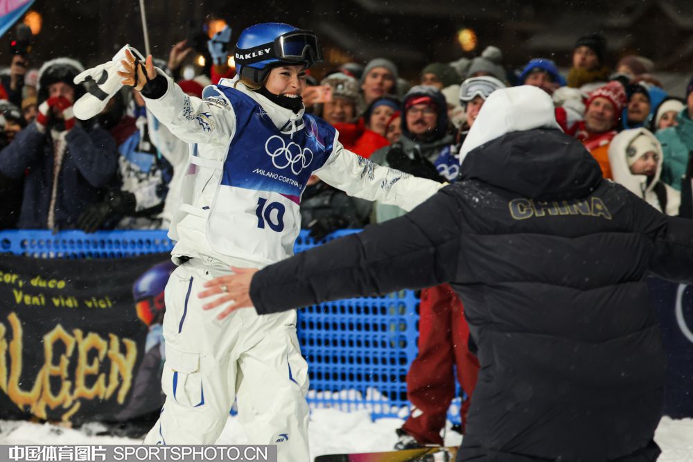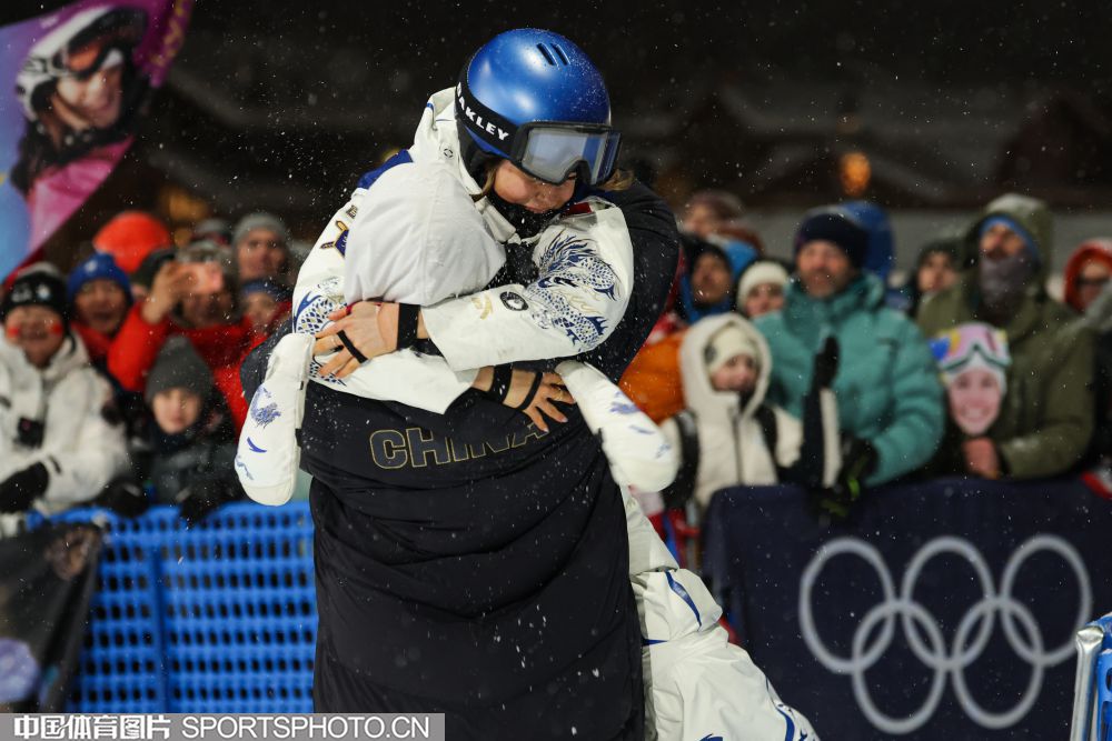 米兰当地时间2026年2月16日,米兰冬奥会自由式滑雪女子大跳台决赛中,中国选手谷爱凌以179.00分排名第二,获得银牌,队友刘梦婷以166.00分获得第七名。图为谷爱凌赛后(左)与母亲拥抱。(中国体育图片 安灵均 摄)