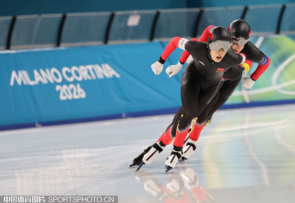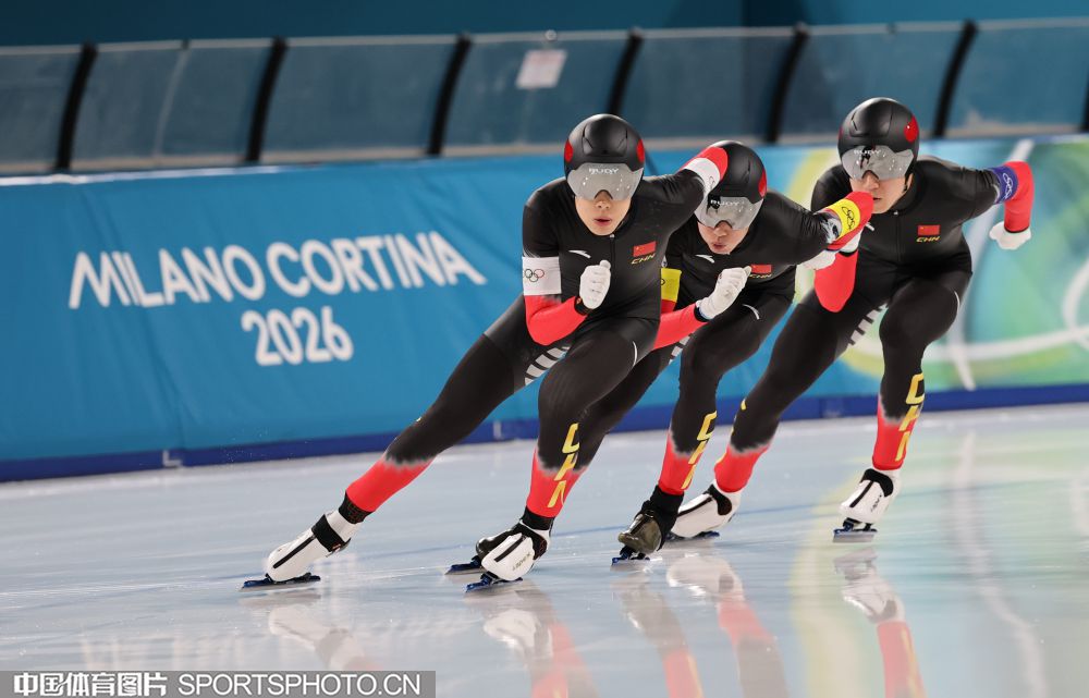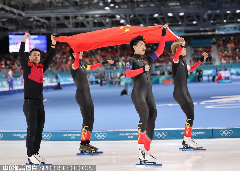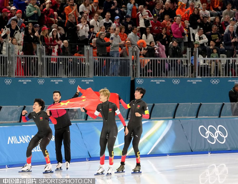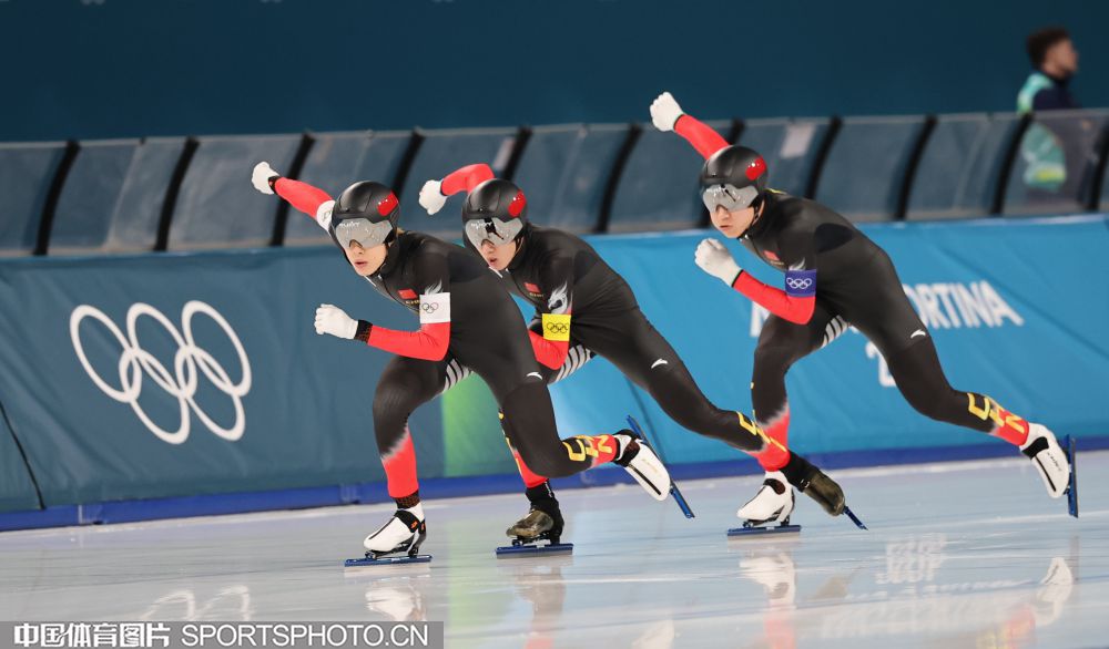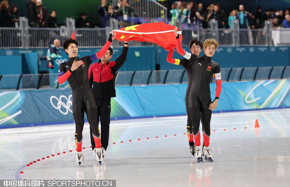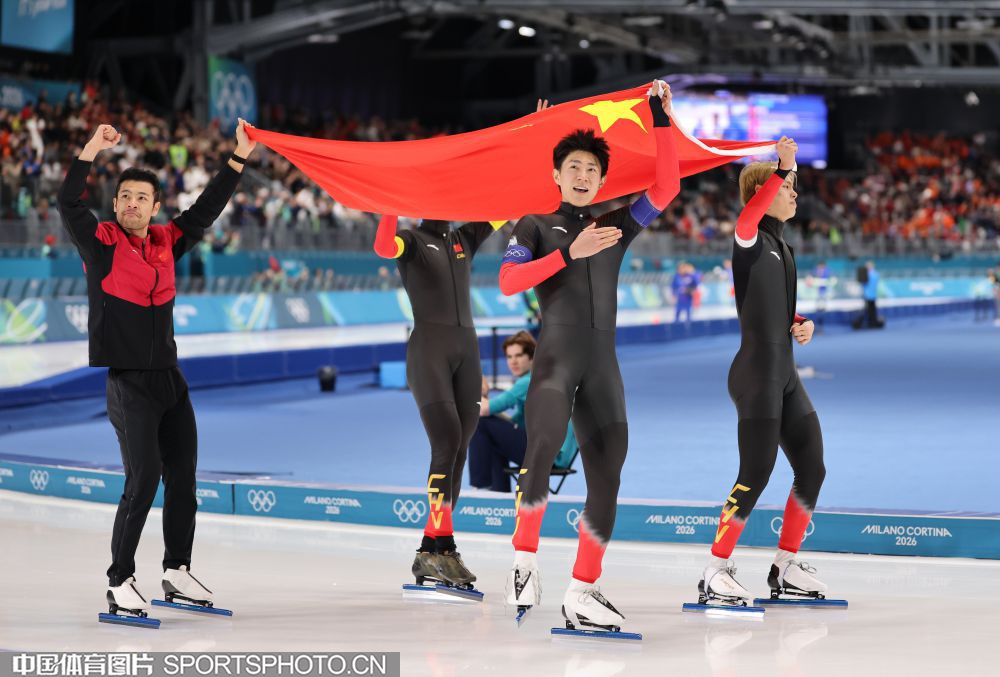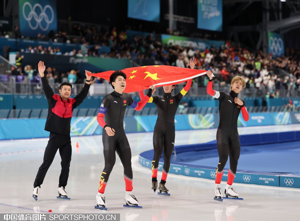 图组名称:米兰冬奥会速度滑冰男子团体追逐B组决赛 中国队获得铜牌