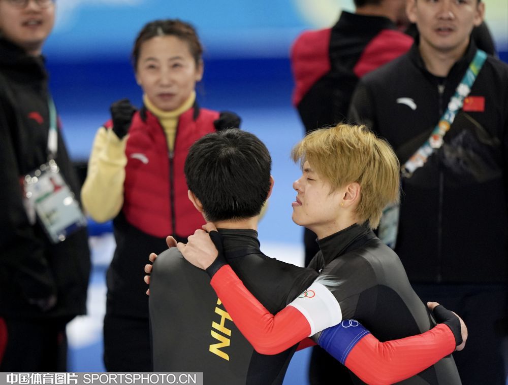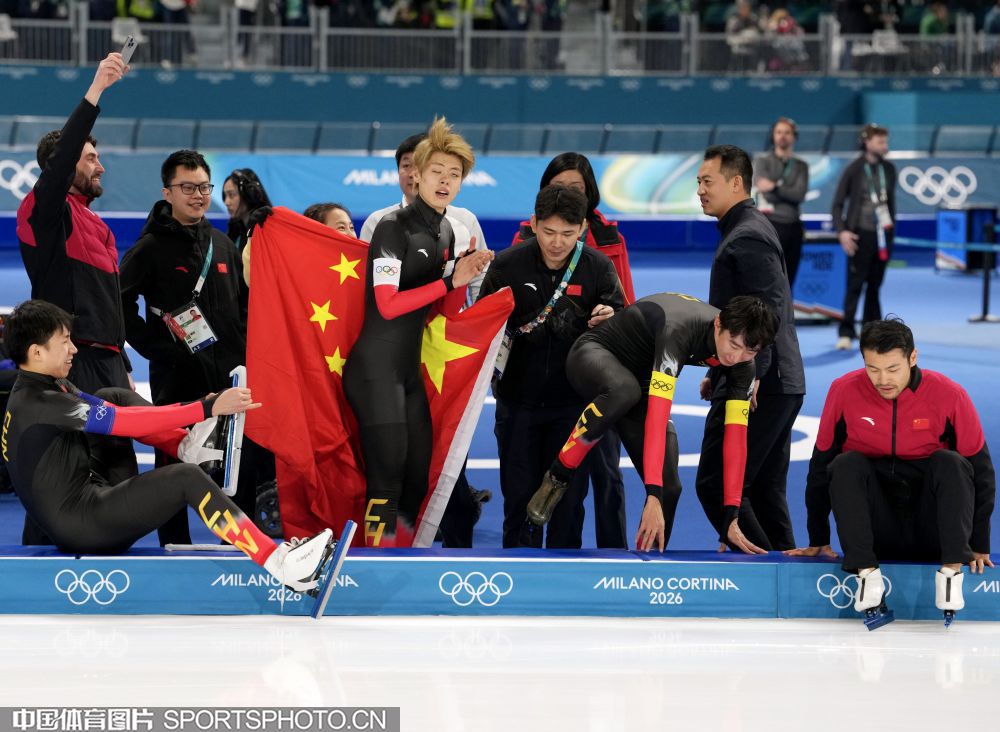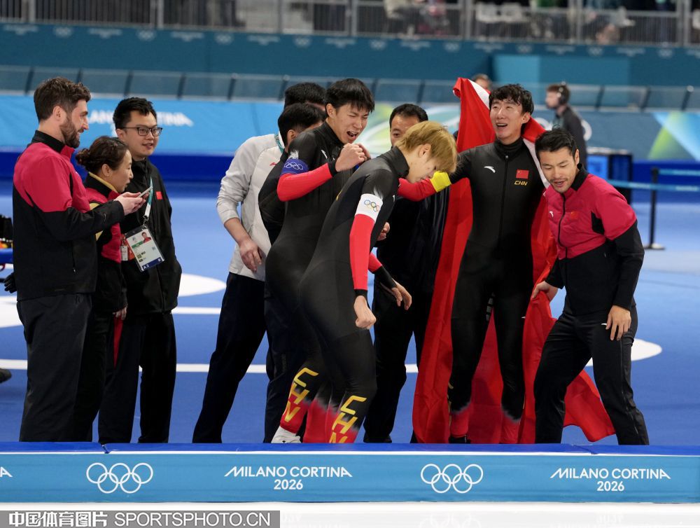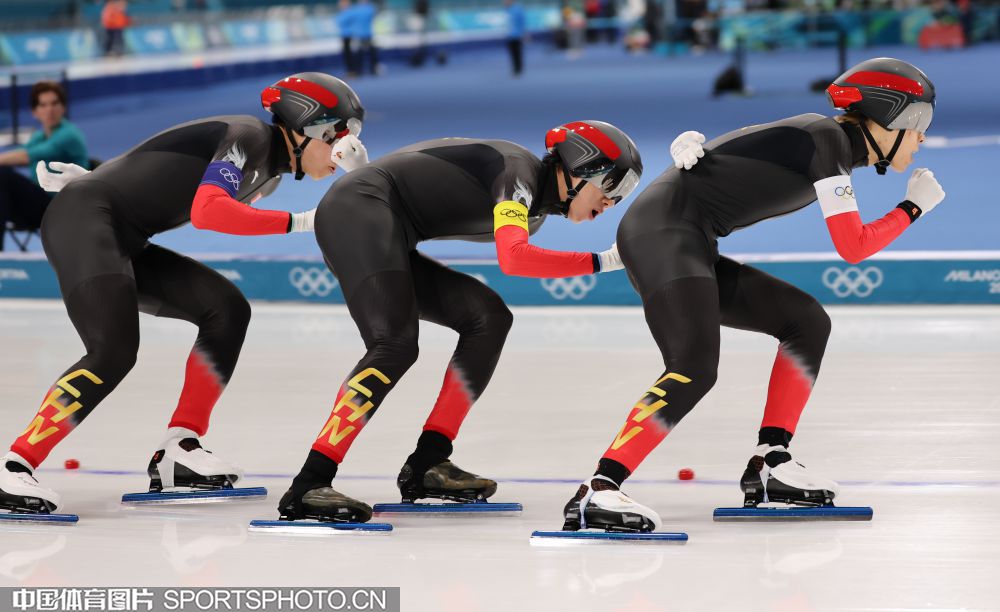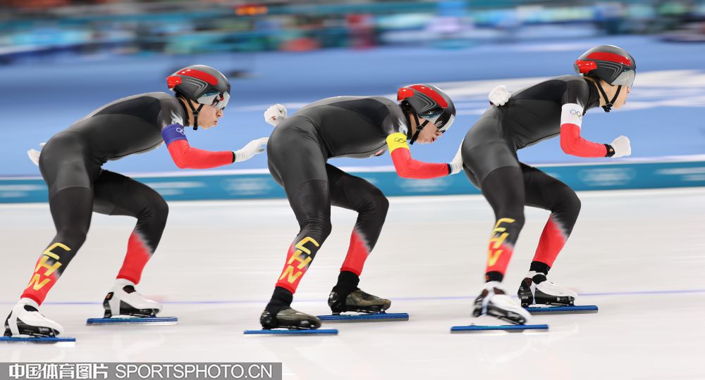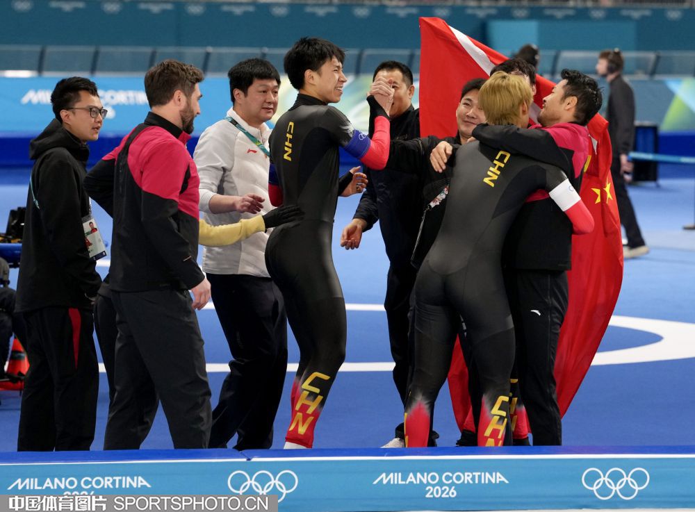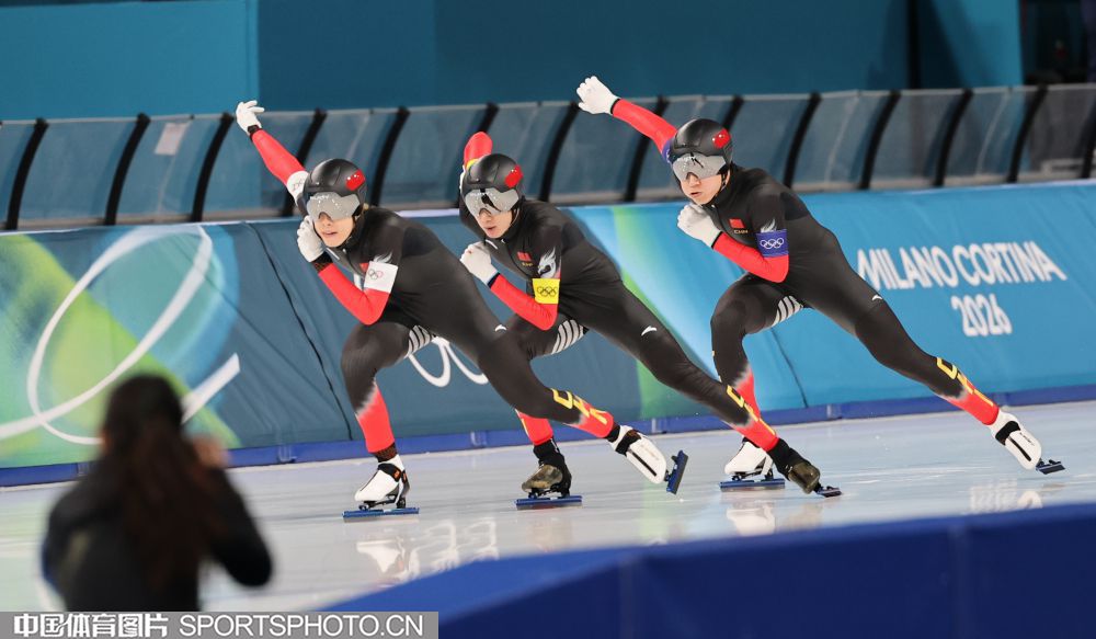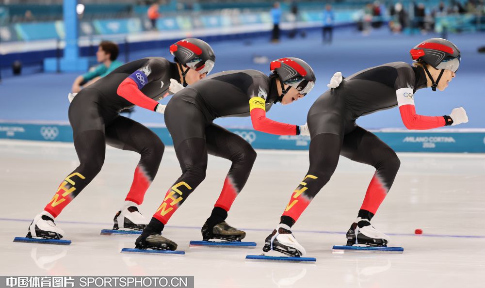 图组名称:米兰冬奥会速度滑冰男子团体追逐B组决赛 中国队获得铜牌