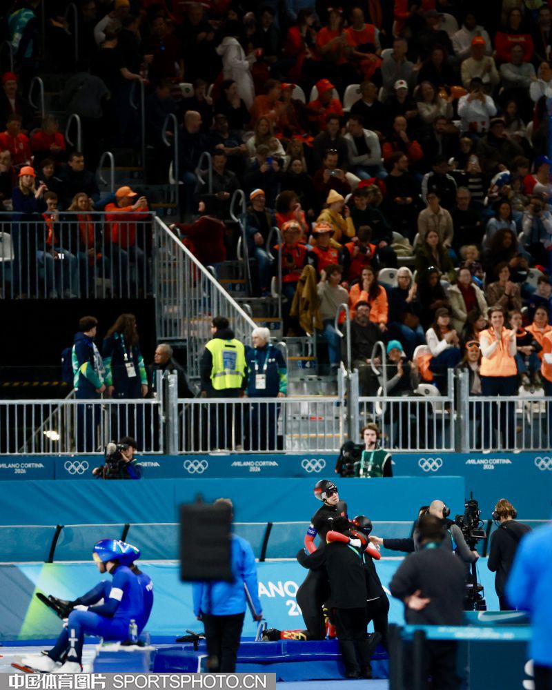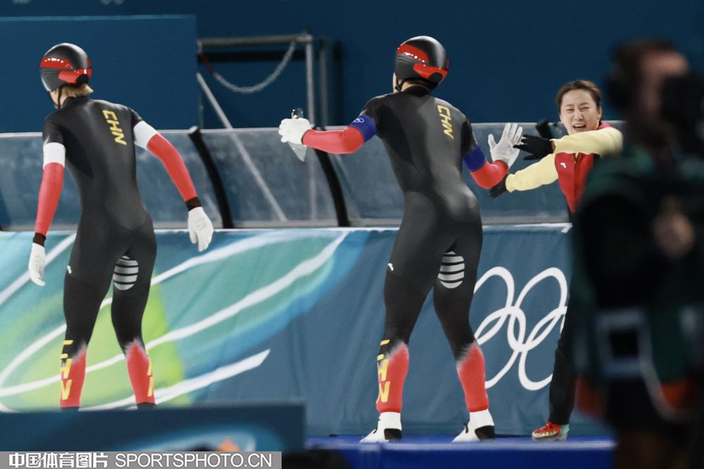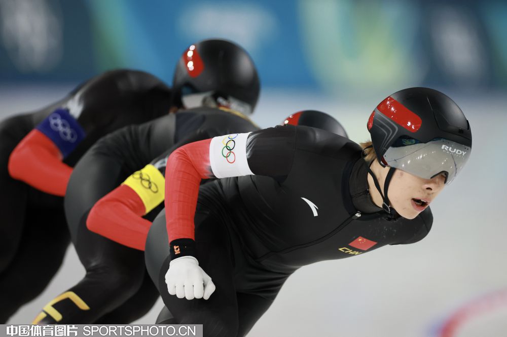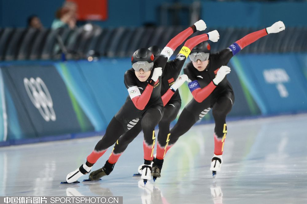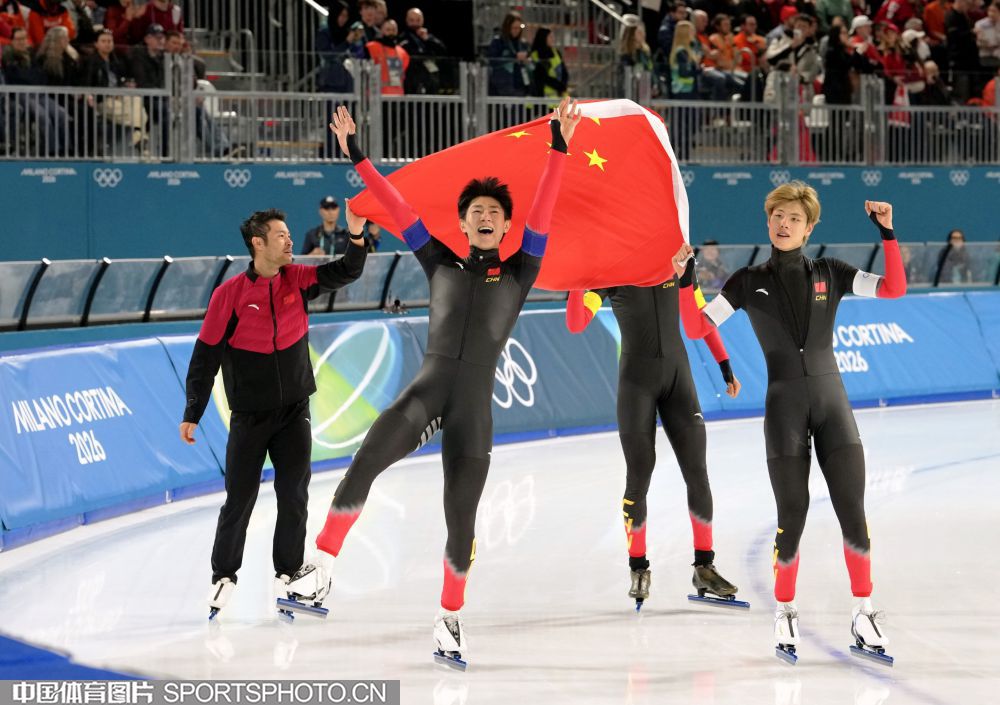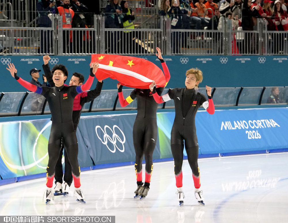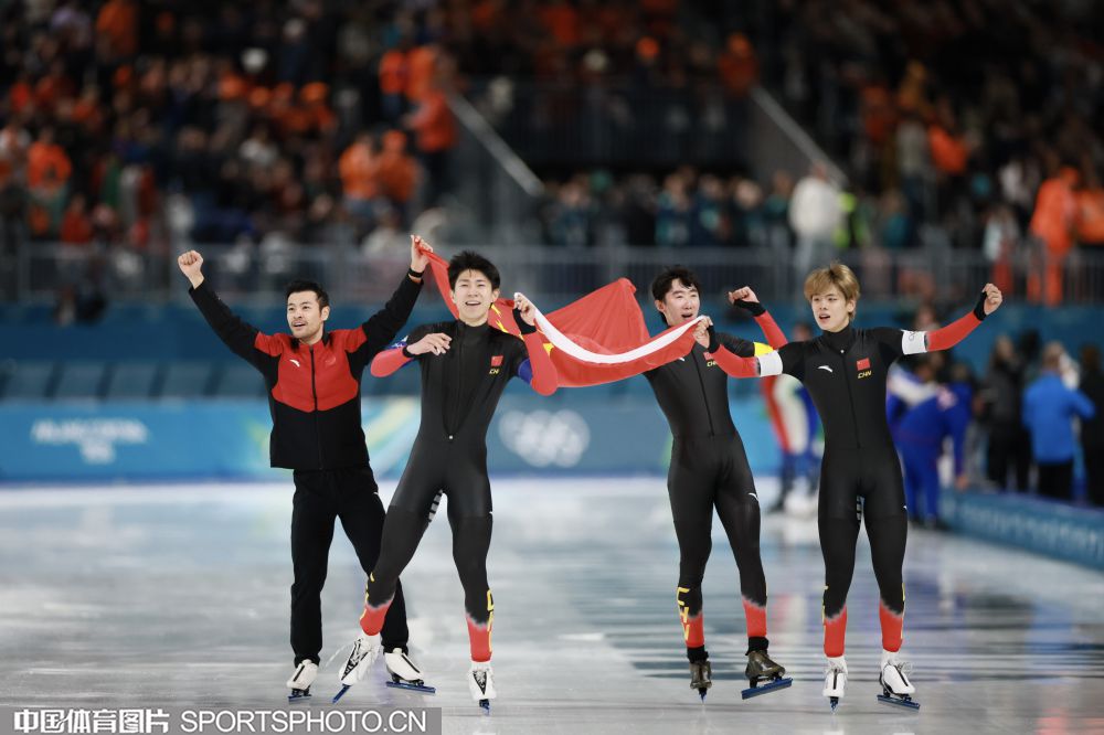 图组名称:米兰冬奥会速度滑冰男子团体追逐B组决赛 中国队获得铜牌