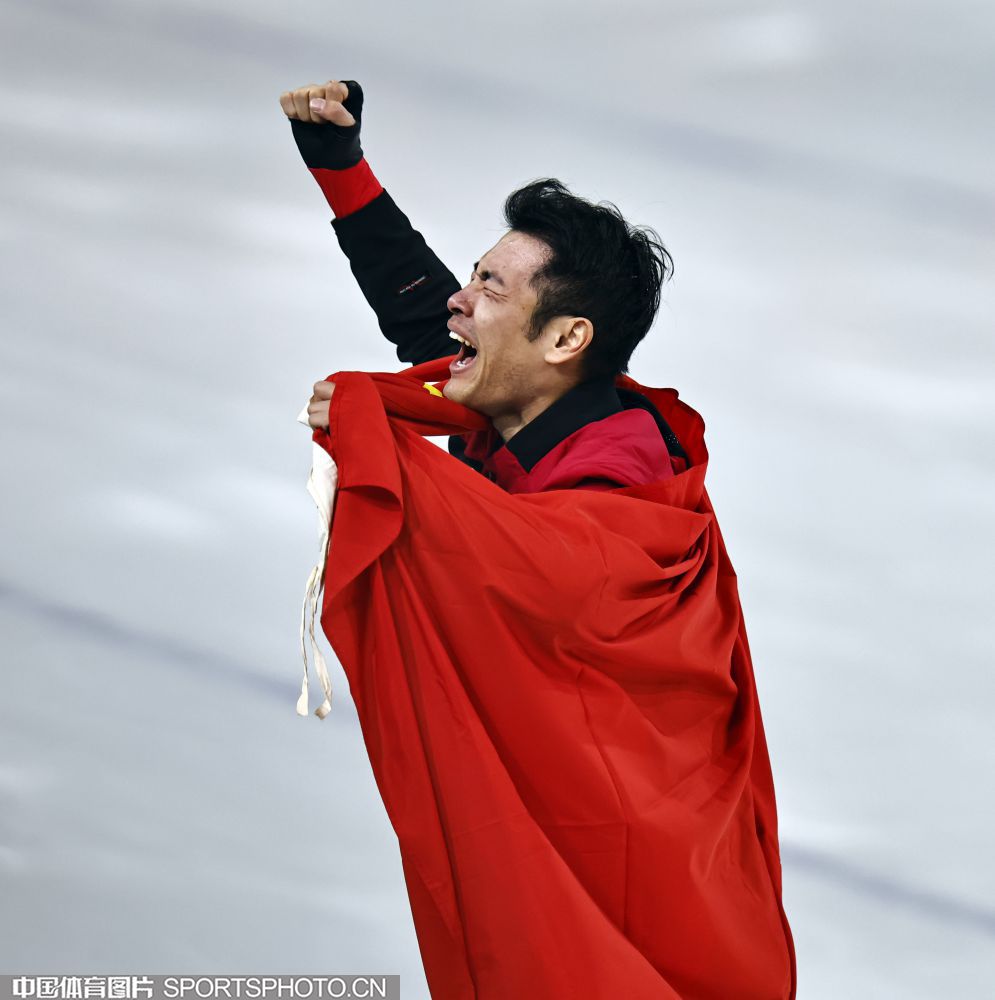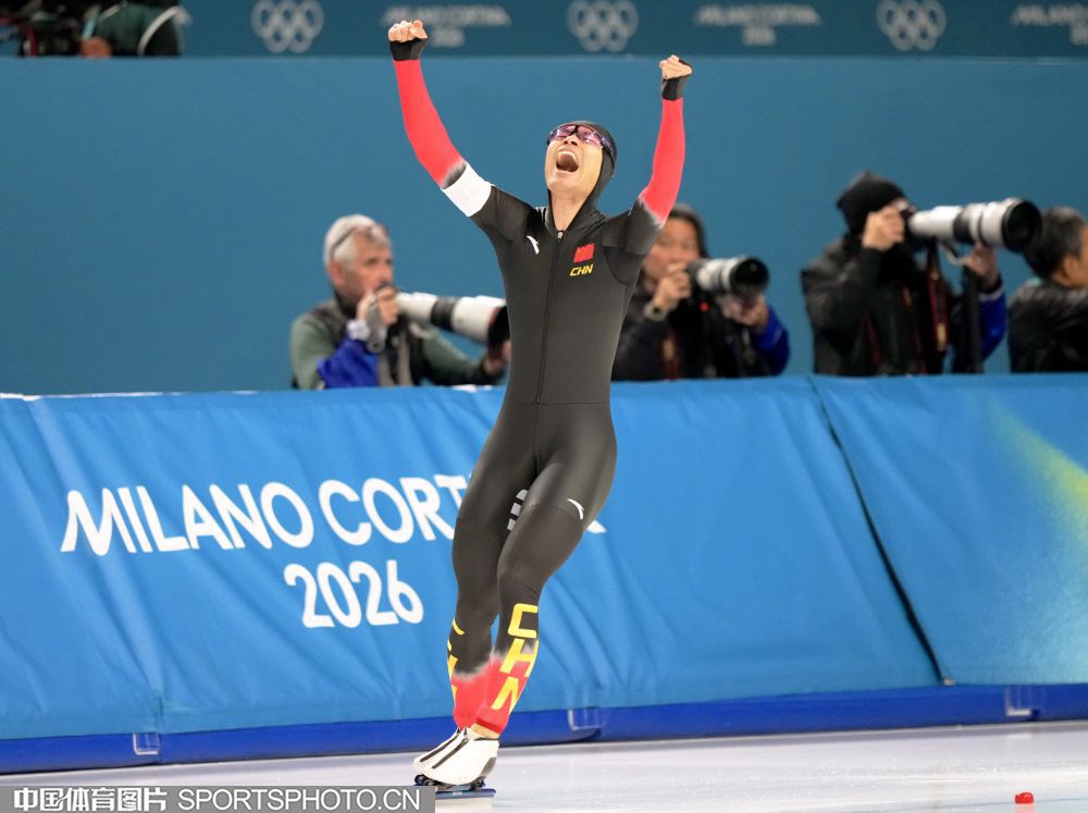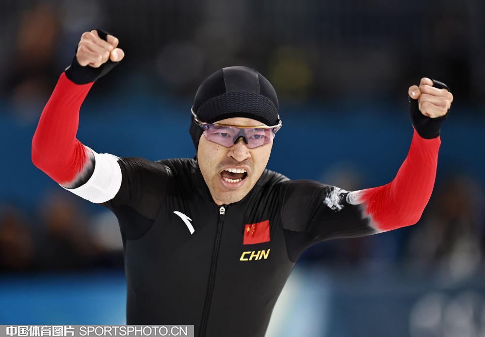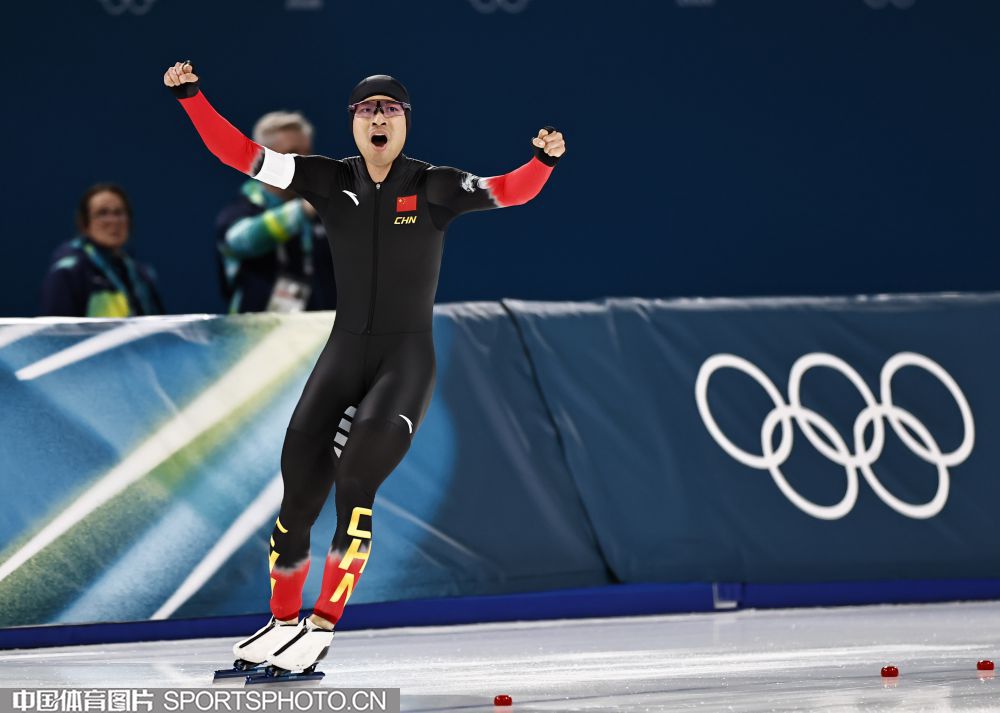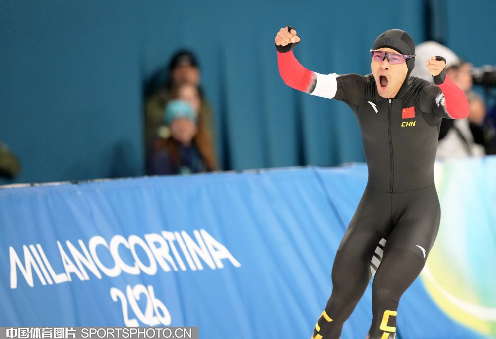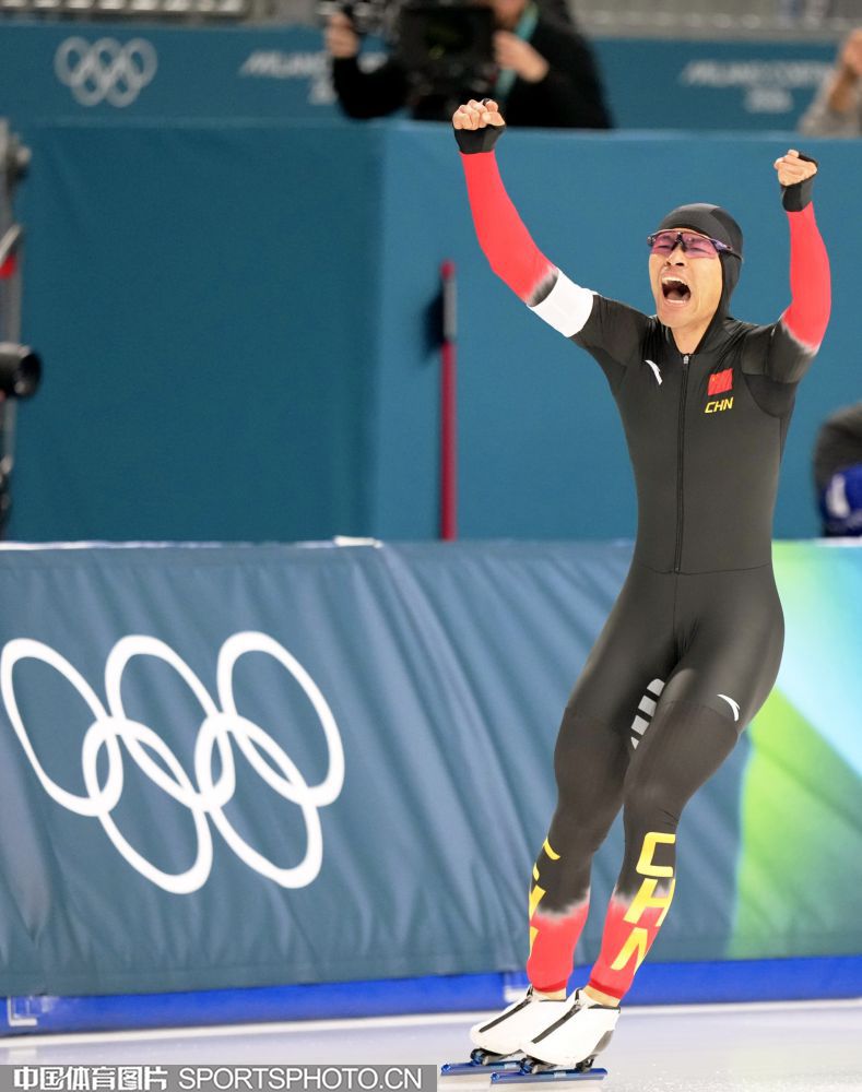 图组名称:米兰冬奥会速度滑冰男子1500米决赛 宁忠岩破奥运纪录摘金