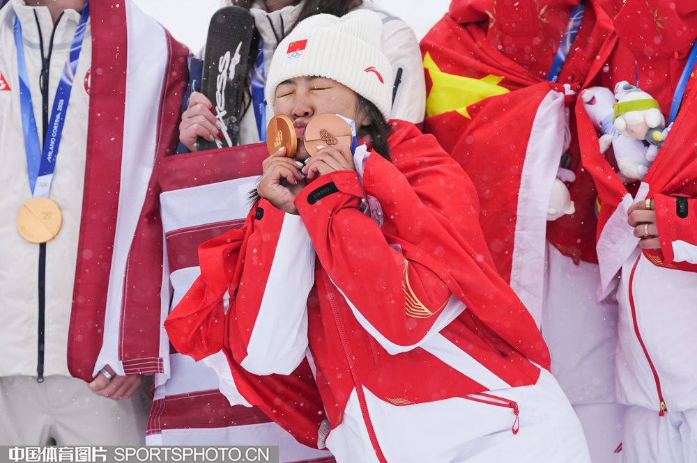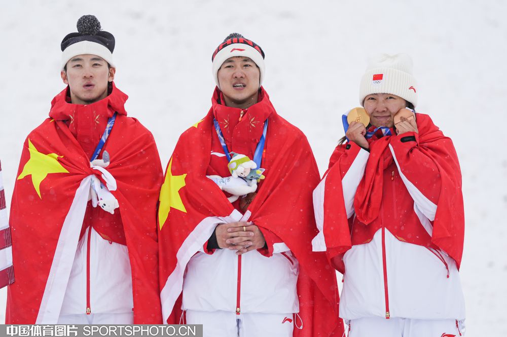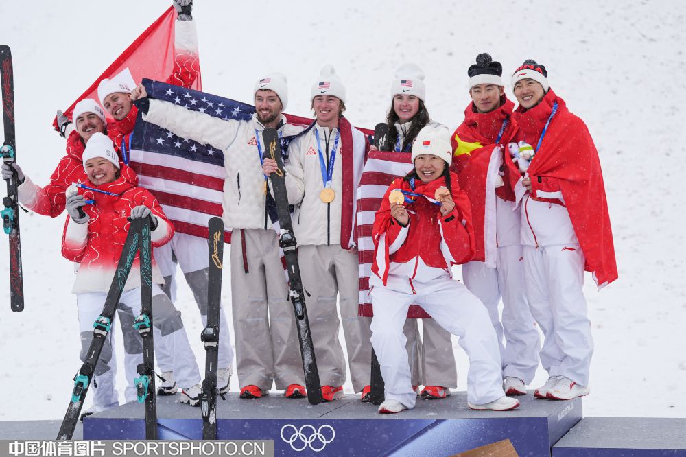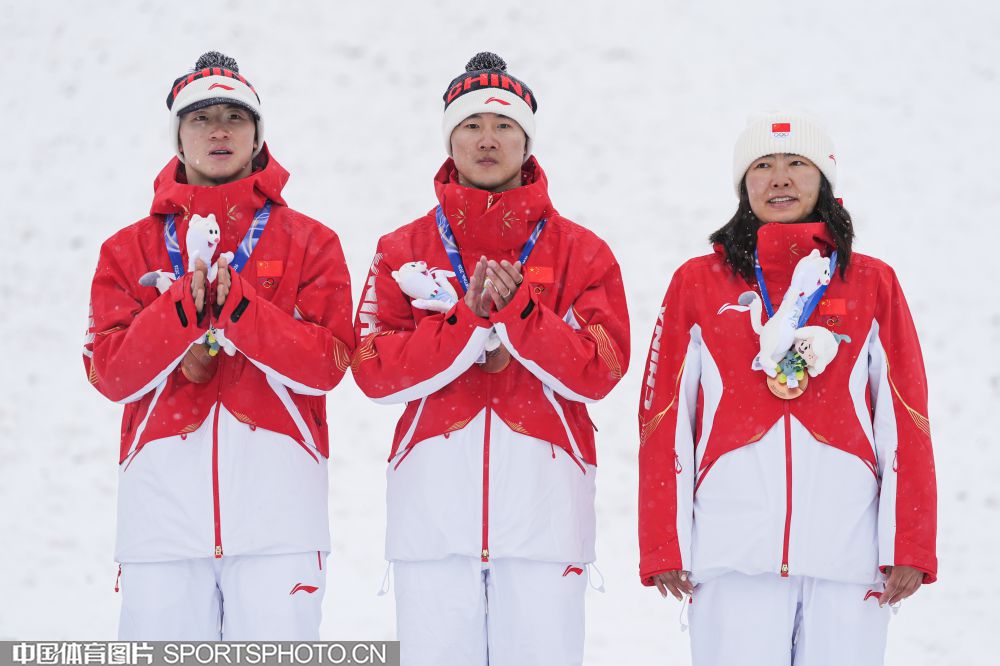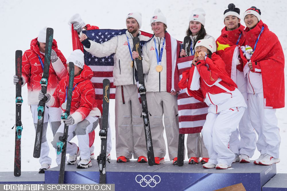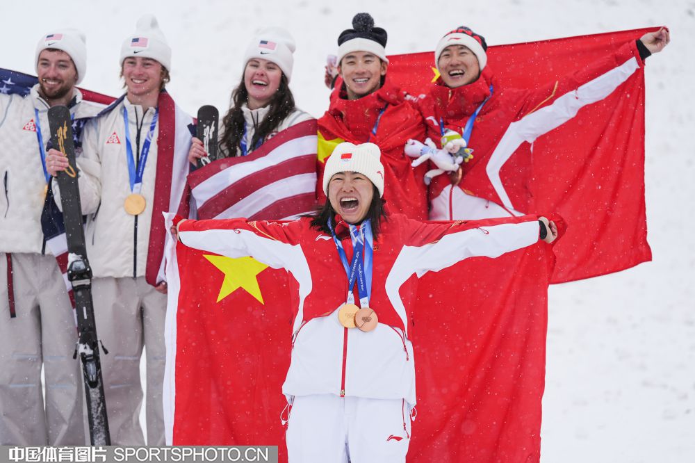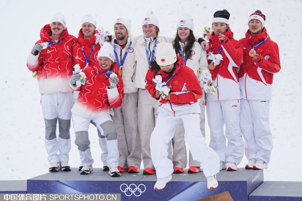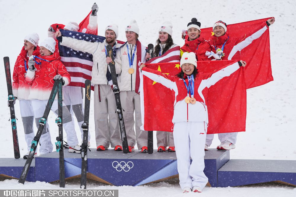 图组名称:米兰冬奥会自由式滑雪空中技巧混合团体决赛 中国队夺得铜牌