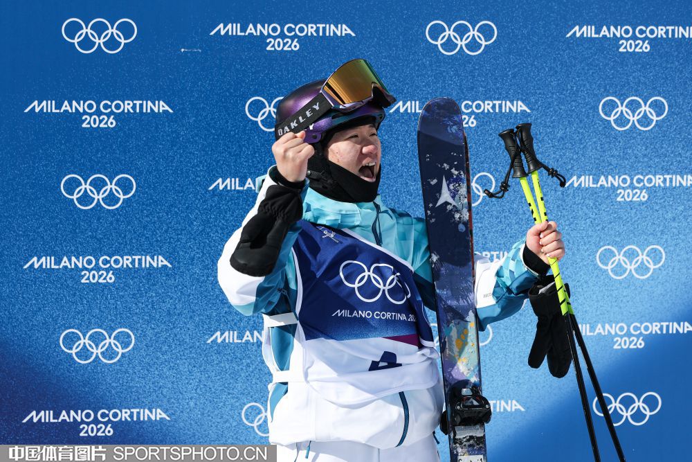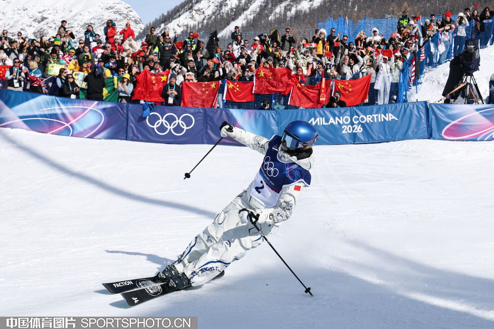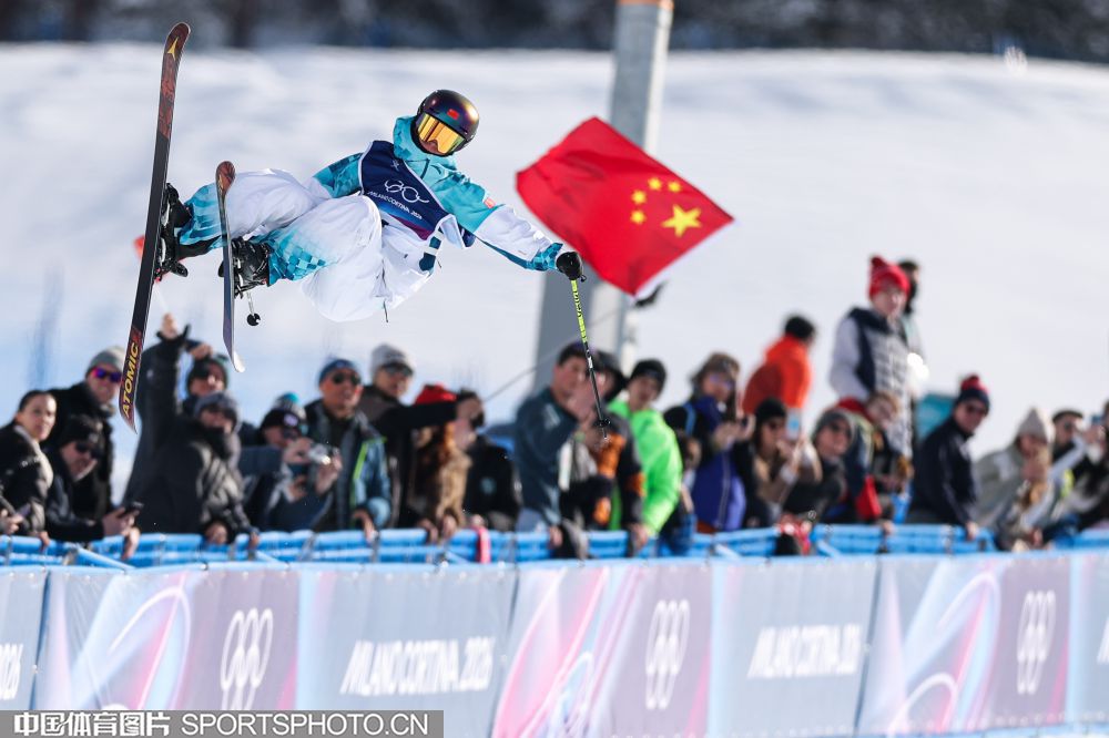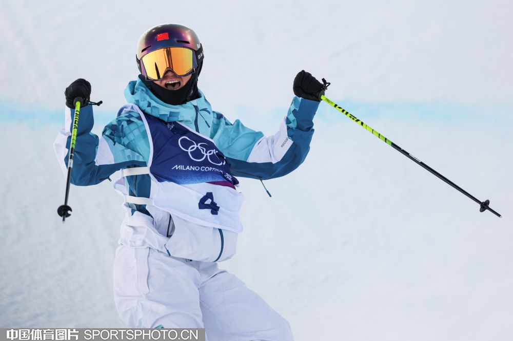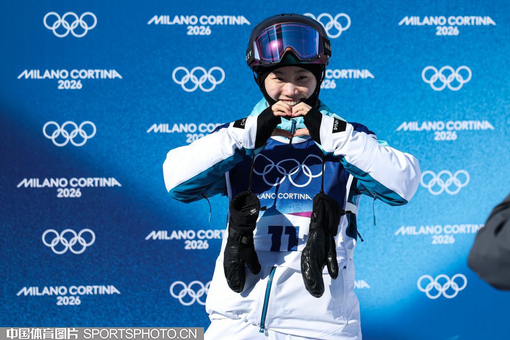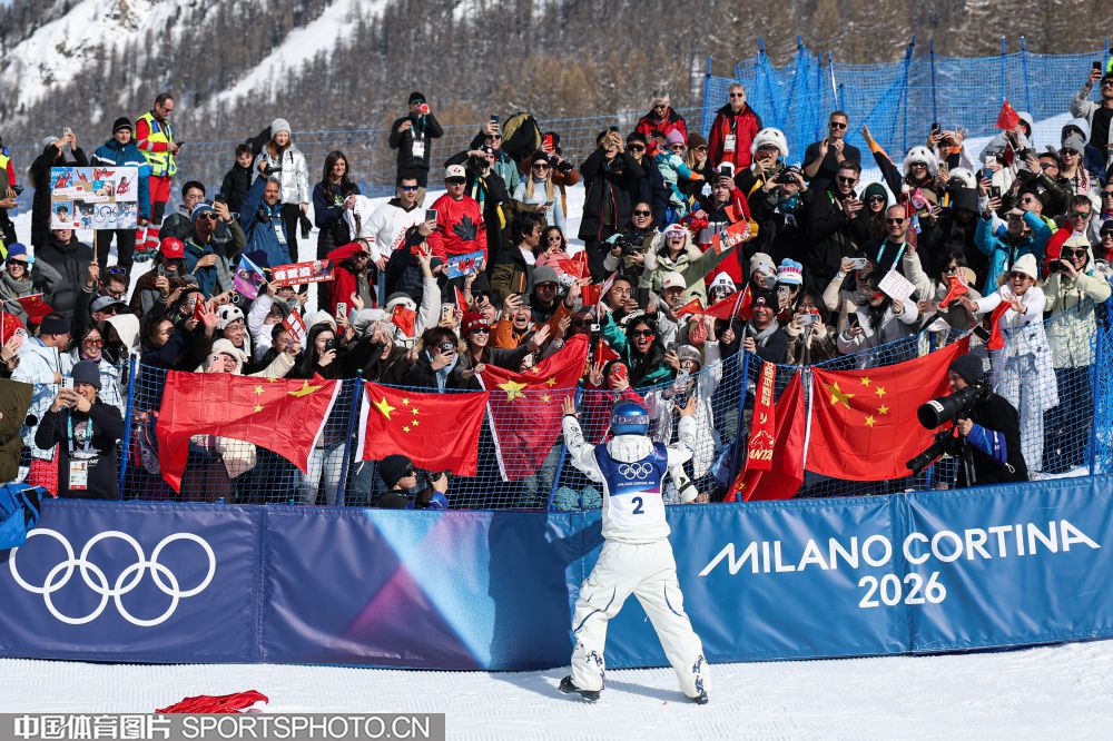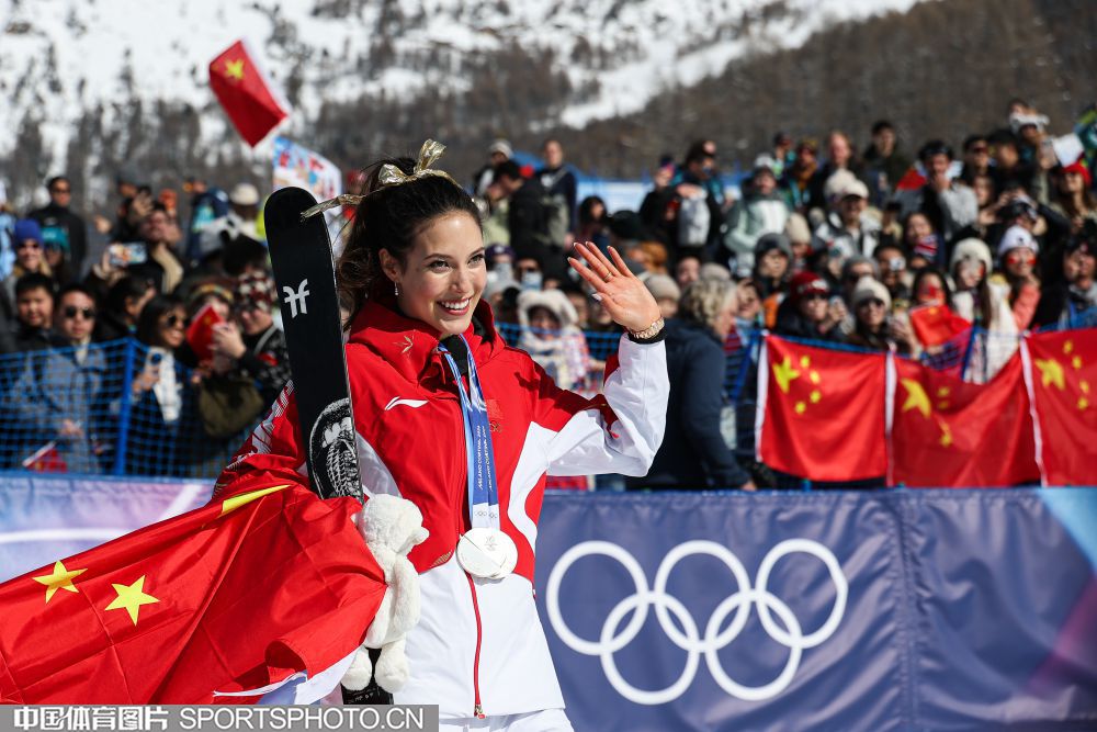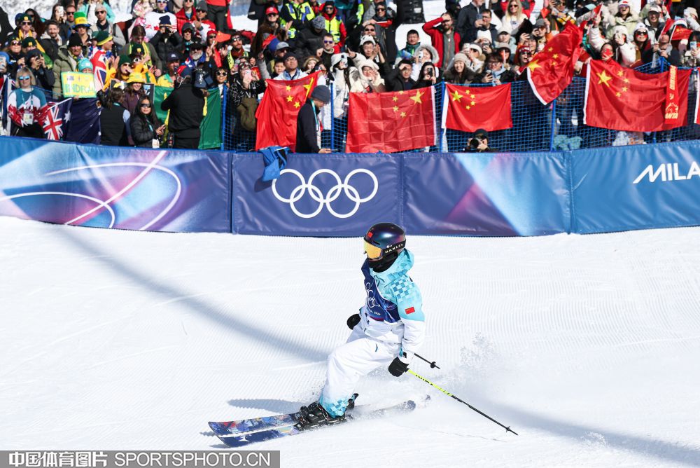 图组名称:米兰冬奥会自由式滑雪女子U型场地技巧决赛 谷爱凌李方慧包揽金银