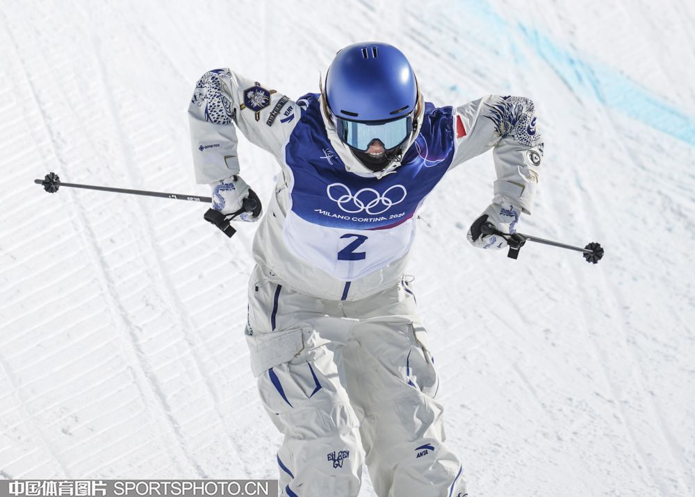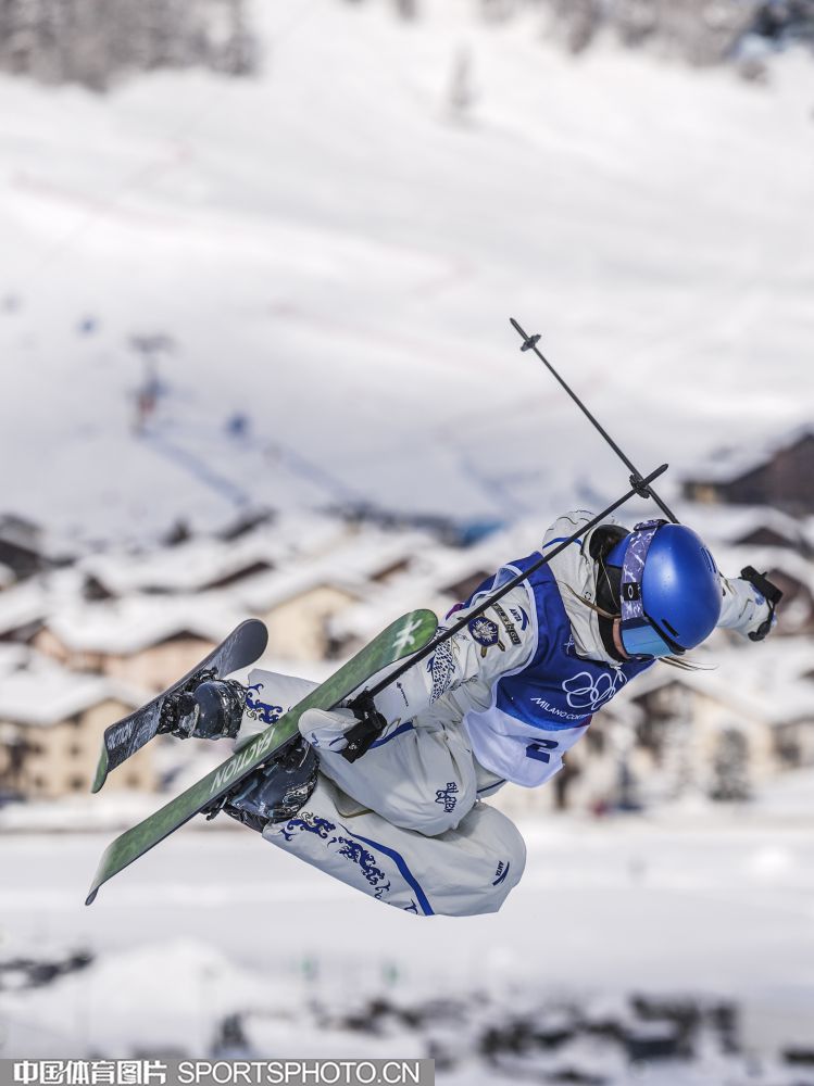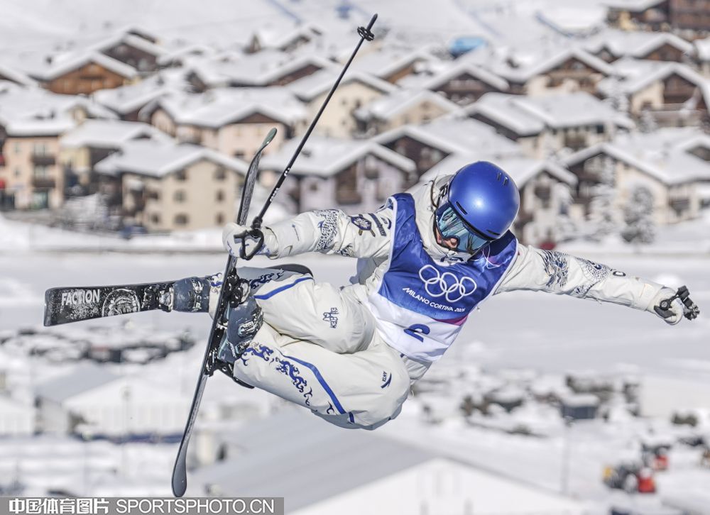 当地时间2月22日,米兰冬奥会自由式滑雪女子U型场地技巧决赛在利维尼奥雪上公园举行。中国选手谷爱凌以94.75分获得冠军,李方慧以93.00分获得银牌,张可欣和刘奕杉分列第六和第九。图为谷爱凌在比赛中。(中国体育图片 魏征 摄)