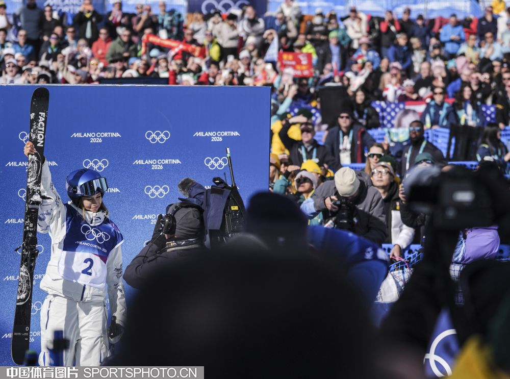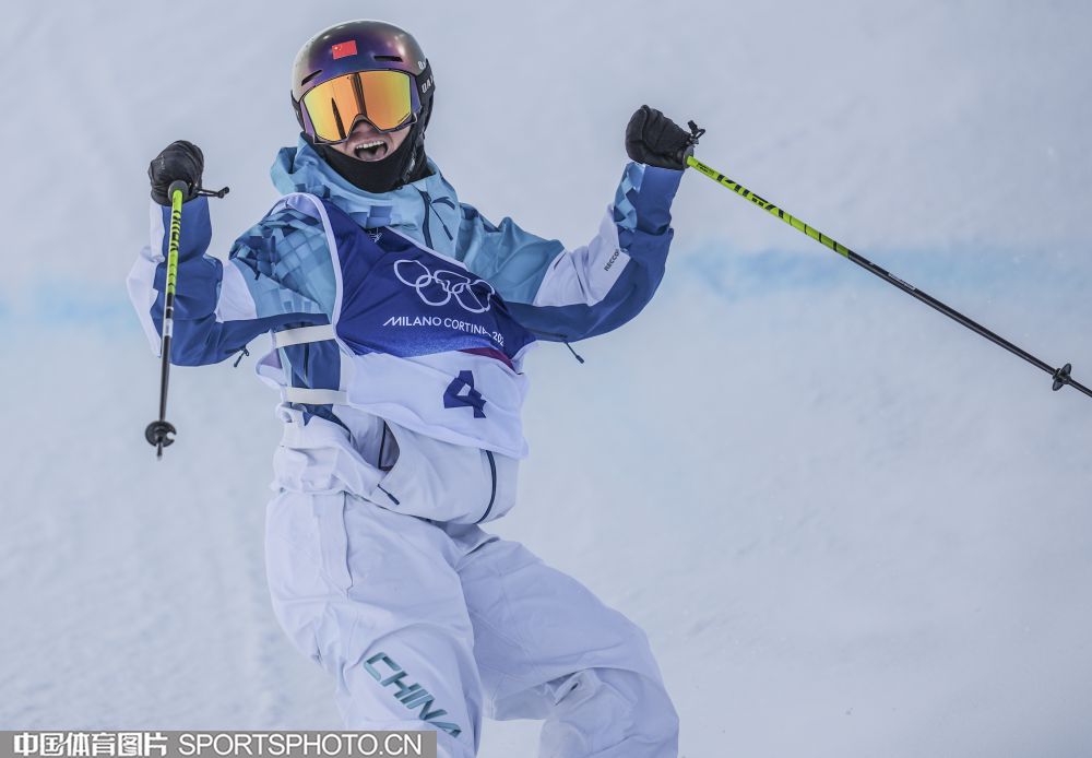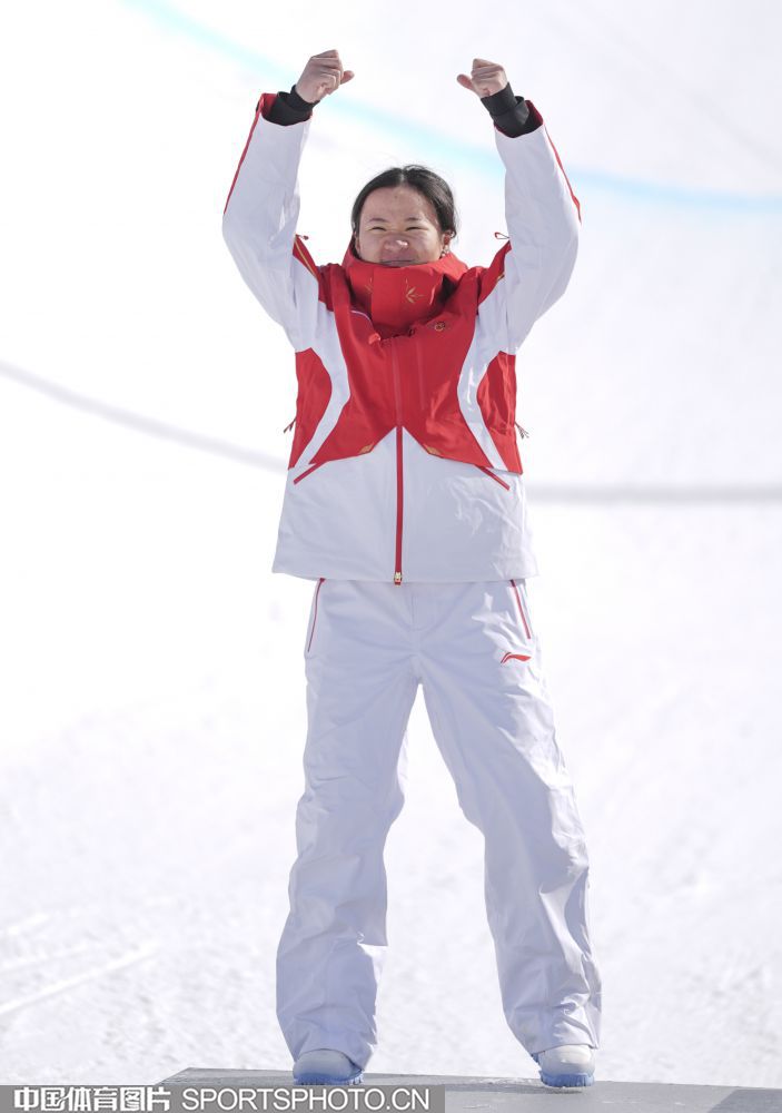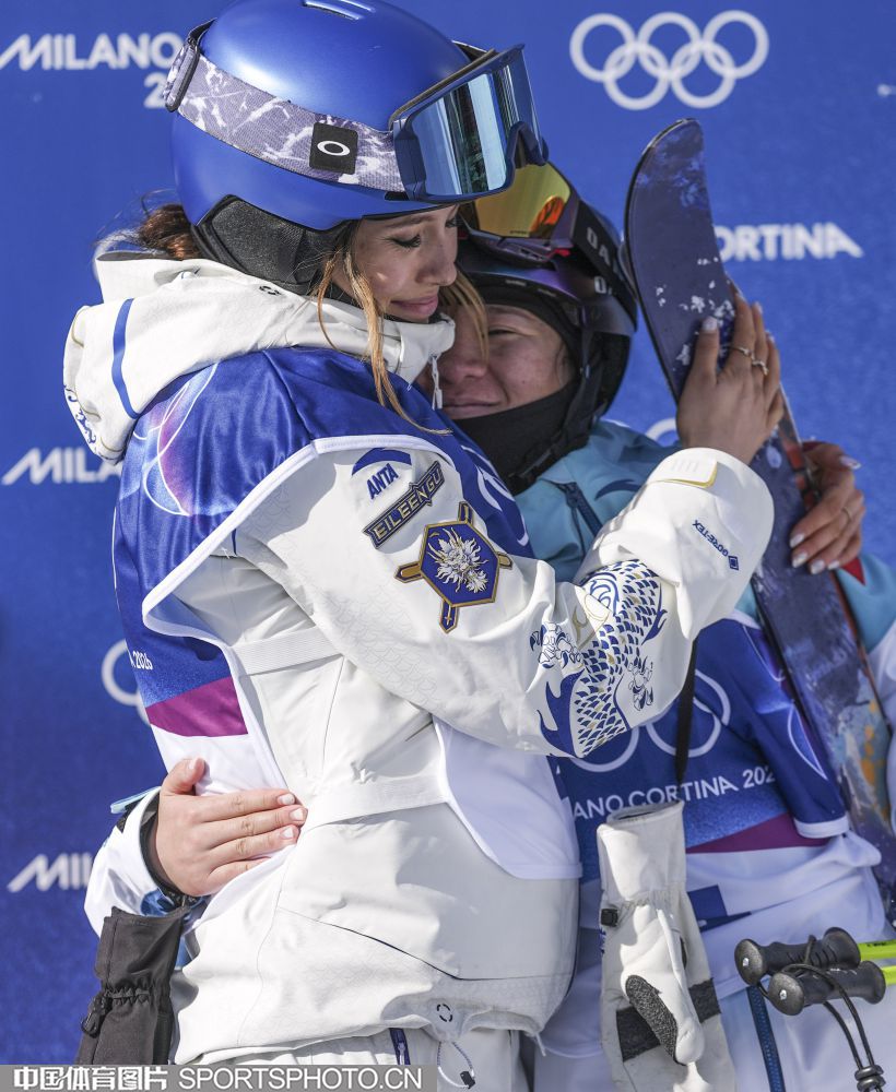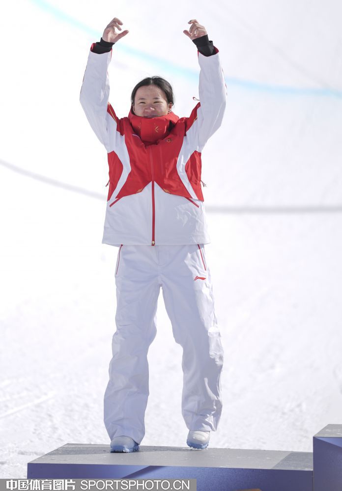 图组名称:米兰冬奥会自由式滑雪女子U型场地技巧决赛 谷爱凌李方慧包揽金银