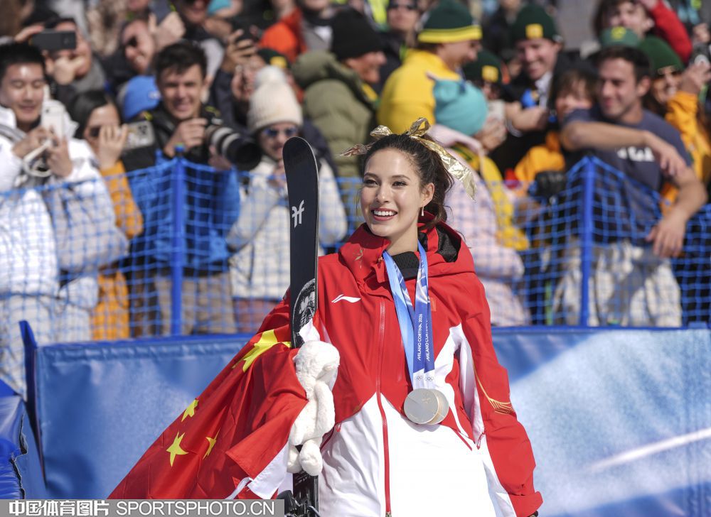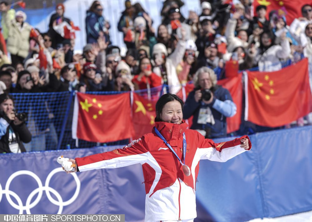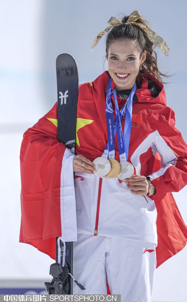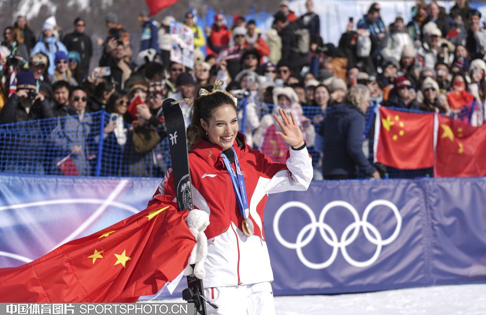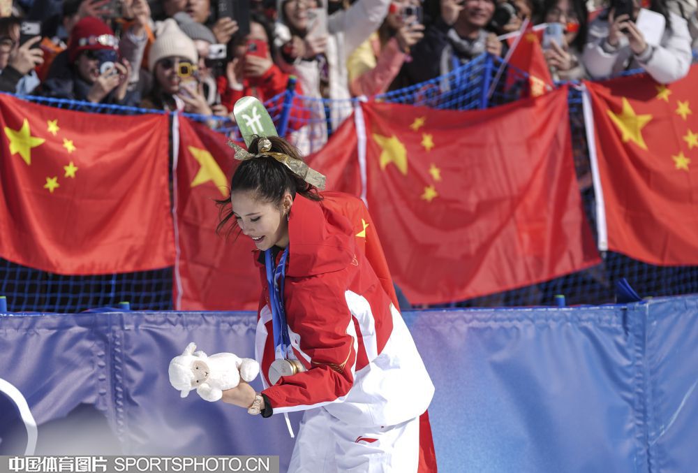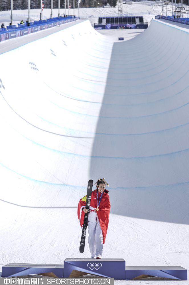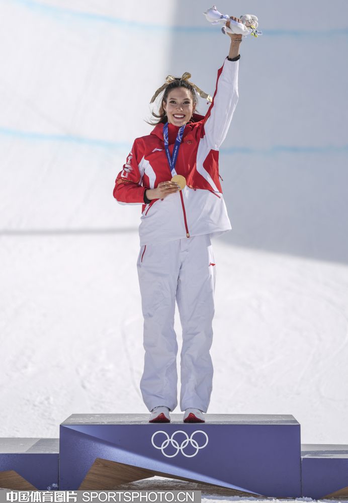 图组名称:米兰冬奥会自由式滑雪女子U型场地技巧决赛 谷爱凌李方慧包揽金银