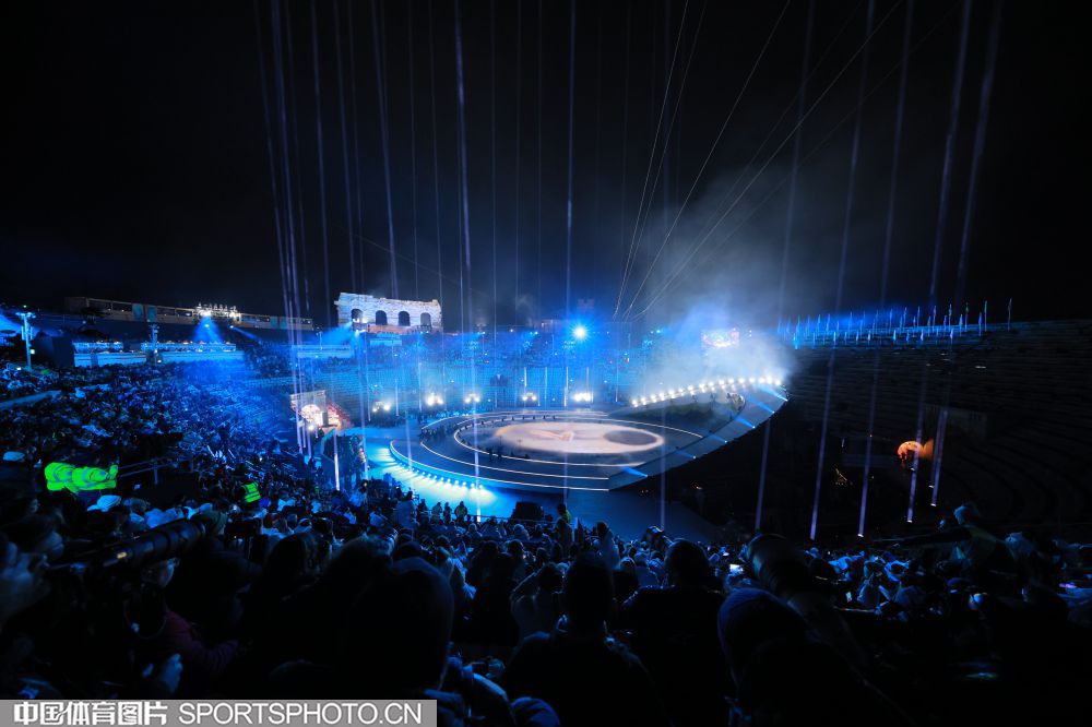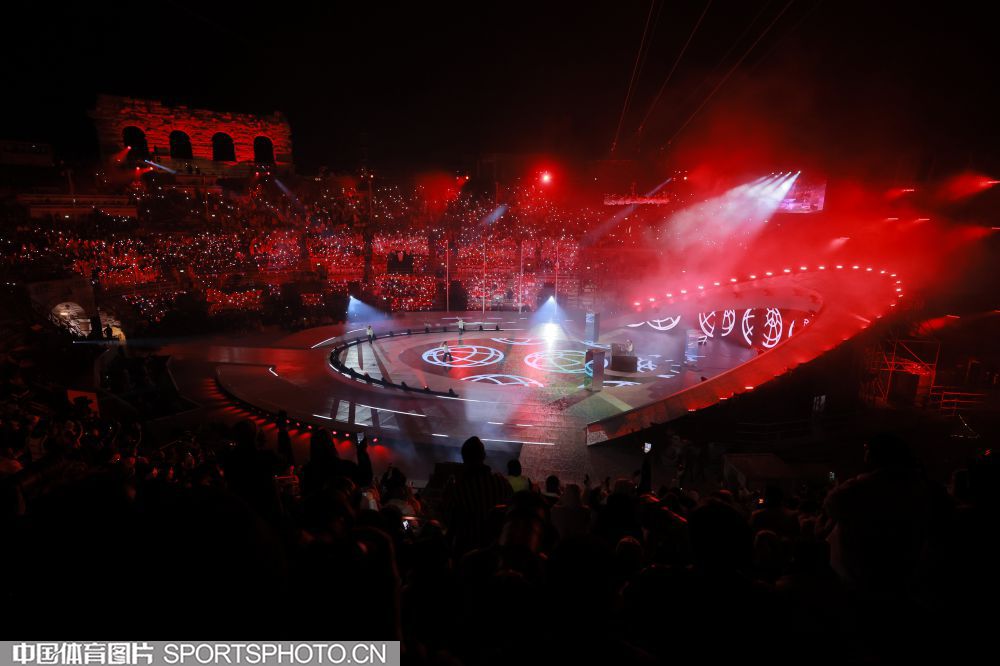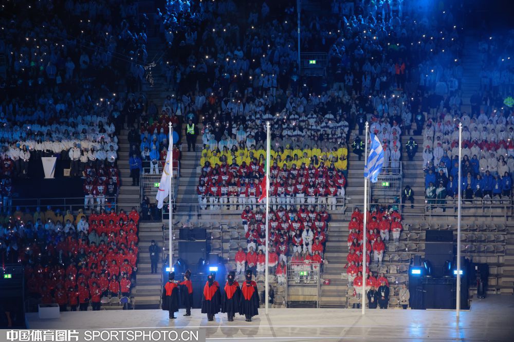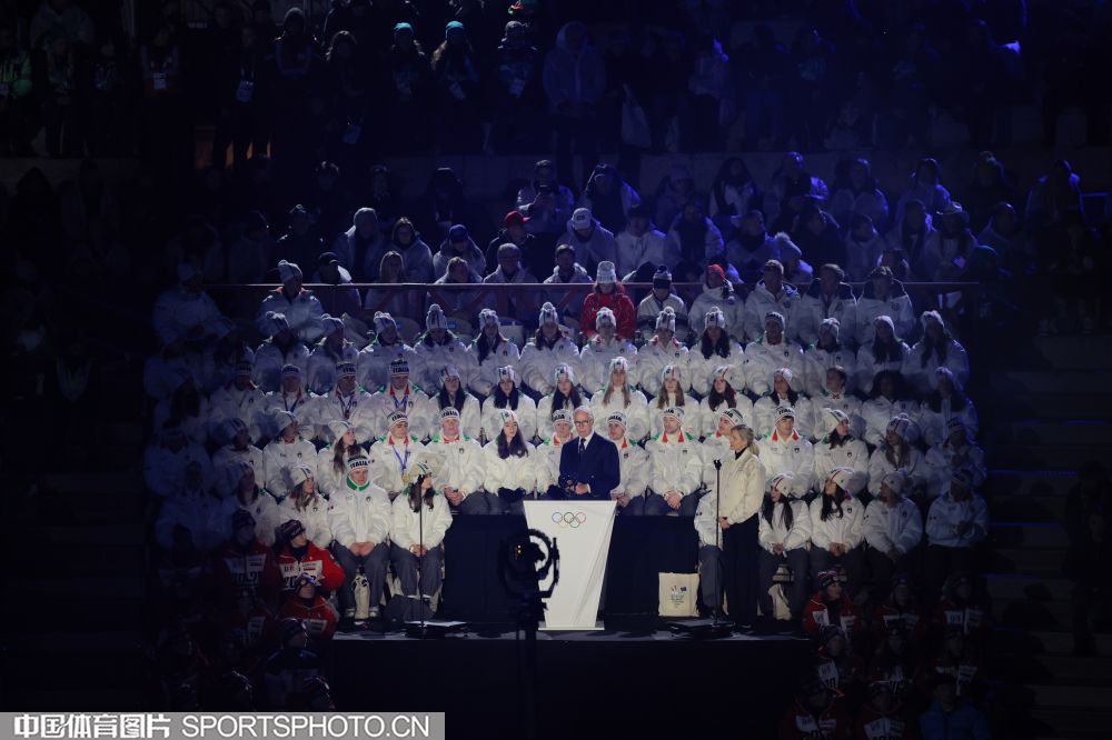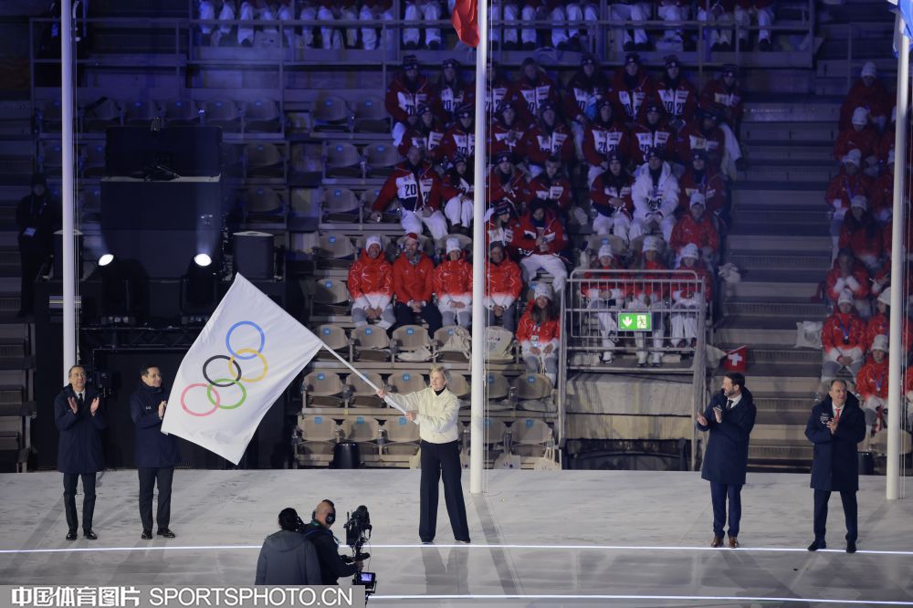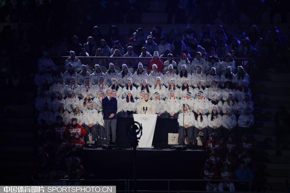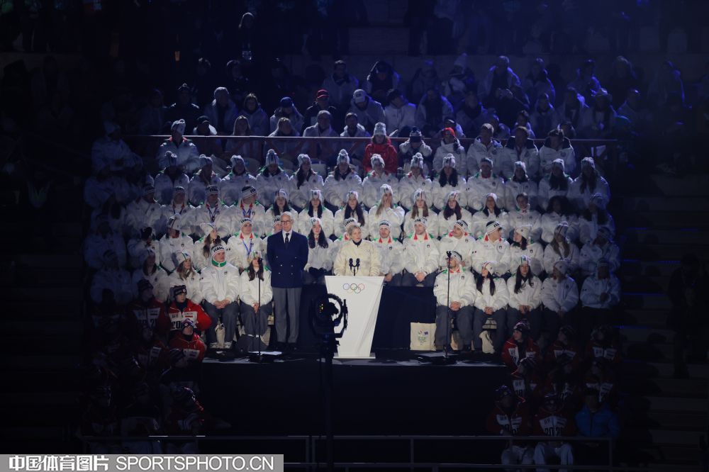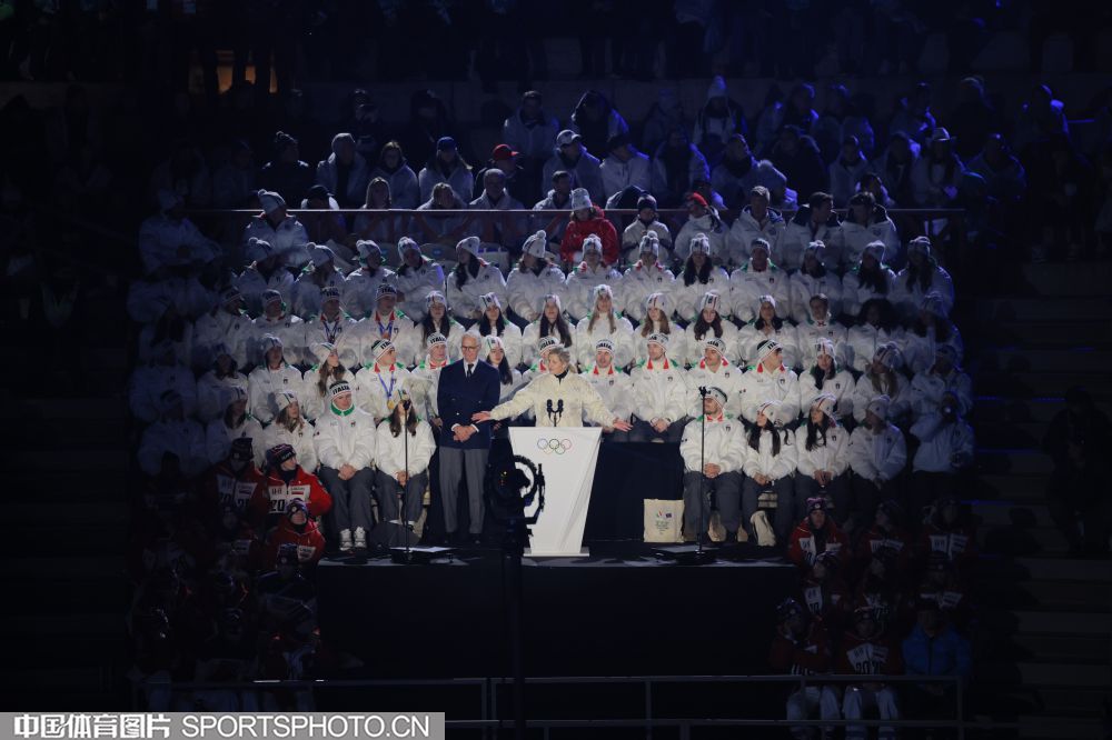 当地时间2月22日晚,2026年米兰-科尔蒂纳冬季奥运会闭幕式在意大利维罗纳圆形竞技场举行。图为米兰市长朱塞佩·萨拉(左)与科尔蒂纳丹佩佐市长詹卢卡·洛伦齐将奥林匹克会旗交还给国际奥委会主席柯丝蒂·考文垂。(中国体育图片 鹿麟 摄)