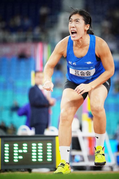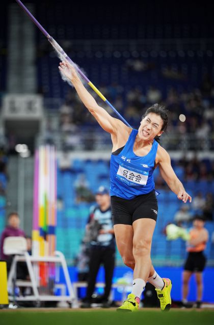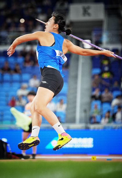 图组说明:2025年11月17日,第十五届全国运动会田径女子标枪决赛在广东省奥体中心体育场进行,湖北队苏玲丹、吕会会包揽冠亚军。