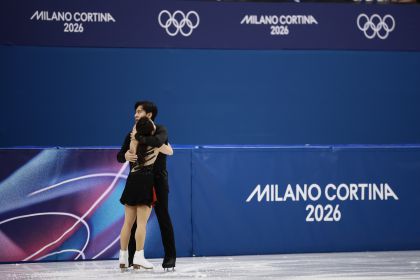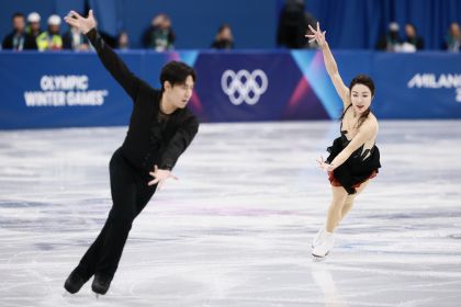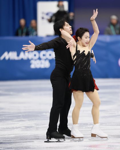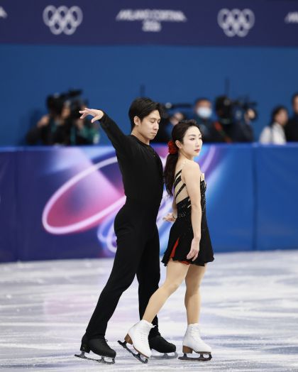 图组说明:当地时间2月15日,米兰冬奥会花样滑冰双人滑短节目比赛在米兰滑冰馆进行,隋文静、韩聪技术分39.28分,节目内容分33.38分,合计72.66分完赛,顺利晋级进双人自由滑比赛。