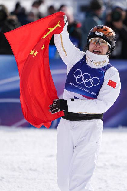 图组说明:当地时间2月17日,米兰冬奥会自由式滑雪女子空中技巧决赛在利维尼奥空中技巧与雪上技巧公园进行。中国选手徐梦桃以112.90分的成绩实现卫冕,邵琪以101.90分的成绩夺得铜牌,孔凡钰和陈梅婷获得第四名和第九名。