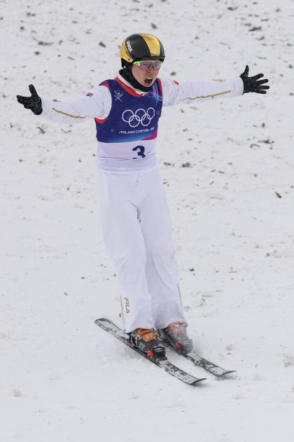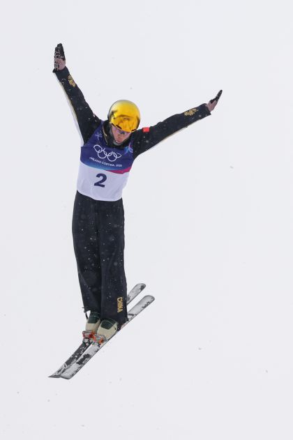 图组说明:当地时间2月20日,米兰冬奥会自由式滑雪男子空中技巧决赛在利维尼奥空中技巧与雪上技巧公园进行。中国选手王心迪以132.60分获得金牌,李天马以123.93分获得铜牌,孙佳旭和齐广璞获得第四名和第六名。