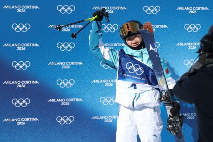 图组说明:当地时间2月22日,米兰冬奥会自由式滑雪女子U型场地技巧决赛在利维尼奥雪上公园举行。中国选手谷爱凌以94.75分获得冠军,李方慧以93.00分获得银牌,张可欣和刘奕杉分列第六和第九。