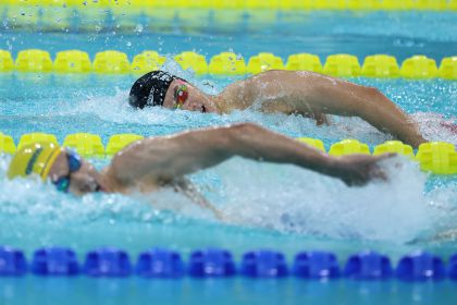 十五运会游泳男子400米自由泳预赛 潘展乐孙杨同组竞技