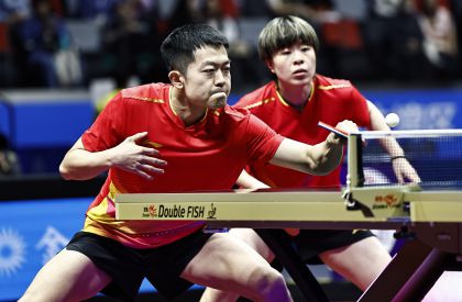 十五运会乒乓球混双1/8决赛 辽宁队袁励岑/王艺迪3比2战胜湖北队薛飞/王晓楠