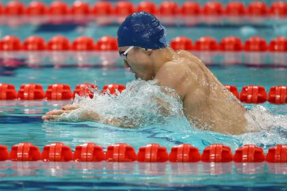 十五运会游泳男子100米蛙泳预赛 上海队覃海洋小组第一晋级