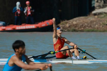 十五运会赛艇男子轻量单人双桨决赛 四川队谷建滔夺得冠军